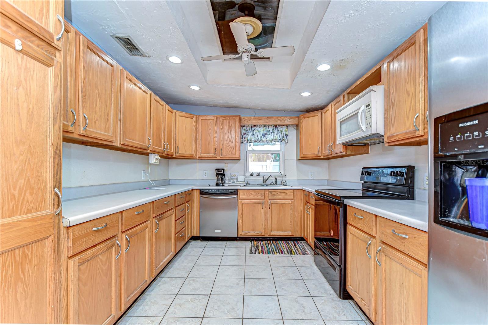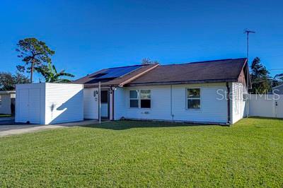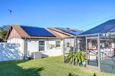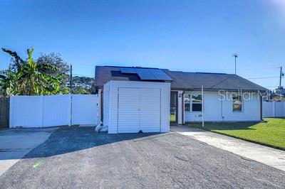 Welcome to this delightful 3-bedroom, 2-bath home tucked away on a peaceful dead-end street in Zephyrhills. This property is more than just a house it’s a lifestyle upgrade, offering a blend of charm, thoughtful improvements, and outdoor living spaces that are perfect for relaxing or entertaining. As you approach, you’ll notice the extended carport, providing parking for at least four vehicles. Step inside, and you’re greeted by an open and inviting floor plan. The heart of the home is the spacious kitchen, designed with an abundance of cabinets and counter space, making it ideal for preparing meals and hosting friends and family. Just off the dining area, a cozy bonus room awaits—a perfect spot for an office, TV room, or playroom, tailored to suit your needs. This home has been meticulously cared for, with numerous upgrades that make it a standout. All-new double-pane windows invite natural light while improving energy efficiency. The roof, installed in 2014, offers peace of mind, and the entire home was replumbed in 2023. With the addition of solar panels and being on a well and septic system, you’ll enjoy minimal utility bills, freeing up your budget for the things you love most. But the real magic happens outside. The backyard is a true haven, complete with a large screened patio that’s perfect for hosting gatherings or enjoying a quiet evening. A charming tiki bar with seating and a TV adds a touch of fun and relaxation. Two storage sheds, one equipped with electricity, allows for plenty of space for hobbies or tools, while the covered well house adds practicality. The entire backyard is enclosed with vinyl fencing, creating a secure space for pets to roam and play freely. This home is not only a sanctuary but also a convenient hub, centrally located to your favorite dining and shopping destinations. Whether you’re enjoying the privacy of a quiet street or the vibrant backyard, this home promises a lifestyle that’s both comfortable and exciting. Don’t miss the chance to make this thoughtfully upgraded property your own. It’s ready and waiting to welcome you home.