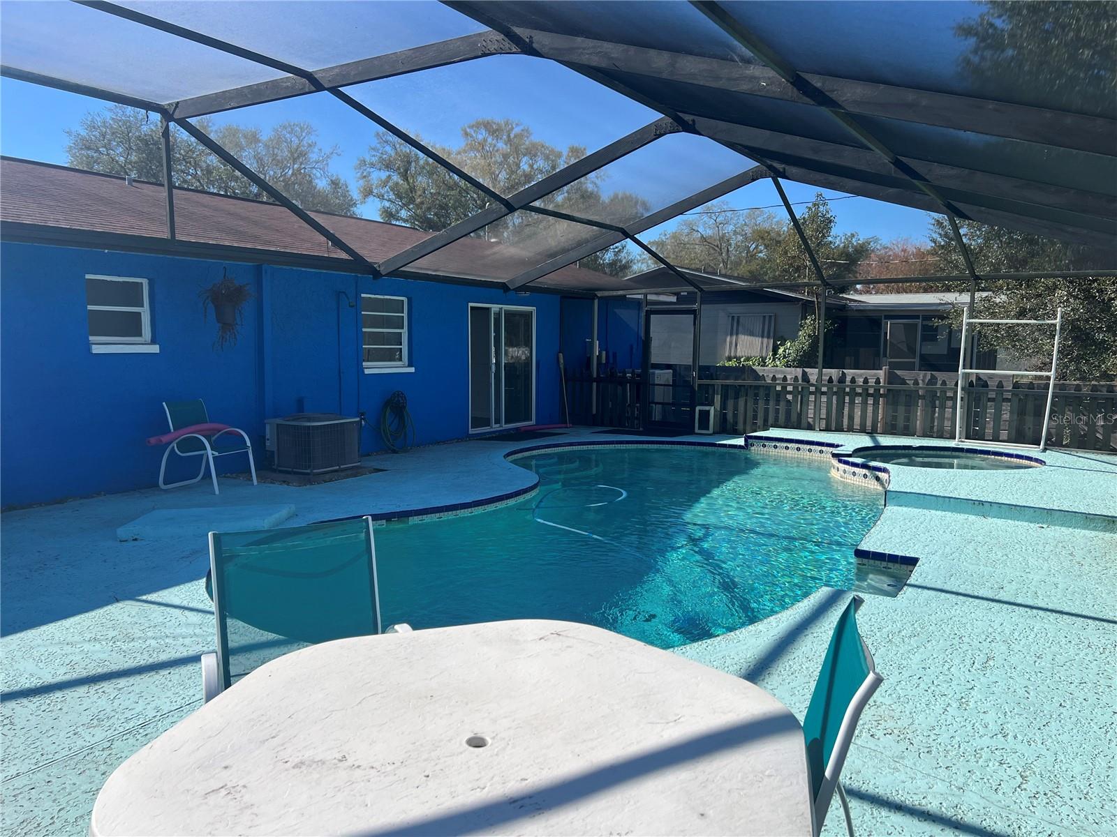 Highly desirable 3 bedrooms, 2 bathrooms, 1 car garage, fully fenced around back yard with its own horseshoe ring on a 0.18-acre corner lot with extended parking spaces home, built in 1983. In-ground Saltwater Swimming pool with Jacuzzi hot tub with caged-in lanai. New Floors, New Bathrooms, New waterfall quartz counter tops, an entirely new kitchen with LED backlighting, and new stainless-steel appliances. There is remodeling in every corner of this house with newer air conditioning (8/2017), newer roof (5/2007), and entirely new plumbing throughout the entire home (10/2021). Advanced Japanese bidet, built-in water softener, with built-in internet cables and USB outlets. Washer and dryer included. Walking distance to parks, Ice cream shops, a beautiful historic downtown area, a golf course, and the Zephyrhills airport.
