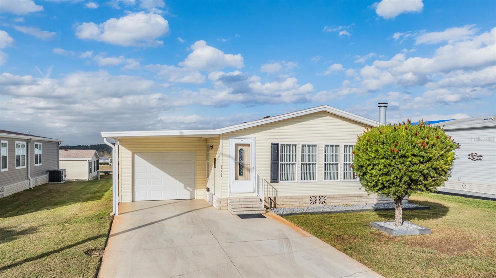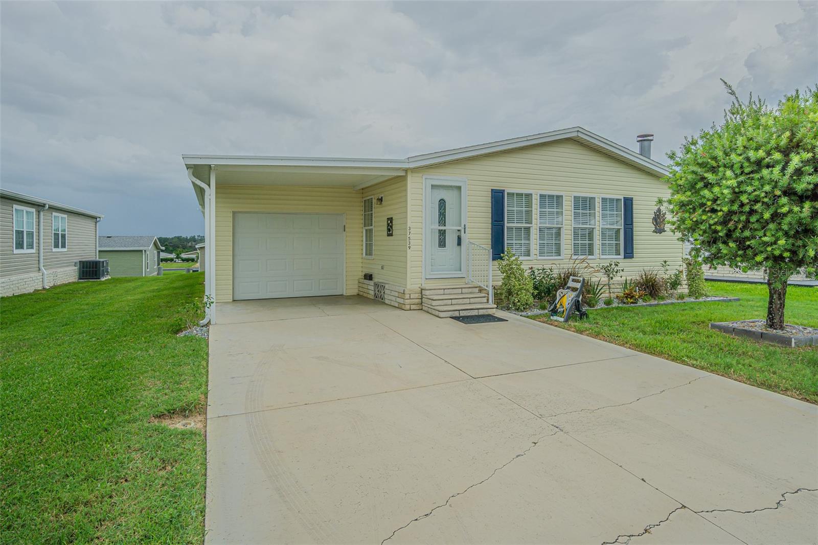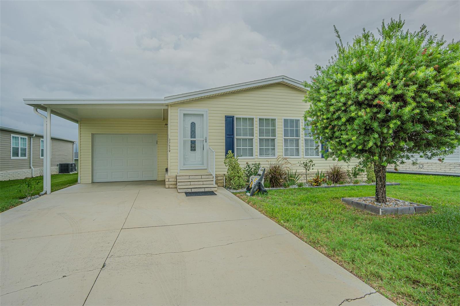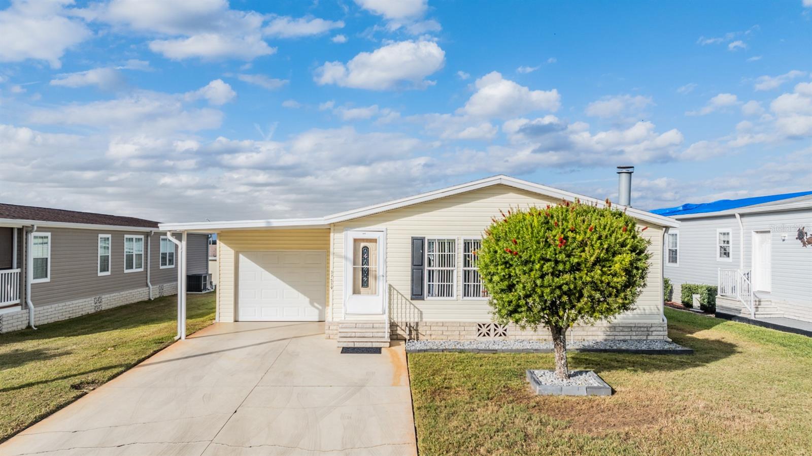 Immaculate, FURNISHED, Turn-Key Home in GATED 55+ Community, where you OWN YOUR LAND... is READY for YOU! Nestled in the highly sought-after Phase III of Grand Horizons, this beautiful 2000-built Jacobsen home is high and dry, having never lost power during hurricanes. With barely any use, this home has been used only a few months per year as a second residence, making it a rare find in pristine condition. This 3-bedroom, 2-bath home offers 1,512 sq. ft. of comfortable living space with wood laminate floors throughout ($8,000), features a new roof (2021) and a brand-new AC unit (2024) for peace of mind. The interior features and OPEN floor plan with rounded corners, tape-and-texture walls plus a custom front door with elegant leaded glass. The living room’s wood-burning fireplace, complete with an oak mantle and tiled hearth, adds warmth and charm to the living area. The kitchen and bathrooms feature raised Corian solid surface counters and solid wood cabinets with crown molding, a $6,000 upgrade, offering durability and timeless elegance. The 2-car tandem garage (12’ x 40’) is a $15,000 addition, providing ample storage and parking space with a rear exit door. Enjoy outdoor living on the 6’ x 12’ covered back patio with railings and room to expand... overlooking the spacious backyard. Inside, the convenience continues with an interior laundry room equipped with a utility sink, washer, dryer and storage cabinets above. Thermal pane windows throughout enhance energy efficiency, keeping utility costs low. This home is located close to the vibrant Grand Horizons resident owned amenities including a clubhouse with commercial grade kitchen, billiards room, craft room, game room, heated pool and hot tub. Planned outings, onsite entertainment, potluck dinners and travel excursions are available with a monthly event calendar! Don’t miss this rare opportunity for turnkey, worry-free living in a prime location within 1 mile of shopping, medical facilities, theater, bowling, restaurants, YMCA and major highways for easy access to Tampa, Wesley Chapel, Lakeland, Plant City, Orlando, Airports or the Beaches! Schedule your showing... CALL TODAY!