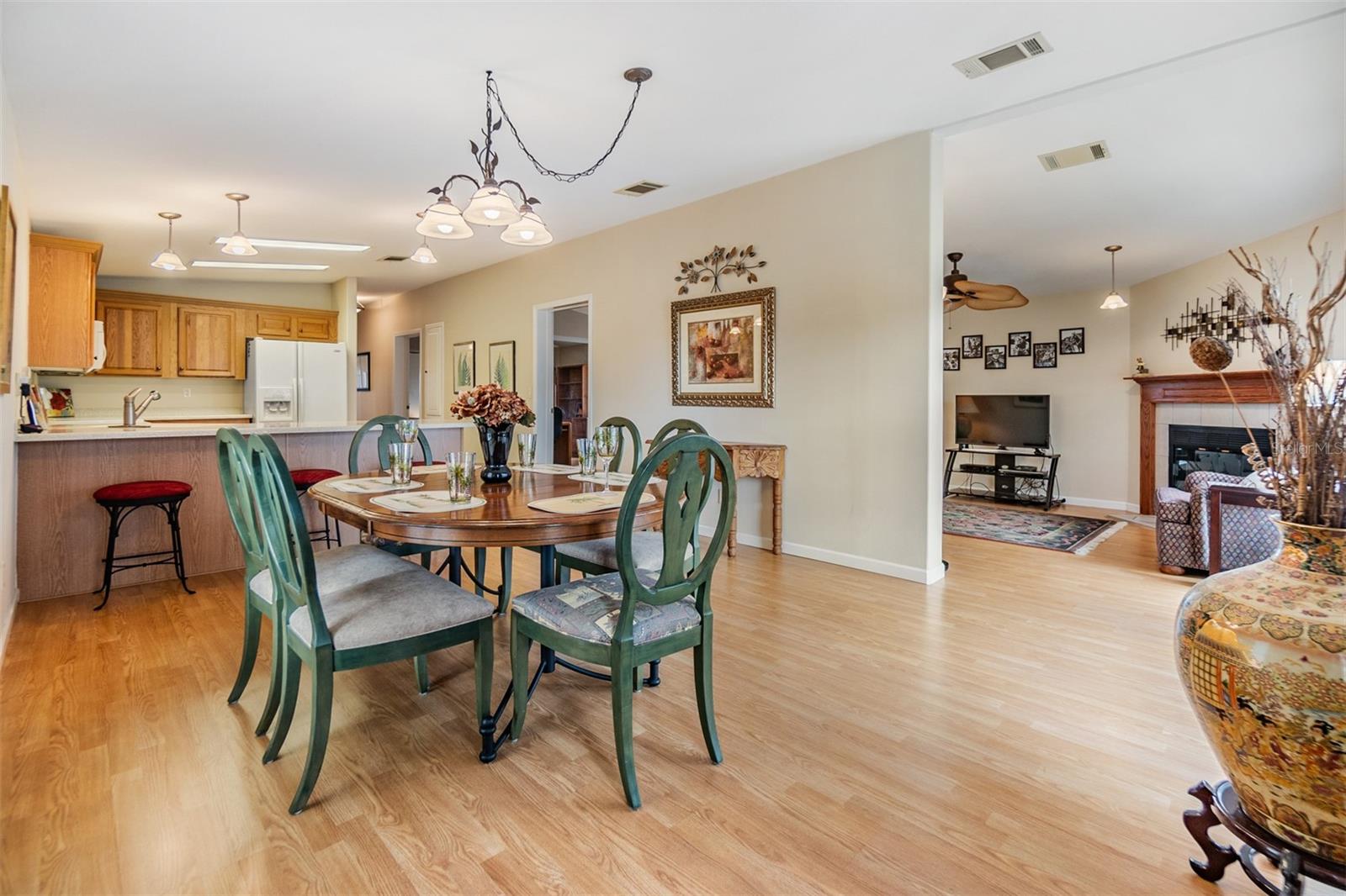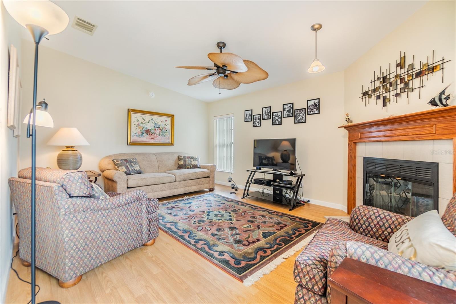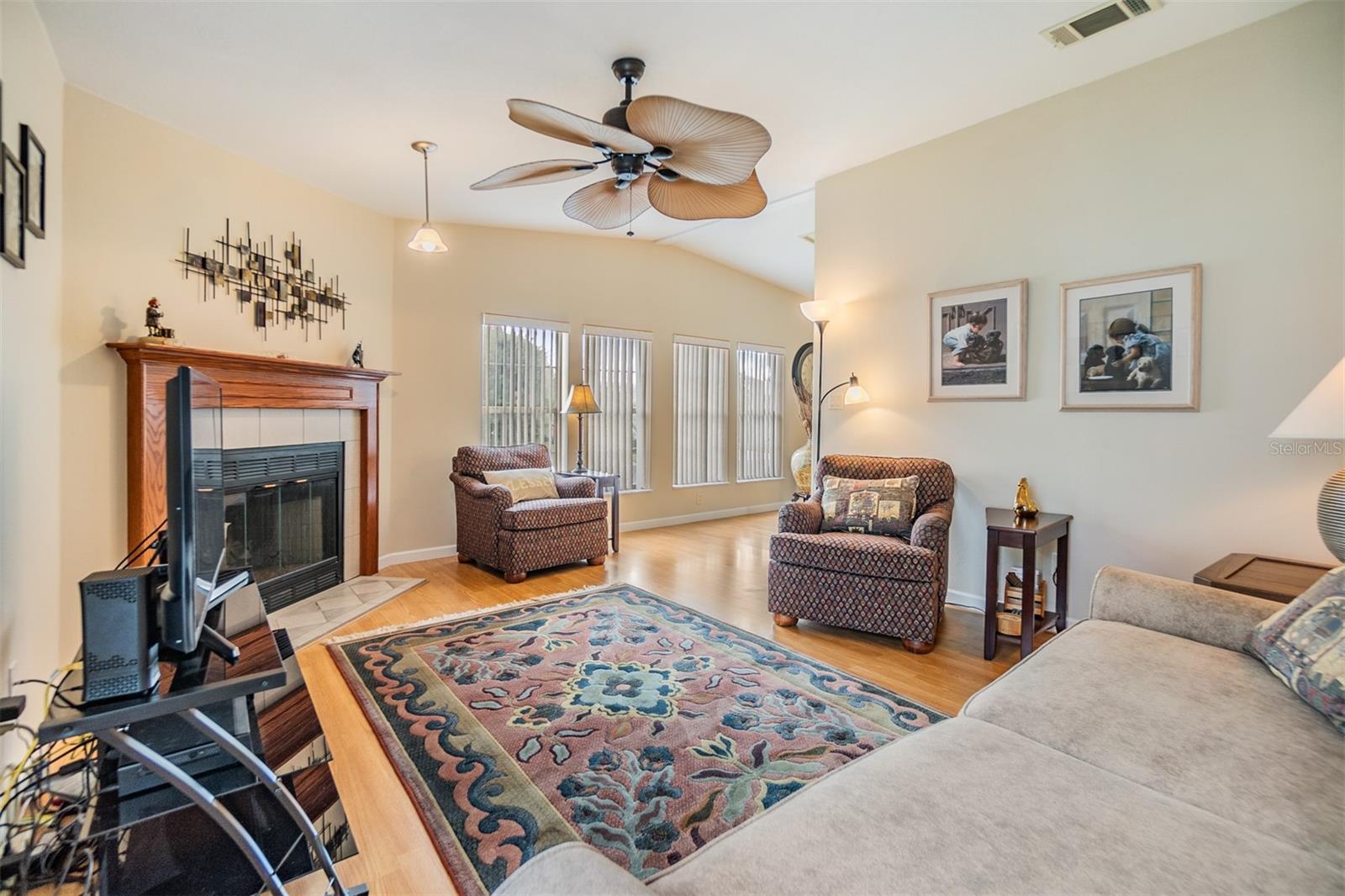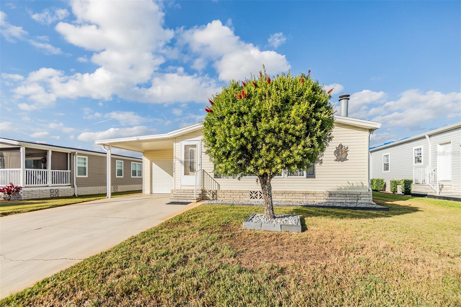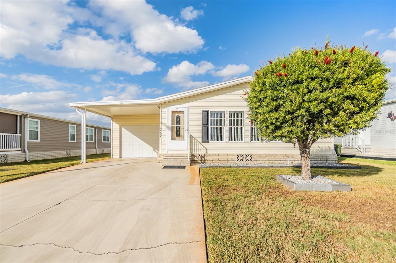Immaculate, FURNISHED, Turn-Key Home in GATED 55+ Community, where you OWN YOUR LAND... is READY for YOU! Nestled in the highly sought-after Phase III of Grand Horizons, this beautiful 2000-built Jacobsen home is high and dry, having never lost power during hurricanes. With barely any use, this home has been used only a few months per year as a second residence, making it a rare find in pristine condition. This 3-bedroom, 2-bath home offers 1,512 sq. ft. of comfortable living space with wood laminate floors throughout ($8,000), features a new roof (2021) and a brand-new AC unit (2024) for peace of mind. The interior features and OPEN floor plan with rounded corners, tape-and-texture walls plus a custom front door with elegant leaded glass. The living room’s wood-burning fireplace, complete with an oak mantle and tiled hearth, adds warmth and charm to the living area. The kitchen and bathrooms feature raised Corian solid surface counters and solid wood cabinets with crown molding, a $6,000 upgrade, offering durability and timeless elegance. The 2-car tandem garage (12’ x 40’) is a $15,000 addition, providing ample storage and parking space with a rear exit door. Enjoy outdoor living on the 6’ x 12’ covered back patio with railings and room to expand... overlooking the spacious backyard. Inside, the convenience continues with an interior laundry room equipped with a utility sink, washer, dryer and storage cabinets above. Thermal pane windows throughout enhance energy efficiency, keeping utility costs low. This home is located close to the vibrant Grand Horizons resident owned amenities including a clubhouse with commercial grade kitchen, billiards room, craft room, game room, heated pool and hot tub. Planned outings, onsite entertainment, potluck dinners and travel excursions are available with a monthly event calendar! Don’t miss this rare opportunity for turnkey, worry-free living in a prime location within 1 mile of shopping, medical facilities, theater, bowling, restaurants, YMCA and major highways for easy access to Tampa, Wesley Chapel, Lakeland, Plant City, Orlando, Airports or the Beaches! Schedule your showing... CALL TODAY!