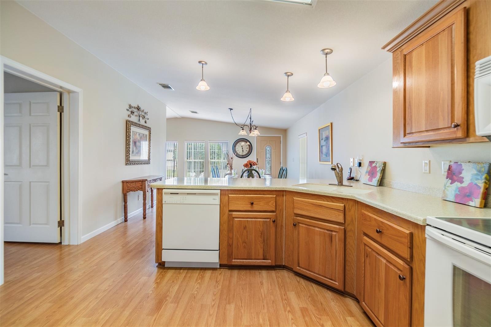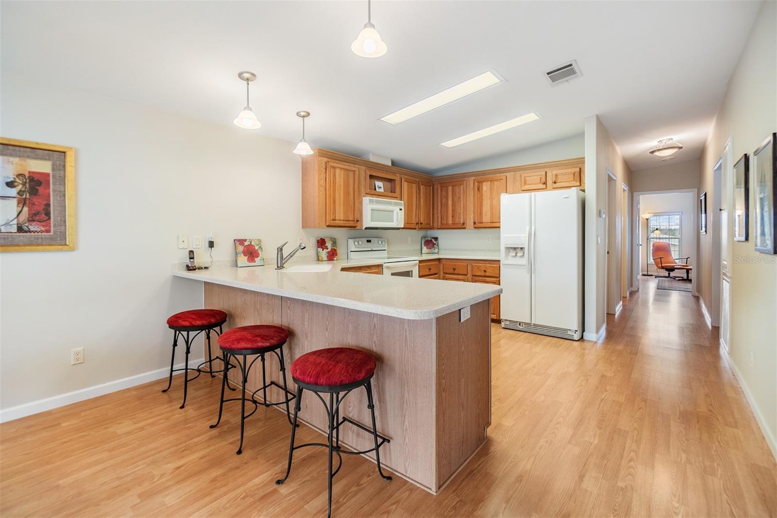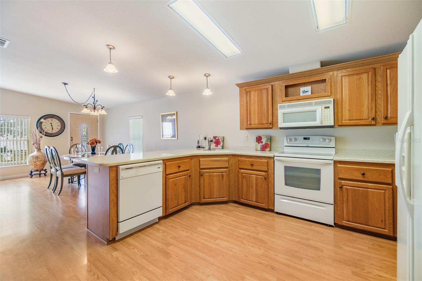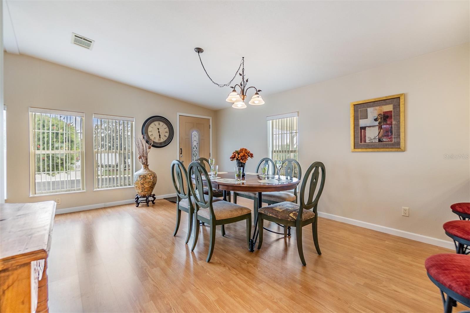 Immaculate, FURNISHED, Turn-Key Home in GATED 55+ Community, where you OWN YOUR LAND... is READY for YOU! Nestled in the highly sought-after Phase III of Grand Horizons, this beautiful 2000-built Jacobsen home is high and dry, having never lost power during hurricanes. With barely any use, this home has been used only a few months per year as a second residence, making it a rare find in pristine condition. This 3-bedroom, 2-bath home offers 1,512 sq. ft. of comfortable living space with wood laminate floors throughout ($8,000), features a new roof (2021) and a brand-new AC unit (2024) for peace of mind. The interior features and OPEN floor plan with rounded corners, tape-and-texture walls plus a custom front door with elegant leaded glass. The living room’s wood-burning fireplace, complete with an oak mantle and tiled hearth, adds warmth and charm to the living area. The kitchen and bathrooms feature raised Corian solid surface counters and solid wood cabinets with crown molding, a $6,000 upgrade, offering durability and timeless elegance. The 2-car tandem garage (12’ x 40’) is a $15,000 addition, providing ample storage and parking space with a rear exit door. Enjoy outdoor living on the 6’ x 12’ covered back patio with railings and room to expand... overlooking the spacious backyard. Inside, the convenience continues with an interior laundry room equipped with a utility sink, washer, dryer and storage cabinets above. Thermal pane windows throughout enhance energy efficiency, keeping utility costs low. This home is located close to the vibrant Grand Horizons resident owned amenities including a clubhouse with commercial grade kitchen, billiards room, craft room, game room, heated pool and hot tub. Planned outings, onsite entertainment, potluck dinners and travel excursions are available with a monthly event calendar! Don’t miss this rare opportunity for turnkey, worry-free living in a prime location within 1 mile of shopping, medical facilities, theater, bowling, restaurants, YMCA and major highways for easy access to Tampa, Wesley Chapel, Lakeland, Plant City, Orlando, Airports or the Beaches! Schedule your showing... CALL TODAY!