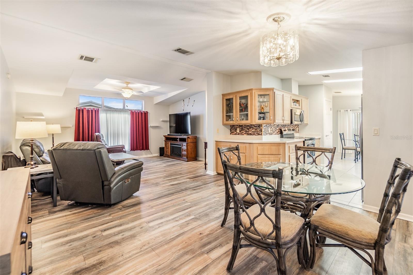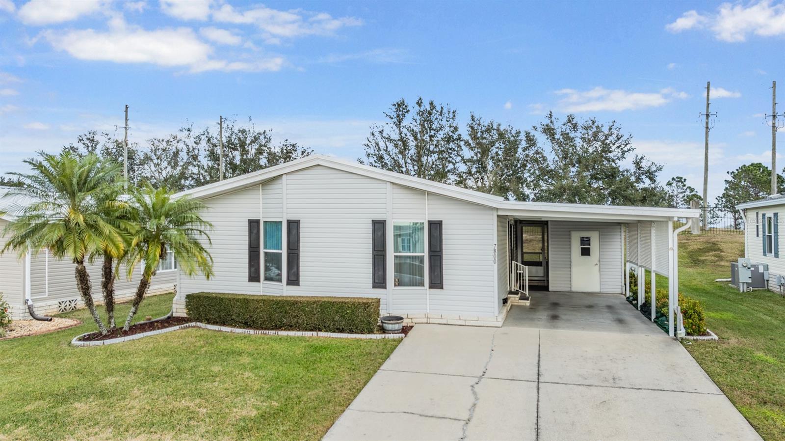 Stunning Home in GATED Grand Horizons, where you OWN YOUR LAND... is Updated, Furnished and READY for new owners! This 2 bedroom, 2 bath, meticulously maintained home features over $40,000 in enhancements, offering style, comfort, and peace of mind as you Move Right In! Freshly painted driveway is sparkling clean! OPEN concept in the Living and Dining spaces make it easy to entertain. Enjoy the light, bright, natural lighting from your double window with transoms above in this area, with stylish tray ceiling, upgraded lighting and ceiling fans in the great room adding to the casual elegance. Galley kitchen has gleaming counters with contrasting backsplash, newer appliances and sliding door to the screened lanai. The exterior is equally impressive, with refreshed landscaping added in 2019. Other Notable upgrades include newer Kenmore appliances (2018), GE washer and dryer (2017), and a state-of-the-art AC system with new ductwork (2018). The interior showcases like a model featuring durable laminate flooring (2017), luxurious Corian countertops in the kitchen and bathrooms (2022), and a freshly painted interior (2018). Additional features include a newer shower in the primary ensuite (2019 which was $10,000), a newer water heater in 2019 and a sturdy Metal Roof in 2018. The water shut-off valves were also replaced for added convenience, and tinted windows (2019) enhance energy efficiency. Custom blinds, landscaped lawn with lattice work added in the carport for privacy, and a screened slider door enables indoor-outdoor living. This home is a rare find, combining thoughtful upgrades with the vibrant lifestyle of this active 55+ community which offers No CDD fees and low HOA which includes use of the Resident owned amenities, Gated entrance, Private road maintenance and Common area lawncare. Clubhouse offers numerous onsite events with bingo, potluck dinners, outside entertainment, craft/sewing/quilting room, library with games, movies and puzzles, billiards, bocce, cornhole, horseshoes,, shuffleboard, heated pool, hot tub and planned travel excursions and social activities. Located in Zephyrhills north of Tampa within one mile of medical facilities, bowling, movie theater, restaurants, shopping, parks and major highways for easy commute to Wesley Chapel, Lakeland, Ocala, Tampa, St Pete, Orlando, the Airports and Beaches! CALL TODAY to see why this IS the place to BE!