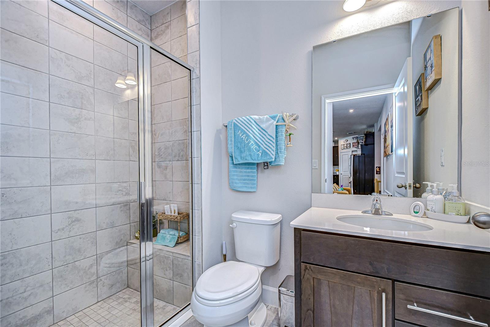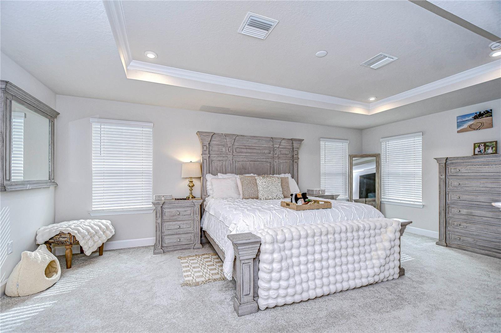 You do not have to wait to have a new home built. This 5 bedroom, 4 bath was completed in 2024 and was lived in for a few months and the pool was just completed. Beautiful corner lot with this two story home and the screen enclosed pool. Enter into the home through a screen enclosed front porch to enjoy in the evening. As you enter there is a flex room that can be a formal living area, dining or office area. Continue into the open area that has the kitchen, dining and family or living room. The kitchen has a walk in pantry, double ovens and a cooktop. There is a large island with a sink and area to sit on stools. The dining room has an area large for an extended dining table. The family room or living room has a free standing electric fireplace to enjoy and a slider leading out to the oversize lanai and screen enclosed pool that was just completed. Down the hall is the downstairs bedroom and full bath. The stairs to the second floor lead into a loft area to enjoy television and time together. The laundry room is off this area and the next door is into the oversized primary bedroom with a trey ceiling. There are two walk in closets and the ensuite has double sinks, walk in shower and a soaker tub. The other hall from the loft area leads to two bedrooms on the left and a hall bath on the right. There is also another bedroom on the right with a walk in closet and ensuite. The screened in pool has on large area for entertaining and an alarm system in the pool and spa that has alarms that can be heard in the house. Neighborhood has playground and is located near shopping, restaurants, and doctors. This one has it all. Call now for an appointment.