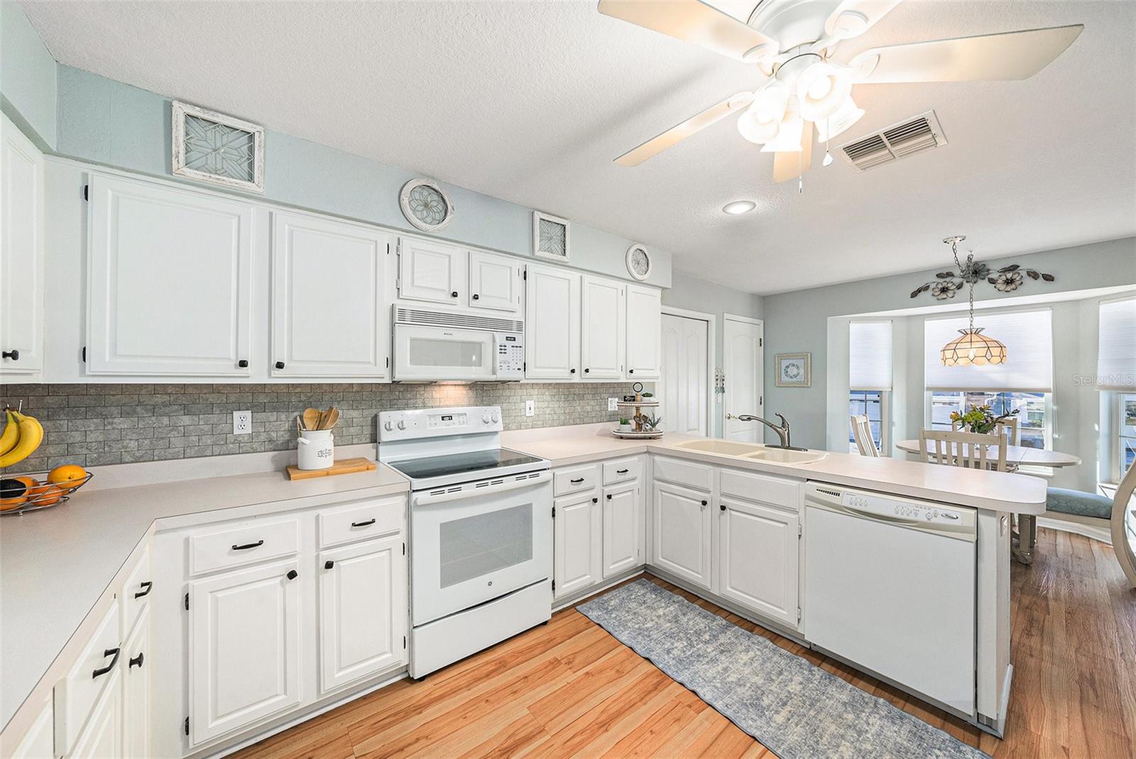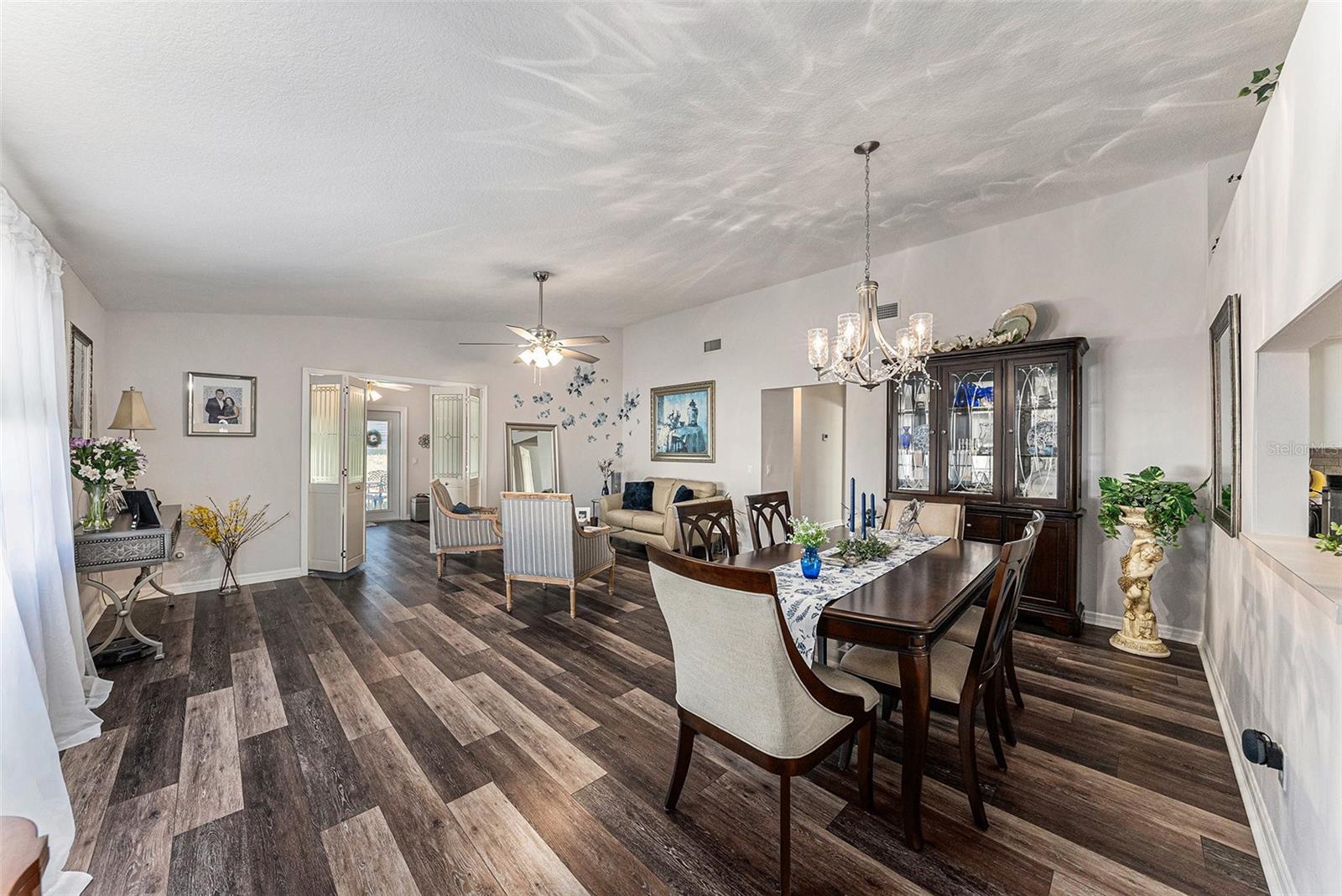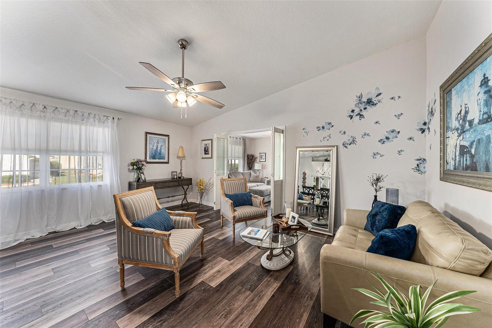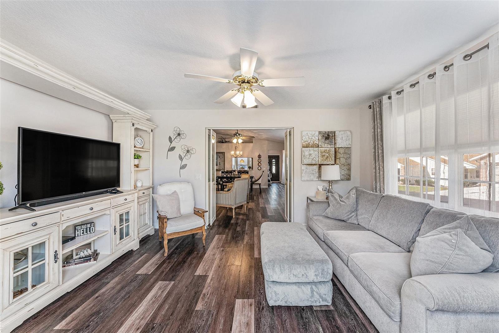 BEAUTIFUL WEDGEWOOD MANOR HOME located on one of the largest corner lots in the community. A Foyer Entry welcomes you to this home with a spacious kitchen just off the entry. This 2 bedroom, 2 bath home has over 1,660 sq ft of living space and features a spacious Living/Dining Room Combination PLUS a Bonus Room with French Doors at the rear of the home making it perfect for guests-or-use for crafts, office or den. Kitchen with lots of counter space and solid wood cabinets for storage, built-in desk area with a pass-thru to the dining room, closet pantry, and a separate dinette with bay window allowing a lot of light in to make this space light and bright!!! The home has been updated with new flooring (carpeting in the bedrooms) and fresh paint throughout. Kitchen and Dinette floor was updated in 2020 and is a Silent Blue Stone/Plastic Composite. Large Primary Bedroom with a walk in closet and private bath. The second bedroom is adjacent to the 2nd Bathroom which features a Jetted Tub. There is a linen closet in the hall plus an oversize closet for extra storage. The Living/Dining area has Vaulted ceiling with a plant shelf to show off your collectibles. Lots of Natural Light with all the Windows throughout the home. There are French doors (2019) that leads to the rear patio! The garage has a privacy screen door... that allows the breeze in while you're tinkering in the Garage or doing Laundry and the garage door is insulated! Gable Roof was replaced in 2010, Water Heater replaced in 2019, HVAC replaced in 2019, New Stove and Disposal in 2019. Sidewalks/steps were added outside for easy in and out from the front door. Wedgewood has a low HOA fee which includes ground maintenance, basic cable TV, pool, shuffleboard & and a gorgeous clubhouse with lots of activities