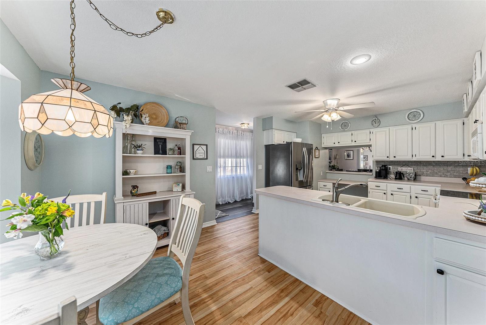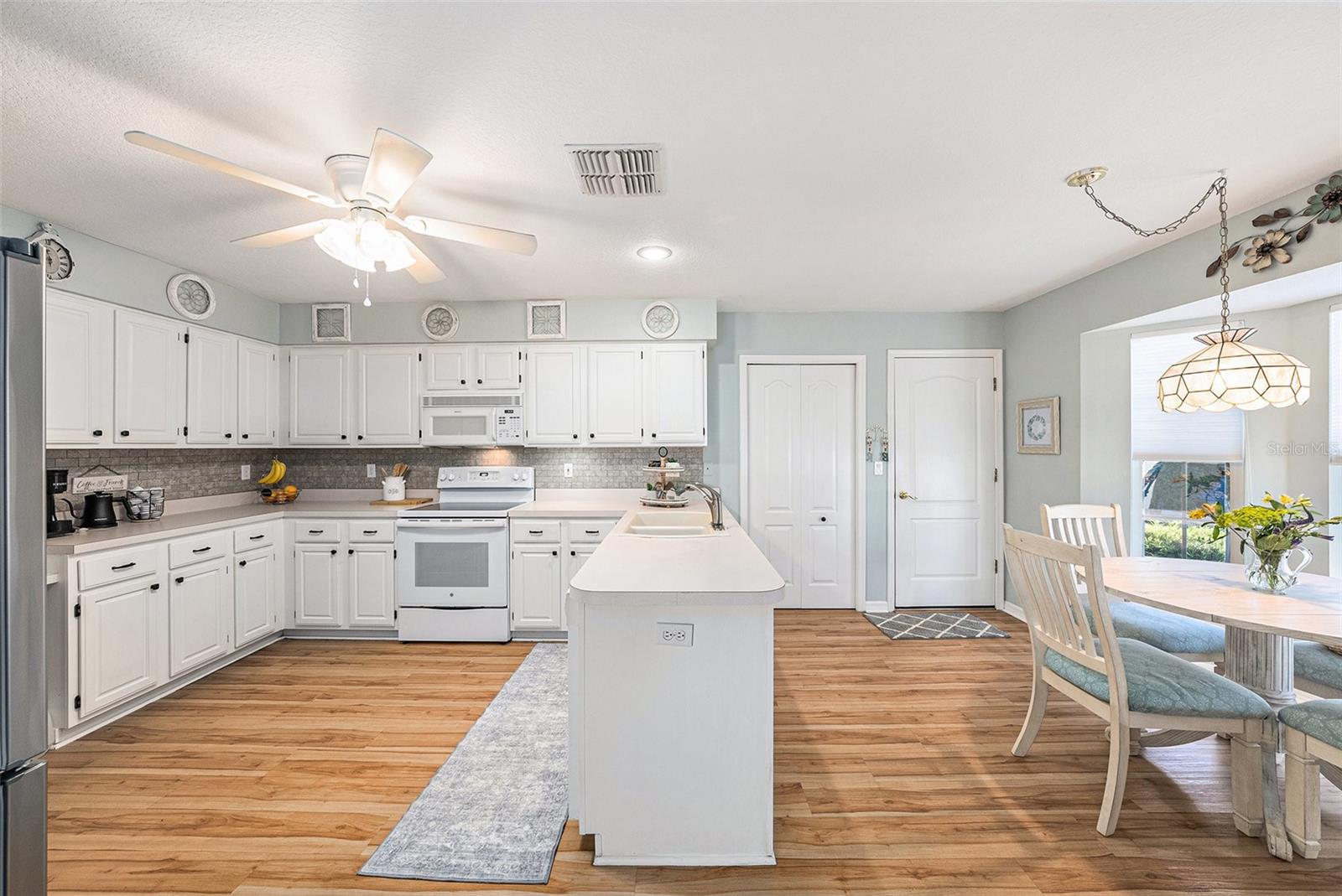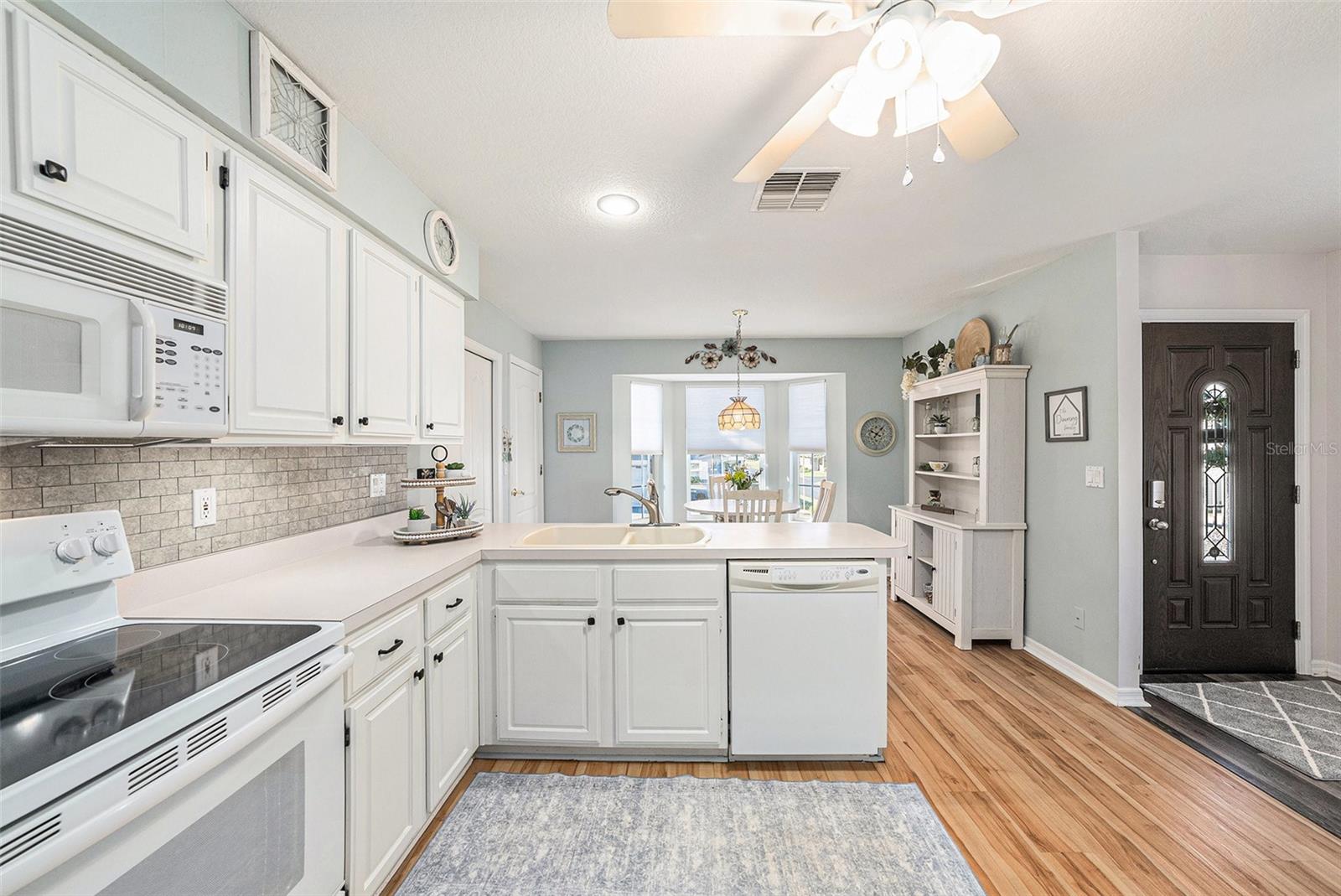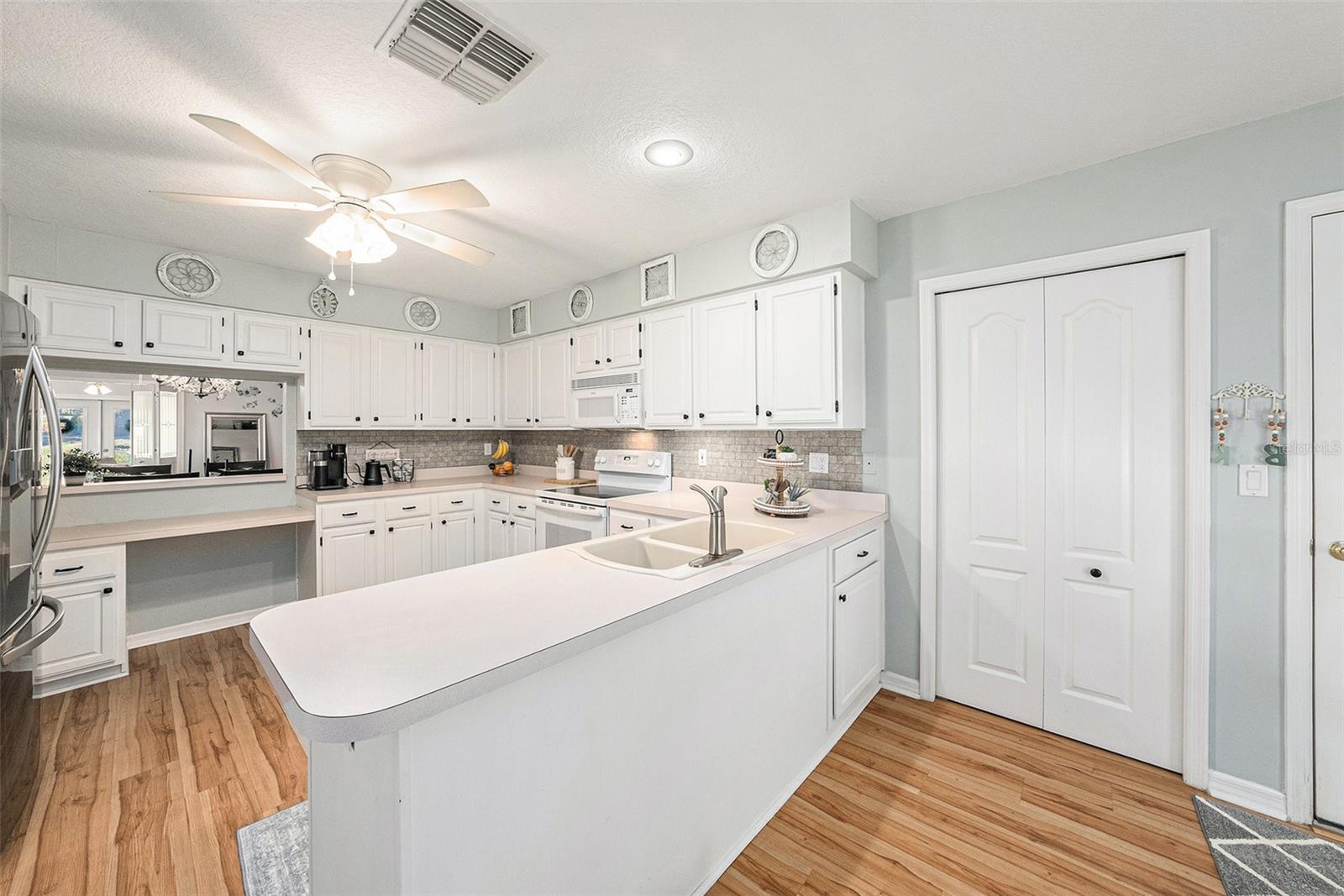 BEAUTIFUL WEDGEWOOD MANOR HOME located on one of the largest corner lots in the community. A Foyer Entry welcomes you to this home with a spacious kitchen just off the entry. This 2 bedroom, 2 bath home has over 1,660 sq ft of living space and features a spacious Living/Dining Room Combination PLUS a Bonus Room with French Doors at the rear of the home making it perfect for guests-or-use for crafts, office or den. Kitchen with lots of counter space and solid wood cabinets for storage, built-in desk area with a pass-thru to the dining room, closet pantry, and a separate dinette with bay window allowing a lot of light in to make this space light and bright!!! The home has been updated with new flooring (carpeting in the bedrooms) and fresh paint throughout. Kitchen and Dinette floor was updated in 2020 and is a Silent Blue Stone/Plastic Composite. Large Primary Bedroom with a walk in closet and private bath. The second bedroom is adjacent to the 2nd Bathroom which features a Jetted Tub. There is a linen closet in the hall plus an oversize closet for extra storage. The Living/Dining area has Vaulted ceiling with a plant shelf to show off your collectibles. Lots of Natural Light with all the Windows throughout the home. There are French doors (2019) that leads to the rear patio! The garage has a privacy screen door... that allows the breeze in while you're tinkering in the Garage or doing Laundry and the garage door is insulated! Gable Roof was replaced in 2010, Water Heater replaced in 2019, HVAC replaced in 2019, New Stove and Disposal in 2019. Sidewalks/steps were added outside for easy in and out from the front door. Wedgewood has a low HOA fee which includes ground maintenance, basic cable TV, pool, shuffleboard & and a gorgeous clubhouse with lots of activities