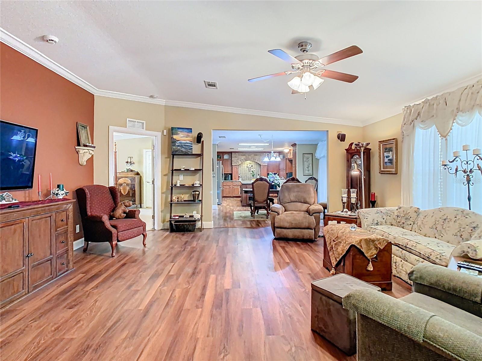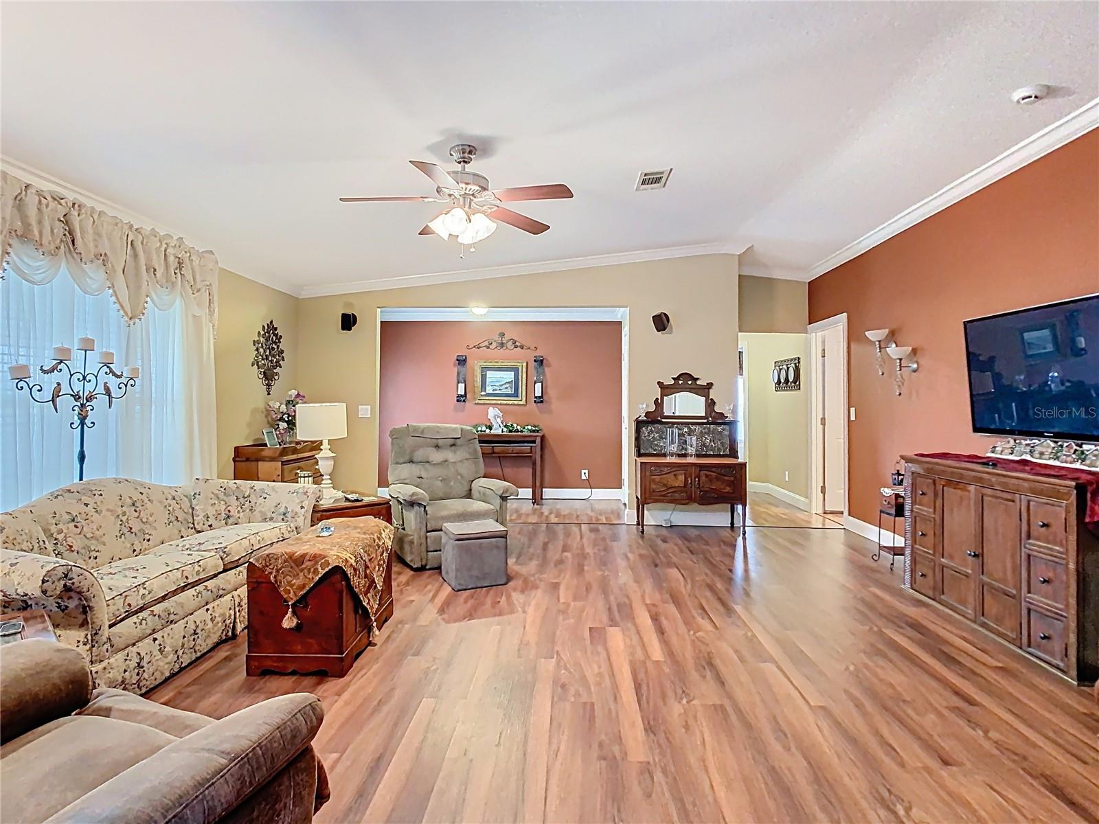 Opportunity knocks! Have you been looking for a home that provides the space you need to entertain guests, have your pet, continue or start new hobbies, and is in an affordable community? Welcome home to this terrific property in desirable Lake Betmar Estates. One of the most spacious homes in the neighborhood, 5514 Dean Dairy Rd offers over 2,000 square feet of interior space along with a deep 2 car tandem garage and covered parking. Unlike most of Betmar, pets are allowed at this property! Inside you’ll find two spacious bedrooms and a third room that could be an office, den, craft room, or whatever you like. You’ll appreciate details like crown molding throughout and a large, open living room that leads into the dedicated dining room and kitchen with plenty of counter space and storage. Relax on your back porch with composite decking or tinker around in the large garage that gives plenty of space for tools, toys, or your vehicles. The age 55+ Betmar neighborhood is famous for its community events and a wide range of club activities that you can join a la carte for minimal fees. Zephyrhills has a quaint historical downtown area but is also close to the growth and amenities of Wesley Chapel and the greater Tampa area beyond. Tour this home to see how this home can make the Florida lifestyle you want happen.