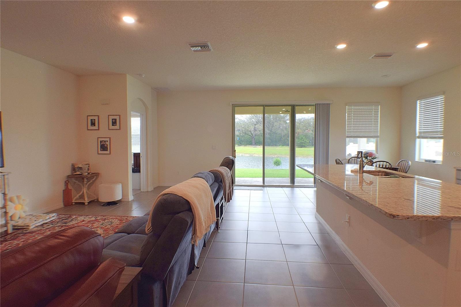 Welcome to this stunning 3-bedroom, 2-bath home built in 2022 with a picturesque pond view! This open-concept gem feels just like new and offers a perfect blank canvas to make your own. The spacious kitchen features granite countertops, sleek gray cabinets, and stainless steel appliances. The large island separating the kitchen from the spacious living room makes this home ideal for entertaining. Tile flooring flows seamlessly through all common areas, adding a touch of elegance and easy maintenance. Retreat to the master suite with its walk-in closet, garden tub, and beautifully tiled shower. Located in a quaint community with wonderful amenities, including a swimming pool, playground, and clubhouse. Don't miss your chance to call this beautiful home yours!