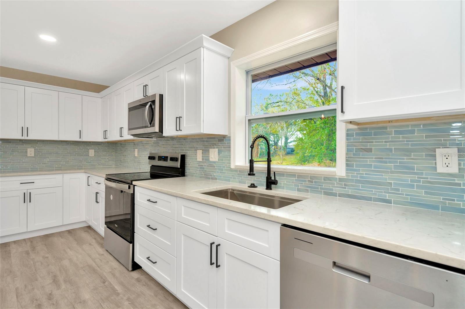 Welcome to your dream home! This completely remodeled, move-in ready property is a true gem, offering luxurious modern living on an oversized corner lot spanning over 1/2 an acre. Nestled in the quiet, serene neighborhood of Lake Bernadette, this 3-bedroom, 2-bathroom home features an open floor plan, a spacious kitchen, and a 2-car garage; perfect for families or entertainers. Every detail of this home has been meticulously updated, including new windows, new doors, new luxury vinyl flooring, and new stainless-steel appliances. The only things that are not brand new are the roof replaced in 2018, water heater from 2016, and a new garage door installed in 2023. The large yard provides plenty of space for outdoor activities, making it ideal for those who love to entertain or enjoy the outdoors. Located in a highly desirable area, this home offers convenient access to top-rated schools, Wiregrass Mall, Tampa Premium Outlets, dining, theaters, and medical centers. Plus, its proximity to I-75 ensures an easy commute to Tampa and surrounding areas. Golf enthusiasts will love being just minutes from The Links of Lake Bernadette and a nearby driving range, adding to the appeal of this peaceful community. Don’t miss this opportunity to own a turnkey property in a prime location with endless amenities at your fingertips. Schedule your showing today and experience the perfect blend of modern luxury and tranquil living!