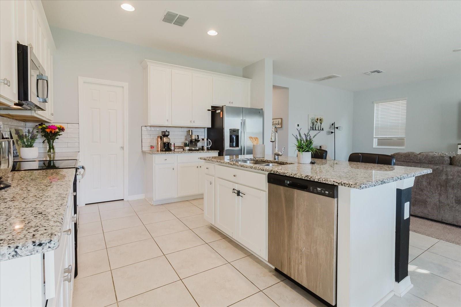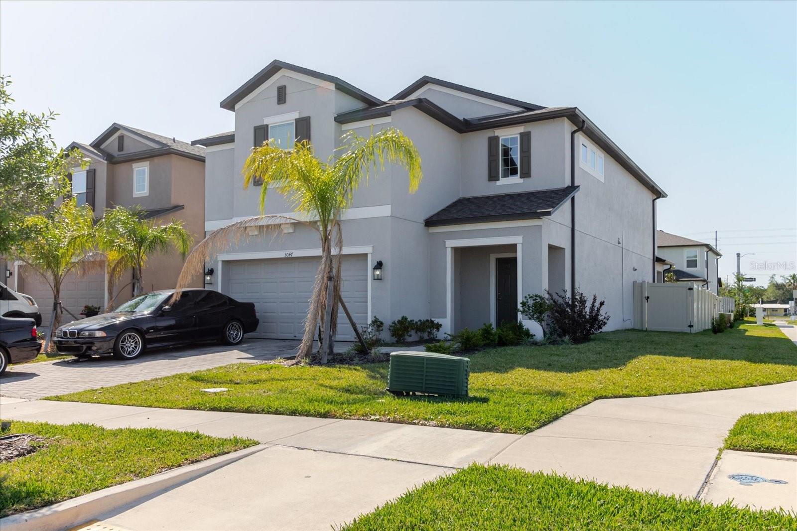 Welcome to your dream home in the highly sought-after Cobblestone neighborhood of Zephyrhills! Nestled on a spacious ¼-acre corner lot, this beautifully designed 4-bedroom, 3-bathroom residence offers the perfect blend of luxury, functionality, and modern comfort. Step inside to an open-concept layout featuring a gourmet kitchen complete with sleek modern cabinetry, granite countertops, and high-end stainless steel appliances—perfect for entertaining or creating culinary masterpieces. The expansive living areas are filled with natural light and designed for both everyday living and hosting. Retreat to the spacious master suite, which boasts two walk-in closets and a spa-like ensuite bathroom with dual vanities and luxurious finishes. A private first-floor mother-in-law suite adds even more flexibility and privacy for guests or extended family. Additional highlights include a large laundry room with extra storage, an oversized garage, and smart home features including a wireless security panel, video doorbell, keyless entry, remote garage access, and whole-home internet connectivity. The home is still under builder warranty for added peace of mind. Enjoy low property taxes and minimal HOA fees, while also taking advantage of the community’s impressive amenities: an Olympic-sized pool, cabanas, and a fully fenced playground. Conveniently located just 30 minutes from Downtown Tampa, and close to top shopping destinations like The Grove at Wesley Chapel, Krates, Wiregrass Mall, and Tampa Premium Outlets, this home truly has it all. Don't miss the immersive 3D Matterport tour to explore every inch of this incredible home!