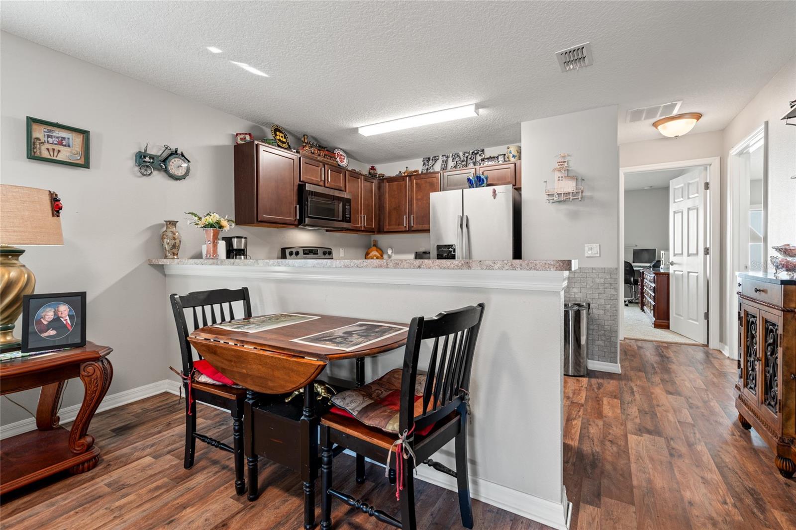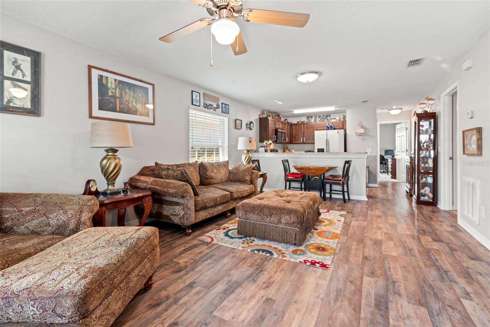 Welcome to 6745 Driftwood Circle, a beautiful 2 bedroom, 2 bathroom villa offering 1,074 square feet of comfortable living space in the desirable Driftwood 55+ gated community. This home features a convenient 1-car garage, perfect for parking and storage. The kitchen boasts a breakfast bar, a large closet pantry, and attractive solid wood cabinetry. Enjoy a low-maintenance lifestyle with HOA fees covering water, sewer, and trash pickup. Driftwood offers residents a wealth of amenities, including a heated pool, shuffleboard, library, and a full calendar of daily activities. Small pets are welcome! The prime location provides easy access to Advent Health Hospital, Florida Medical Clinic, shopping centers, and downtown Zephyrhills. Don't miss this opportunity