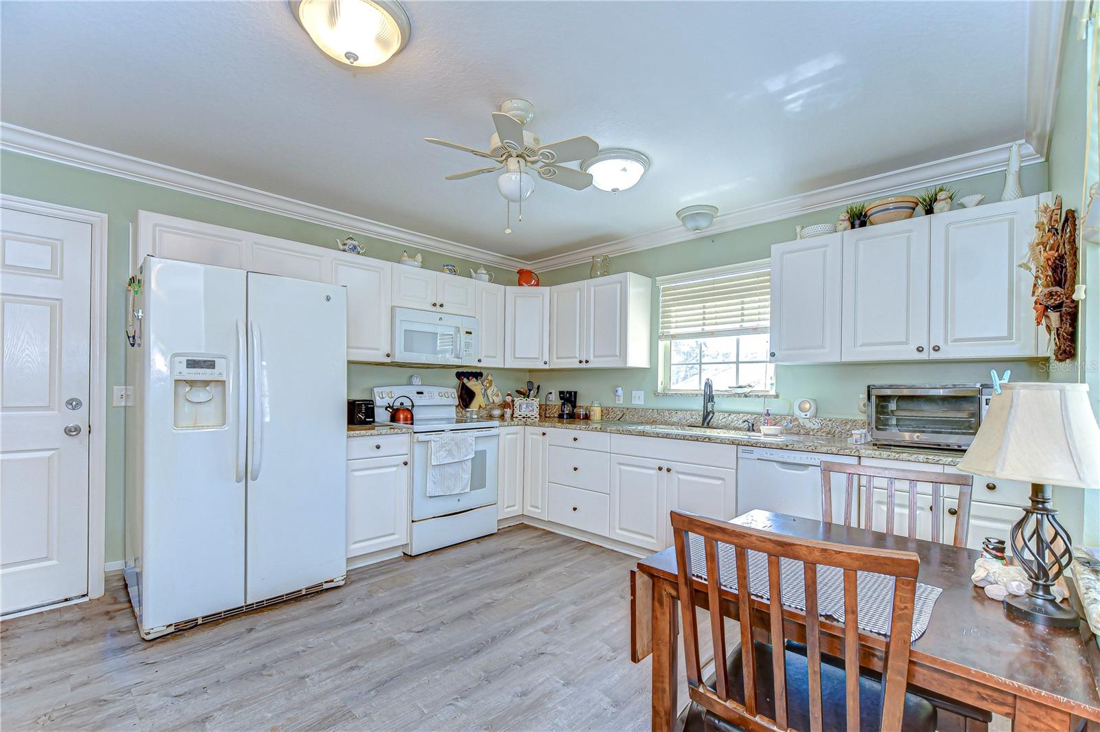 Wedgewood Manor is a desired 55+ community in Zephyrhills near shopping, restaurants, grocery stores and medical facilities. This is a 2 bedroom/2 bath home built in 2003 and located at the end of a dead end street. At the front entrance there is a patio to enjoy in the evening. As you enter the home there is an entrance foyer. To the right is the kitchen with eating area, built in desk and pantry. There is a laundry room that leads to the garage. The foyer also leads to the living/dining area. Large open area to enjoy entertaining. to the rear is a bonus room that can be a family room, office area, or hobby area. You choose. There is also an exterior door. Off of the living room is the hall to the bedrooms. The primary bedroom has a walk in closet and ensuite. The ensuite has a walk in shower and a built in vanity with storage. The hall bath has a tub with shower. The second bedroom has a ceiling fan and built in closet. There is a community pool and clubhouse to enjoy the activities in the community. The monthly fee includes basic cable, internet, mowing the yard and use of recreational facilities. What a deal! Call for an appointment to view this home.