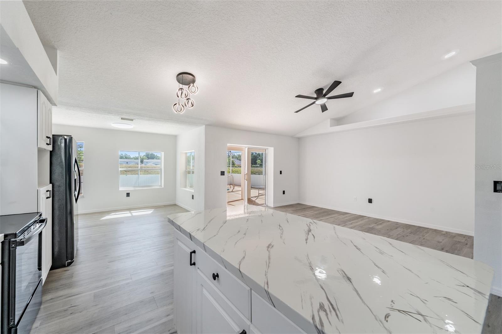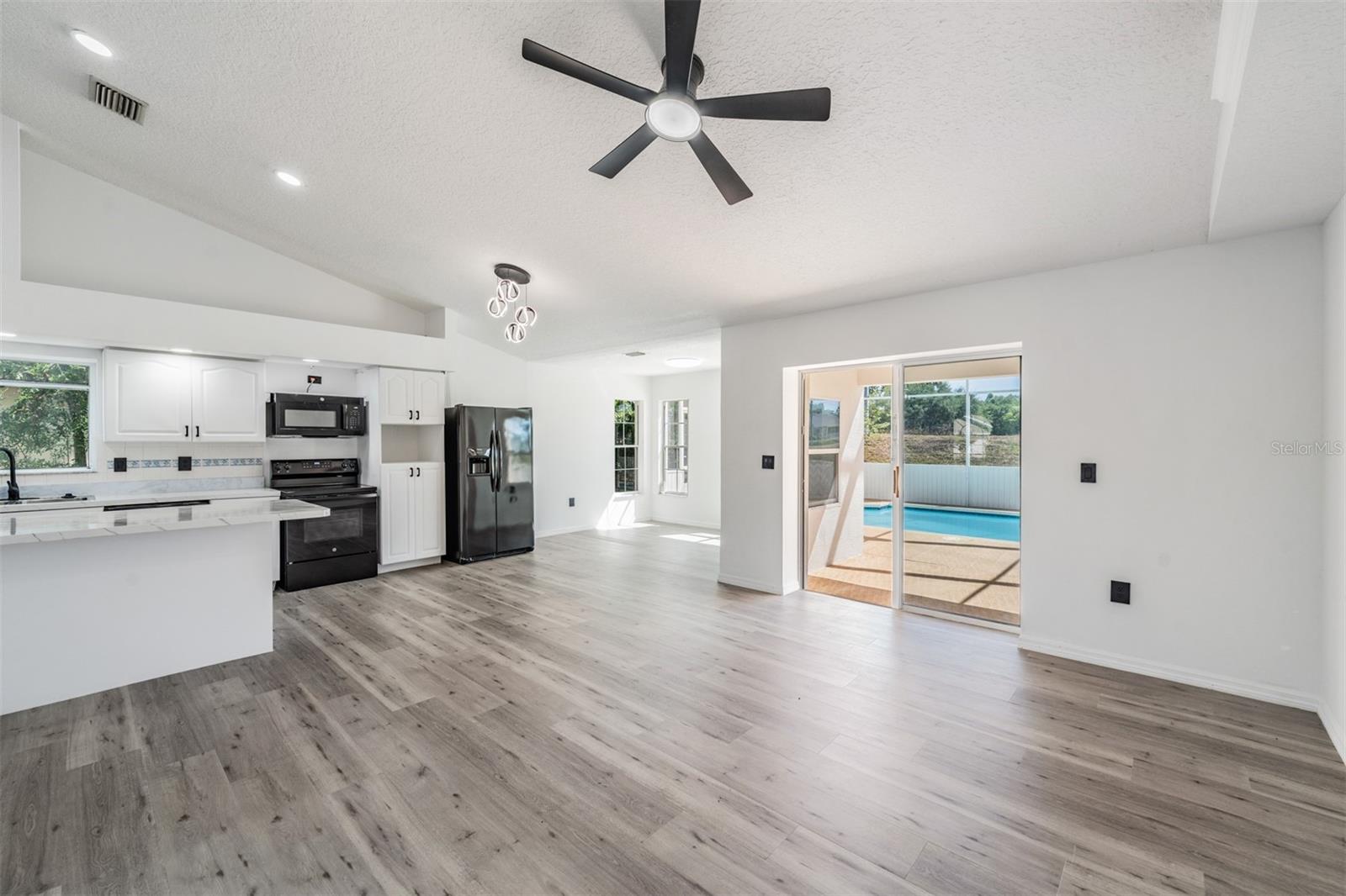 Welcome to your dream home in the established Silver Oaks community, a serene neighborhood where tree-lined streets, mature landscaping, and scenic ponds set the tone for tranquil living. This charming neighborhood, tucked away from the fast pace of Pasco County, offers oversized lots and a sense of space rarely found in today’s newer developments. As you explore the community, you’ll notice the friendly faces of neighbors enjoying the outdoors, golf carts on the private streets and a peaceful atmosphere that feels like a true retreat. This beautifully RENOVATED pool home sits on a spacious lot with no rear neighbors and generous distance between neighboring homes... offering privacy and quiet you’ll truly appreciate. Inside, the home has been freshly painted, with new flooring and stylish light fixtures and ceiling fans throughout. Cathedral ceilings and large windows welcome you into a bright, open space filled with natural light and continous waterproof luxury vinyl plank floors. The open-concept floor plan is perfect for entertaining, with a modern kitchen featuring a long island ideal for meal prep, gatherings, or casual dining. Just outside is your private screened-in pool and lanai, a perfect escape for both relaxation and extending your entertaining space. The expansive covered area is ideal for outdoor furniture, and the fully retractable glass doors provide a seamless indoor-outdoor living experience. Thoughtfully designed with updated bathrooms, ample storage, a laundry room with utility sink and an attached two-car garage, every detail of this home blends function with style. Updated appliances 2024 GE Microwave and Range, 2021 Frigidaire Refrigerator, 2018 GE Dishwasher, 2013 AC. Located just minutes from shopping, dining, bowling, movie theater, medical facilities and hospital, historic downtown Zephyrhills and recreational amenities such as the Sarah VandeBerg Tennis Center and the YMCA. Silver Oaks truly offers the best of both worlds: refined, peaceful living with easy access to the energy of Wesley Chapel, the charm of Dade City, and the conveniences of Zephyrhills. This move-in-ready gem is also USDA eligible so CALL TODAY to tour this home and enjoy the very best of Florida living!