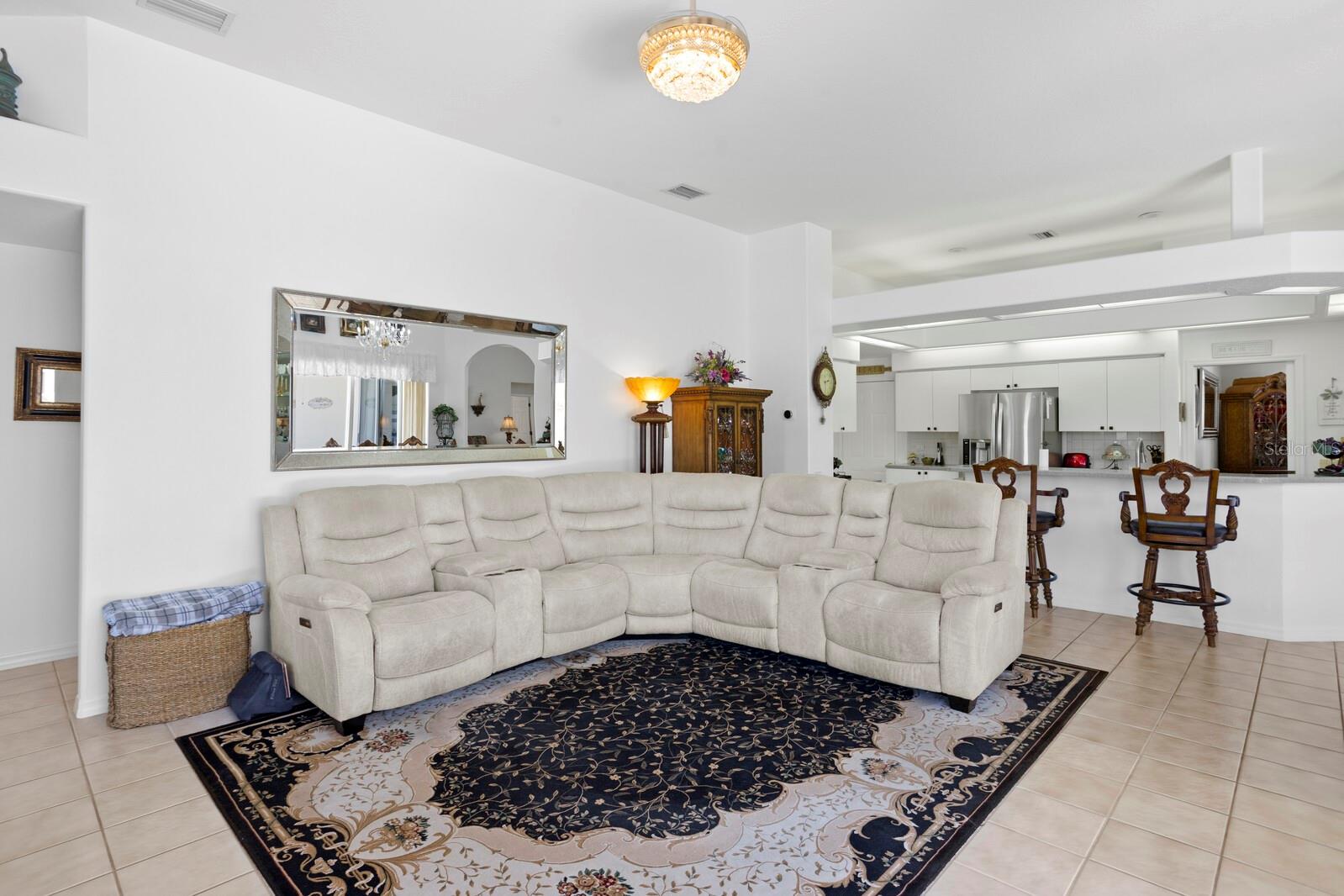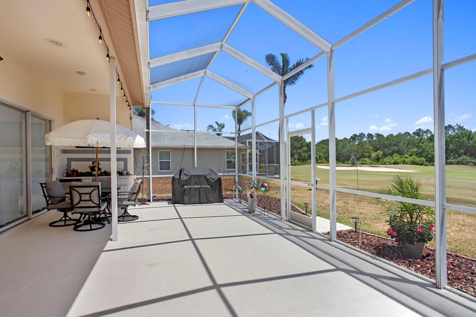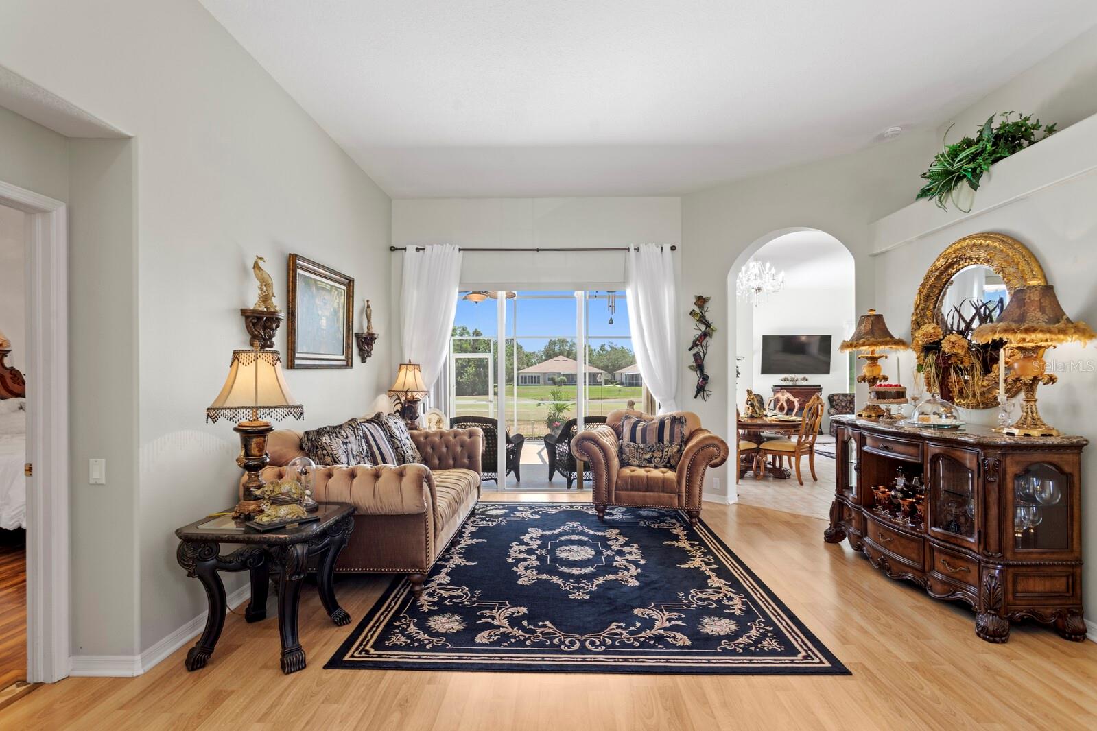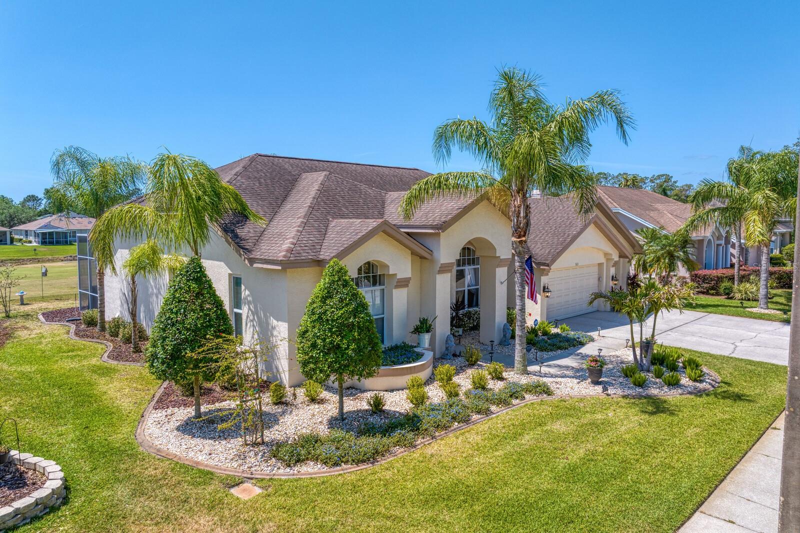 Elegant Arthur Rutenberg Pool Home with Conservation and Golf Course Views in Epping Forest. Welcome to this meticulously maintained 3-bedroom, 2-bathroom, 3-car garage home located in the sought-after Epping Forest community of Zephyrhills. This classic Arthur Rutenberg home offers 2,075 square feet of heated living space on a beautifully landscaped lot, with scenic views of the 5th hole of the Links of Lake Bernadette Golf Course. As you step through the freshly painted double leaded glass front doors, you’re welcomed by soaring ceilings, tile and new hardwood flooring in all three bedrooms, and an open floor plan designed for both comfort and entertaining. The interior has been freshly painted, including updated kitchen cabinetry, enhancing the home’s clean and contemporary appeal. The formal dining room is elegant and bright, featuring a custom chandelier and an arched window. Throughout the home, you’ll notice new light fixtures inside and out, updated ceiling fans, and new curtains. The adjacent living room flows seamlessly into the formal living area, with triple sliding doors framing serene views of the screened lanai and fairway beyond. The kitchen is perfectly positioned at the heart of the home and now features a new kitchen sink and fixtures, new garbage disposal, new stove, and new microwave. White cabinetry and a breakfast bar complement the eat-in dinette, which overlooks the patio and sweeping golf course views. A large pantry and ample prep space make it ideal for any home chef. The spacious family room boasts vaulted ceilings, tile flooring, and sliding doors that open wide to the expansive screened lanai, creating a true indoor/outdoor lifestyle. The home is equipped with a new HVAC system and updated thermostat wiring, offering modern energy efficiency and comfort. The private primary suite, located on the east side of the home, includes new hardwood flooring, two walk-in closets, and tranquil golf course views. The spa-inspired en-suite bathroom features dual sinks with new fixtures, a soaking tub beneath an arched window, a separate walk-in shower, and a private water closet with a new toilet. Two additional bedrooms on the opposite side of the home are generously sized and share a fully renovated bathroom with a new sink fixture and new toilet. Whether used as guest rooms or a home office, they offer flexibility and comfort. Step outside to the oversized screened lanai, where you'll find a covered rear porch, wet bar, and outdoor refrigerator. The new landscaping, including two beautiful trees, enhances the curb appeal and complements the peaceful backyard views of the “Windward” hole of the golf course and tranquil pond. There are no rear neighbors—just wide-open skies and Florida sunshine. The 3-car garage has also been refreshed with painted floors and baseboards, new lights and fixtures, and newly painted garage doors inside and out. Located close to I-75, Advent Health, top-rated schools, restaurants, and shopping, this move-in-ready golf course home blends timeless design with thoughtful modern updates. Don’t miss this rare opportunity to own a beautifully upgraded Arthur Rutenberg home in one of Zephyrhills’ most desirable neighborhoods.