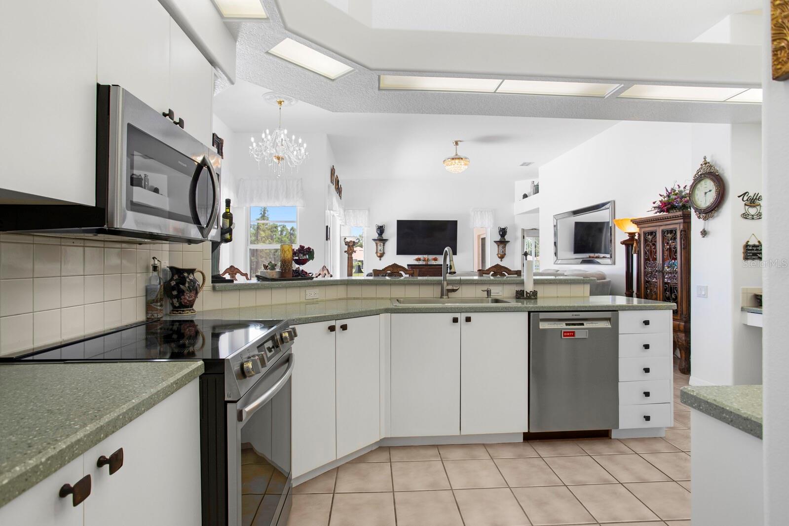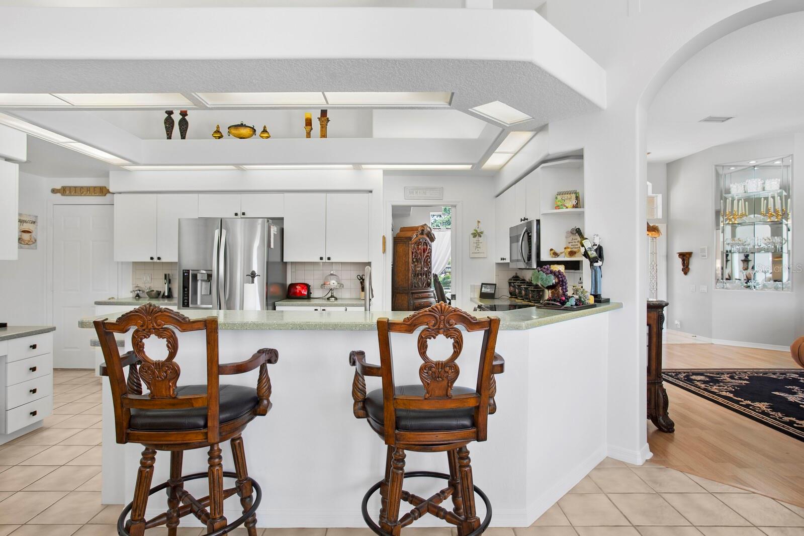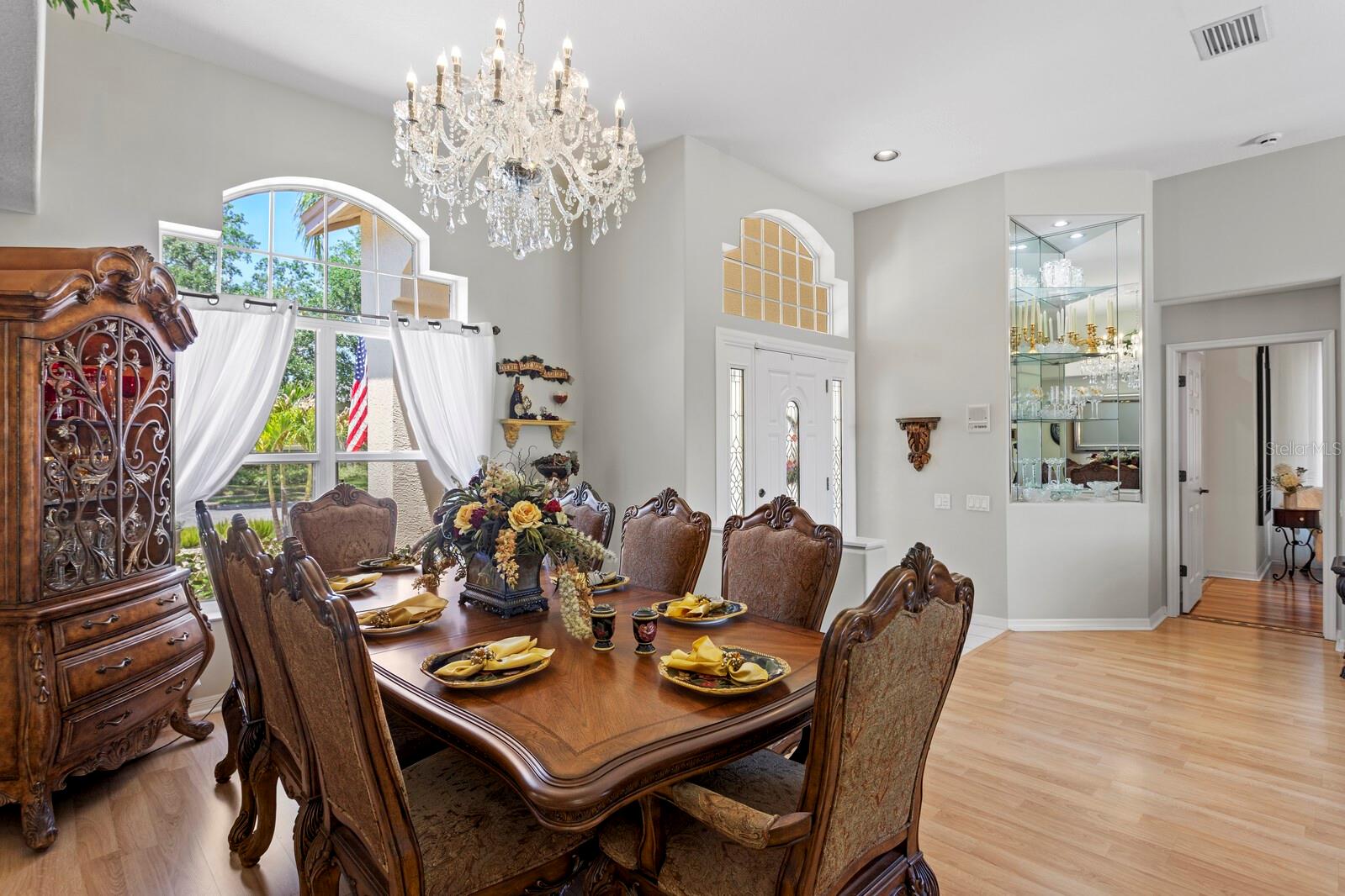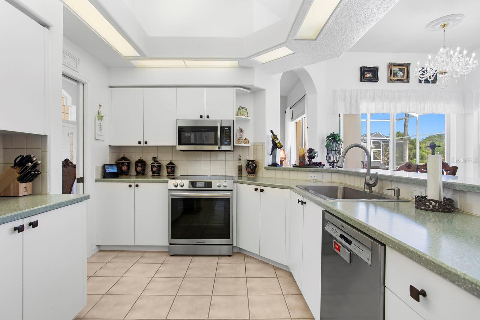 Elegant Arthur Rutenberg Pool Home with Conservation and Golf Course Views in Epping Forest. Welcome to this meticulously maintained 3-bedroom, 2-bathroom, 3-car garage home located in the sought-after Epping Forest community of Zephyrhills. This classic Arthur Rutenberg home offers 2,075 square feet of heated living space on a beautifully landscaped lot, with scenic views of the 5th hole of the Links of Lake Bernadette Golf Course. As you step through the freshly painted double leaded glass front doors, you’re welcomed by soaring ceilings, tile and new hardwood flooring in all three bedrooms, and an open floor plan designed for both comfort and entertaining. The interior has been freshly painted, including updated kitchen cabinetry, enhancing the home’s clean and contemporary appeal. The formal dining room is elegant and bright, featuring a custom chandelier and an arched window. Throughout the home, you’ll notice new light fixtures inside and out, updated ceiling fans, and new curtains. The adjacent living room flows seamlessly into the formal living area, with triple sliding doors framing serene views of the screened lanai and fairway beyond. The kitchen is perfectly positioned at the heart of the home and now features a new kitchen sink and fixtures, new garbage disposal, new stove, and new microwave. White cabinetry and a breakfast bar complement the eat-in dinette, which overlooks the patio and sweeping golf course views. A large pantry and ample prep space make it ideal for any home chef. The spacious family room boasts vaulted ceilings, tile flooring, and sliding doors that open wide to the expansive screened lanai, creating a true indoor/outdoor lifestyle. The home is equipped with a new HVAC system and updated thermostat wiring, offering modern energy efficiency and comfort. The private primary suite, located on the east side of the home, includes new hardwood flooring, two walk-in closets, and tranquil golf course views. The spa-inspired en-suite bathroom features dual sinks with new fixtures, a soaking tub beneath an arched window, a separate walk-in shower, and a private water closet with a new toilet. Two additional bedrooms on the opposite side of the home are generously sized and share a fully renovated bathroom with a new sink fixture and new toilet. Whether used as guest rooms or a home office, they offer flexibility and comfort. Step outside to the oversized screened lanai, where you'll find a covered rear porch, wet bar, and outdoor refrigerator. The new landscaping, including two beautiful trees, enhances the curb appeal and complements the peaceful backyard views of the “Windward” hole of the golf course and tranquil pond. There are no rear neighbors—just wide-open skies and Florida sunshine. The 3-car garage has also been refreshed with painted floors and baseboards, new lights and fixtures, and newly painted garage doors inside and out. Located close to I-75, Advent Health, top-rated schools, restaurants, and shopping, this move-in-ready golf course home blends timeless design with thoughtful modern updates. Don’t miss this rare opportunity to own a beautifully upgraded Arthur Rutenberg home in one of Zephyrhills’ most desirable neighborhoods.