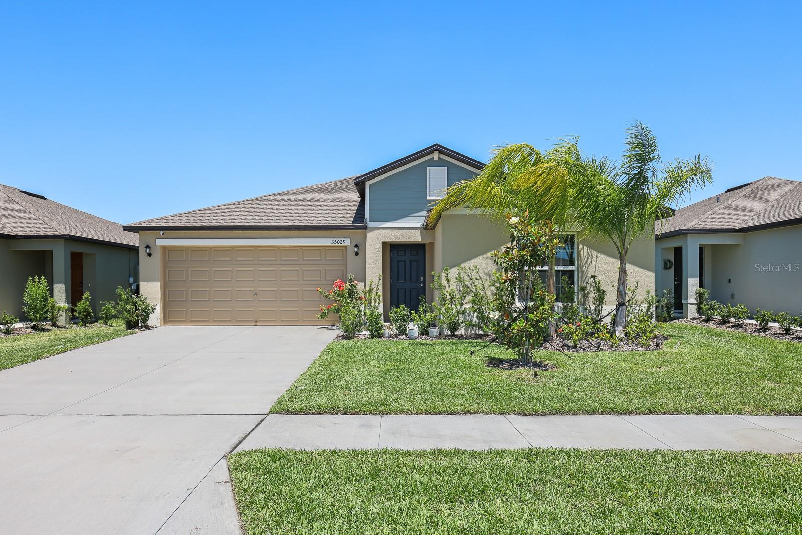 Welcome to the sought-after Two Rivers community in Zephyrhills! This beautifully designed Hartford model by Lennar offers 4 bedrooms, 2 bathrooms, and a 2-car garage, all within a spacious 1,939 square feet. The open-concept layout is perfect for both everyday living and entertaining, with a split bedroom floor plan that places bedrooms 2 through 4 near the front of the home, while the private primary suite is tucked away at the rear. The primary bedroom features an en-suite bathroom complete with a dual sink vanity, walk-in shower, private water closet, and a generous walk-in closet. The heart of the home is the stylish kitchen, featuring a large island with quartz countertops and a full stainless steel appliance package, including a refrigerator, range, microwave, and dishwasher. The kitchen overlooks the living and dining areas, with sliding glass doors that fill the space with natural light and offer easy access to the backyard. Residents of Two Rivers enjoy a wealth of amenities including a community pool, clubhouse, playground, and scenic trails. Plus, you're just a short drive from fantastic shopping at Tampa Premium Outlets and the Shops at Wiregrass, unique entertainment at KRATE, and a wide variety of dining options throughout Zephyrhills.