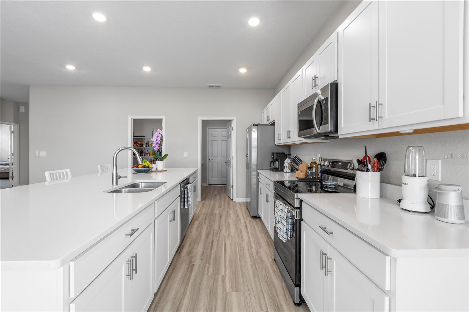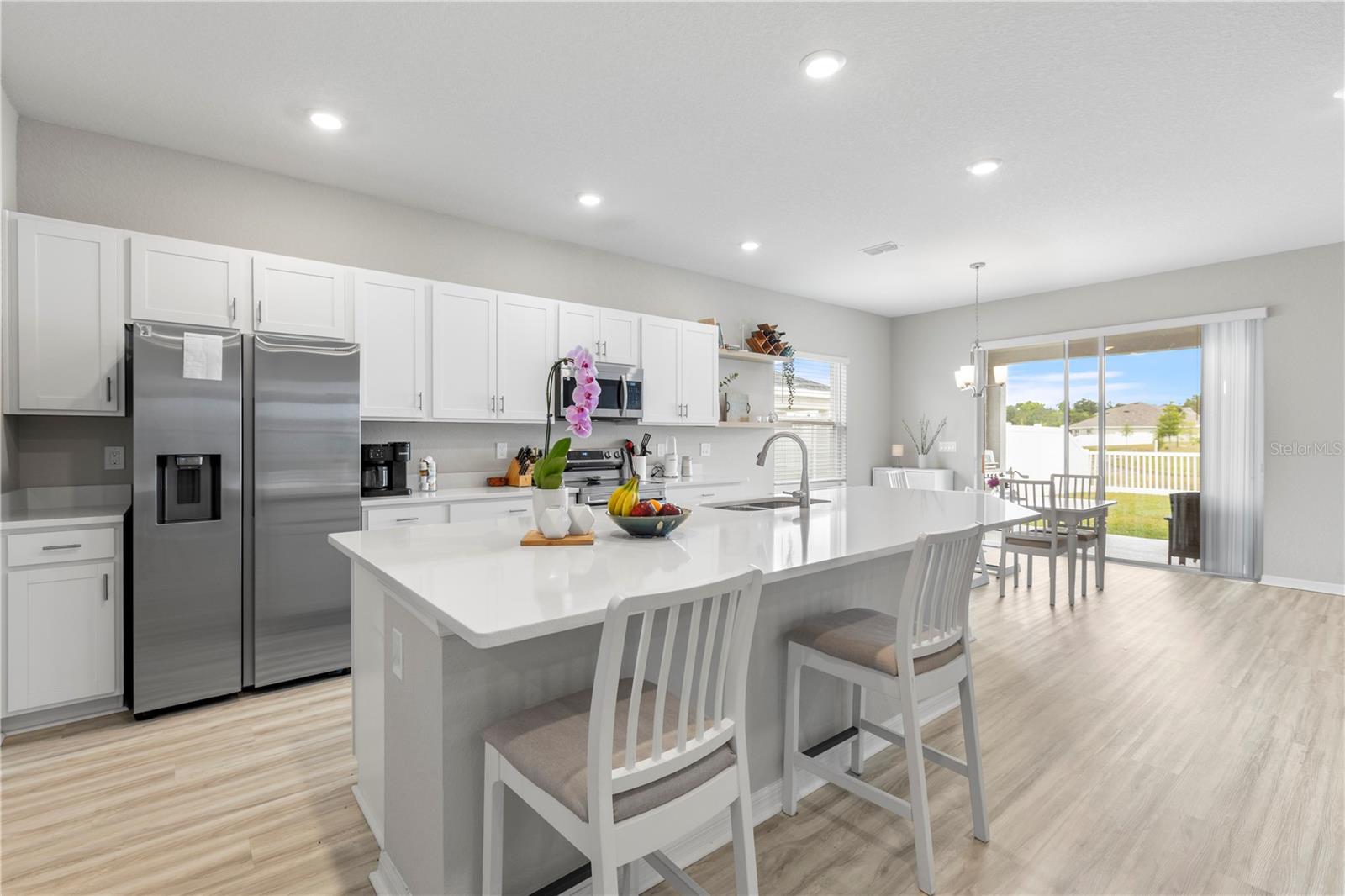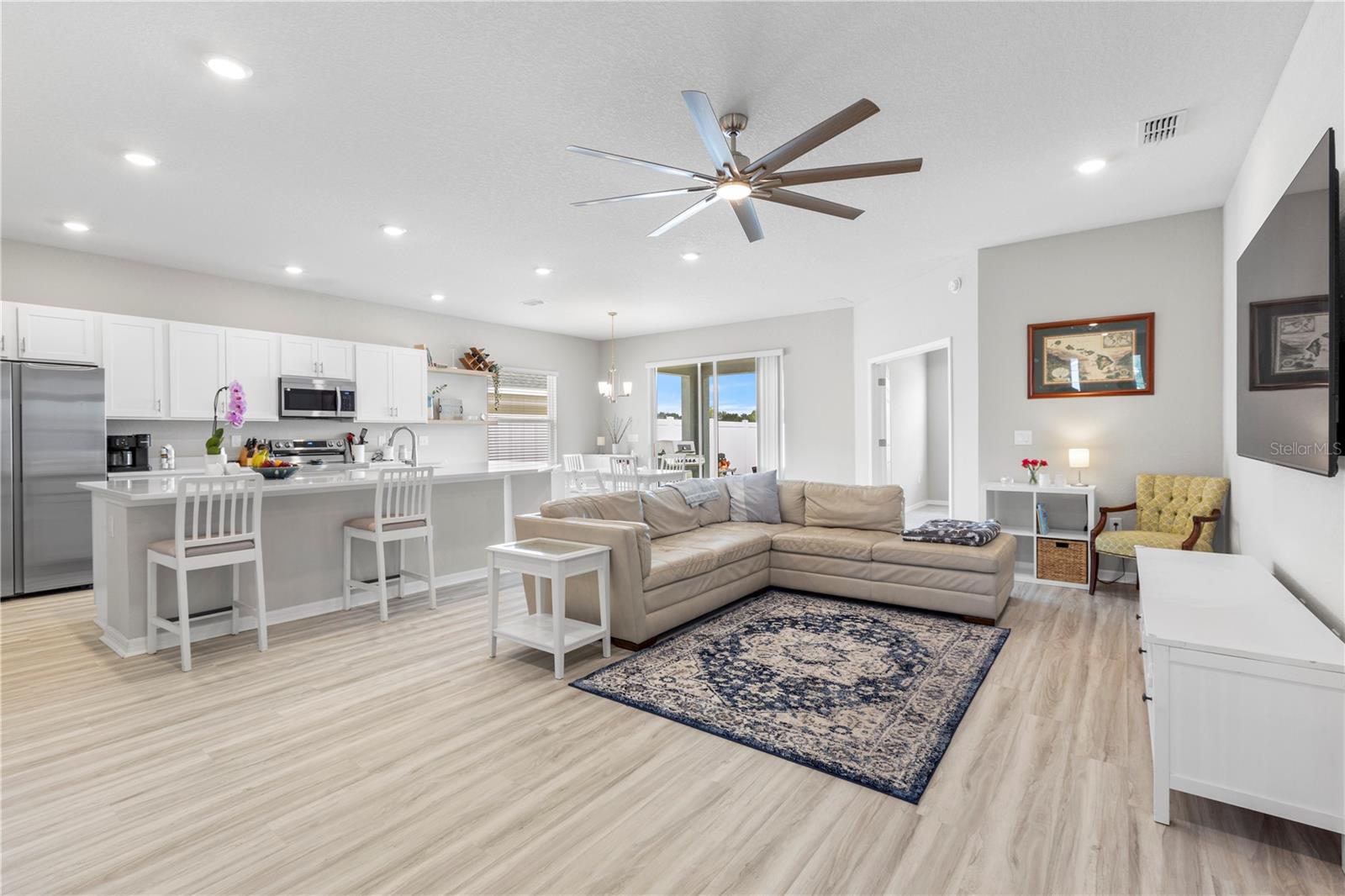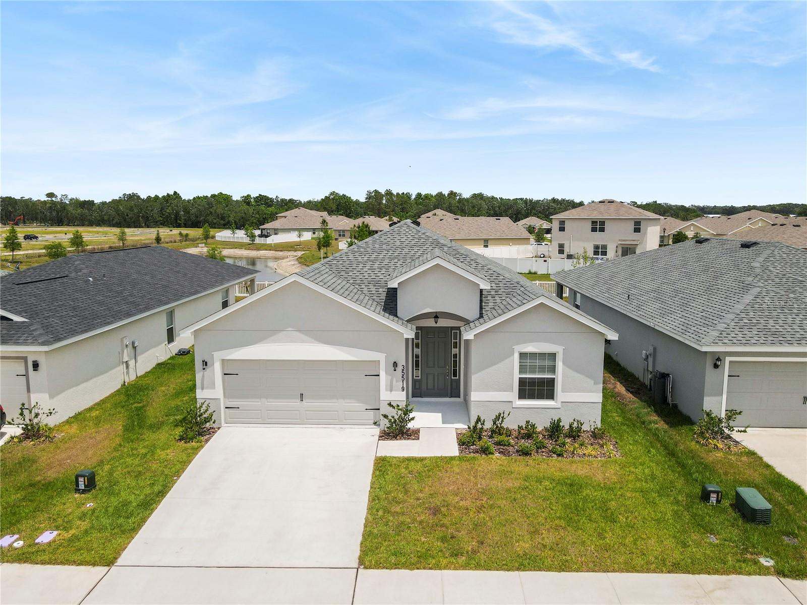 Property is eligible for 100% USDA Financing or take advantage of the assumable VA Mortgage with a Low Interest Rate 4.5%! Why wait months for new construction when this 2024-built, move-in-ready home in Stonebridge at Chapel Creek is available today? This stunning 4-bedroom, 2.5-bathroom Highland Homes “Shelby” model offers over 2,000 square feet of open-concept living space, complete with designer upgrades and energy-efficient features. The chef-inspired kitchen includes Silestone quartz countertops, a large island, Samsung stainless steel appliances, and a walk-in pantry, perfect for entertaining. Luxury vinyl plank flooring runs throughout the main living areas, while plush carpet adds comfort in the bedrooms. The private owner’s suite boasts a walk-in closet and a spa-like en-suite bath with dual vanities and a tiled shower. Bedrooms 3 and 4 are connected by a convenient Jack-and-Jill bath. Enjoy Florida living year-round on your covered lanai, or retreat inside where custom window blinds, architectural shingles, and modern insulation keep things cool and efficient. Seller just installed New Ceiling Fans and Epoxy Garage Flooring! Located in a community with low HOA fees & Low CDD fees, no rear neighbors, and minutes from shopping, dining, and major highways, this is better than new and ready to welcome you home. Schedule your private tour today!