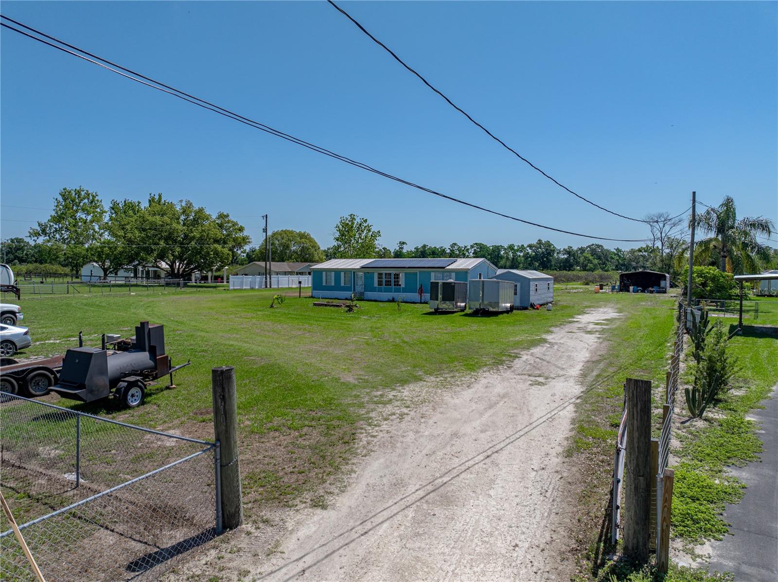 Peaceful Country Living with Modern Perks – 3BR/2BA on 1.25 Acres. Seller is contributing $5,000 towards a flooring allowance for the new Buyers! Escape the hustle and bustle with this beautifully maintained 3-bedroom, 2-bath manufactured home set on 1.25 serene acres in the peaceful outskirts of Zephyrhills. This property combines the charm of country living with thoughtful upgrades and energy-efficient features. Inside, you'll find fresh interior paint and a bright, open layout perfect for comfortable everyday living. The kitchen and living areas flow effortlessly, creating a welcoming space for gatherings or quiet evenings at home. Step outside to discover the true value of this property—ample outdoor space with multiple carports, detached garages, and a fully air-conditioned shed, currently used as a home business hub. Whether you're an entrepreneur, hobbyist, or need extra storage, the possibilities are endless. Enjoy low electric bills thanks to fully paid-off solar panels, offering peace of mind and long-term savings. With plenty of room to roam, garden, or just relax under the open sky, this property is ideal for those looking to embrace a more laid-back lifestyle with modern comforts. Located in the Tranquil Countryside of Zephyrhills! Don't miss your chance to own this unique slice of Florida country living—schedule your private showing today!