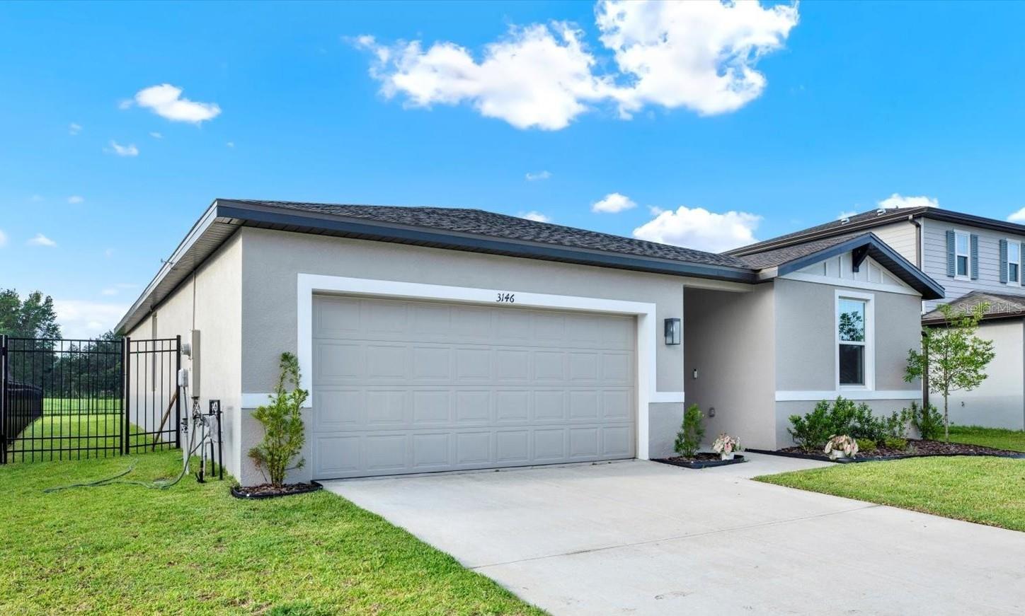 Short Sale. With no CDD fees and very low HOA fee, this is a fantastic opportunity to purchase your own home at current market value. This beautifully designed and newly built 4 bedroom, 2 bath home offers a harmonious blend of comfort, style, and nature. Nestled in the back of the neighborhood and situated on a generous, fully fenced, conservation lot, offering a serene setting for your morning coffee or evening cocktail. Features to take note of; gorgeous wood-look tile flooring throughout the main living areas, open floor plan, split bedrooms, and views of the tranquil pond and the pastures beyond. Enjoy cooking in a modern kitchen equipped with stainless steel appliances, granite countertops, abundant cabinetry, large island, and huge walk-in pantry. Retreat to the master bedroom featuring a walk-in closet, dual sinks, and large shower. The three additional bedrooms with their own dedicated bathroom are all in the front of the house and offer plenty of space for family, guests, and a home office. Additional highlights include a two-car garage with insulated door, energy-efficient windows and appliances, spray foam insulation, and smart locks. This booming location is ideal for commuting to Tampa, Wesley Chapel, or join the Club at The Landings at Twin Rivers. ALL conditions are subject to bank approval before closing.