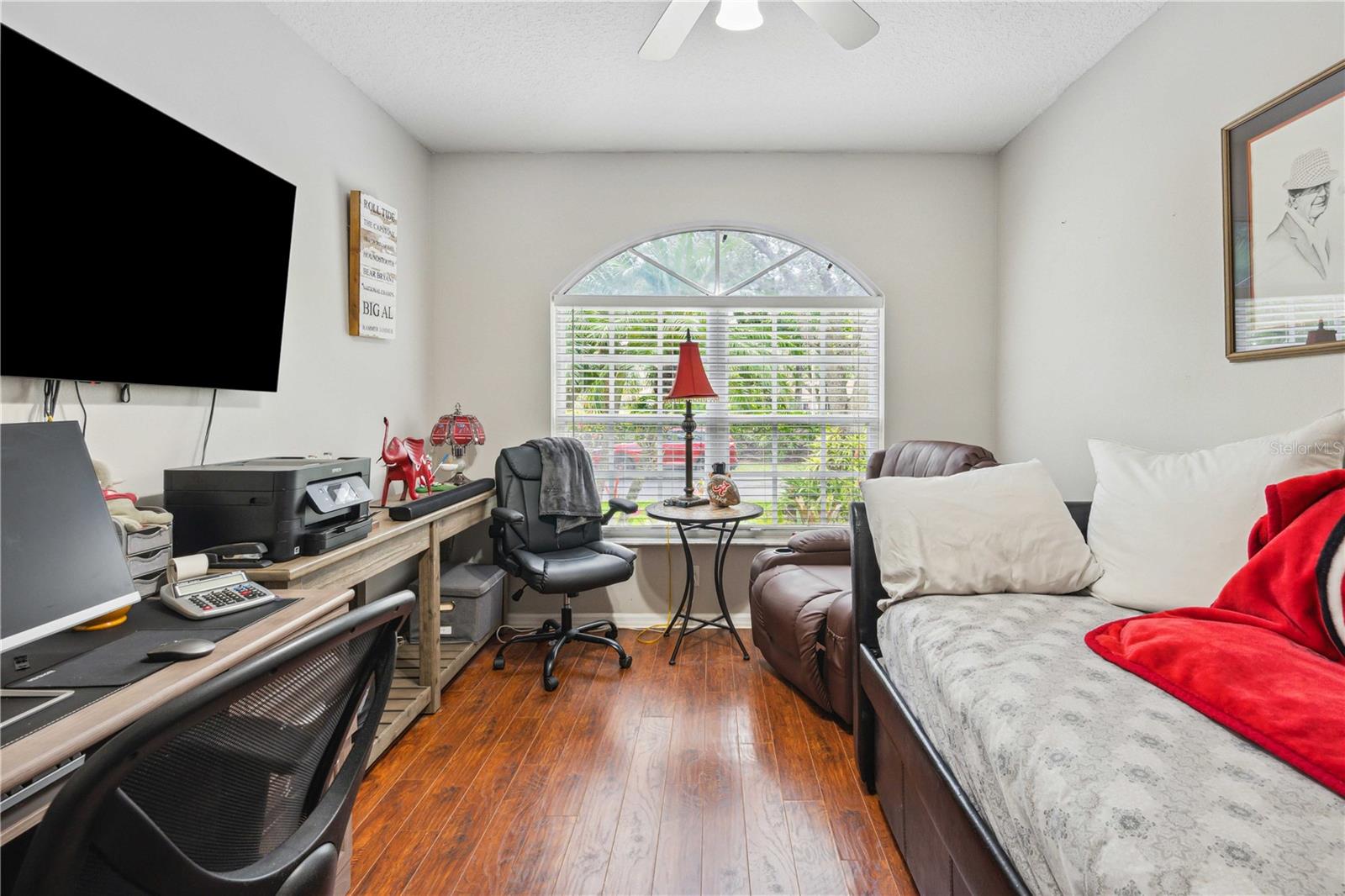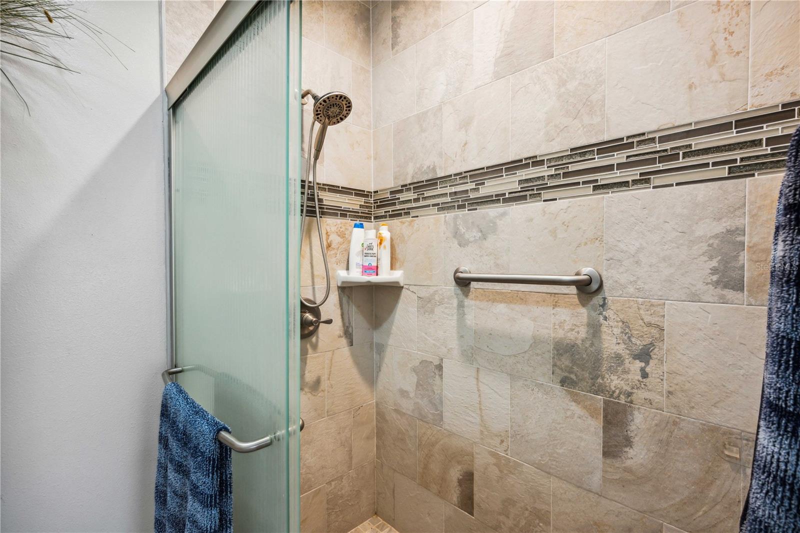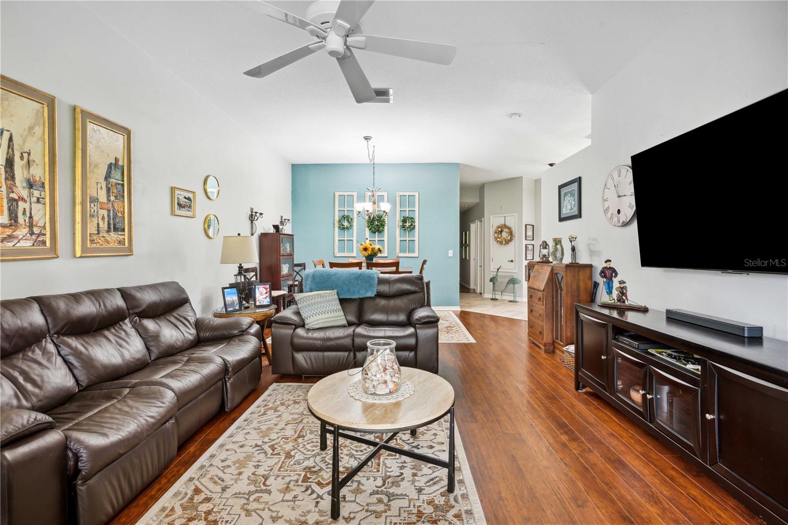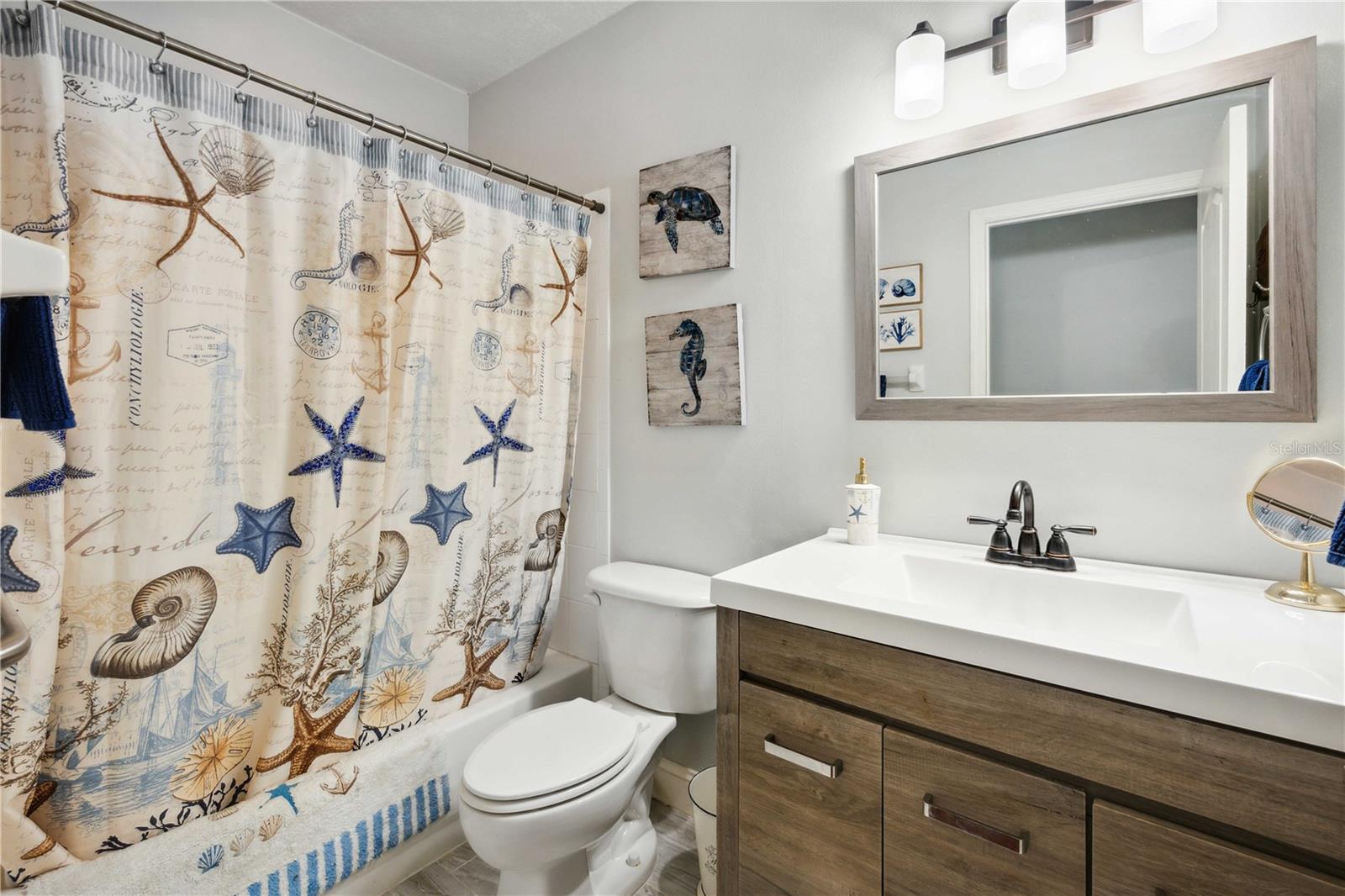 Enjoy golf course living in this beautifully updated 3-bedroom, 2.5-bath Villa located right by the 6th hole-perfect for early morning tee times or sunset strolls in the backyard. Step inside to find custom-built kitchen cabinetry with sleek Quartz Cambria countertops, a chef's delight whether you're whipping up snacks or holiday meals. The open floor plan boasts no carpeting, making spills a little less dramatic and clean ups a breeze. Tile floors flow throughout, including the entryway, lanai, and even the front porch. The tile lanai extends your living space into the outdoors-just right for sipping your morning coffee or relaxing with a good book. The primary bedroom is spacious and thoughtfully designed with an updated walk-in shower and a garden tub. Two additional bedroom and guest bath provide flexibility for family, hobbies, or visitors. Recent updates include a 2023 air conditioning system for year-round comfort, and the community HOA helps simplify life by covering the roof, exterior paint, and private road maintenance. Love your golf cart? It'll have its own garage space or can be used for storage. This villa combines thoughtful updates, low maintenance living, and a prime community location to provide a lifestyle that's convienent and comfortable. Great location near Publix and restaurants. Come take a look-your next chapter might just begin here.