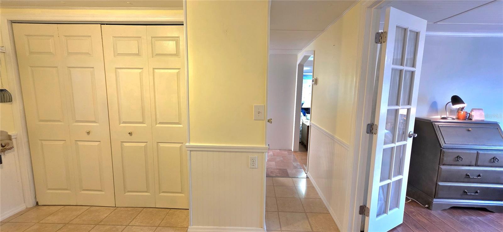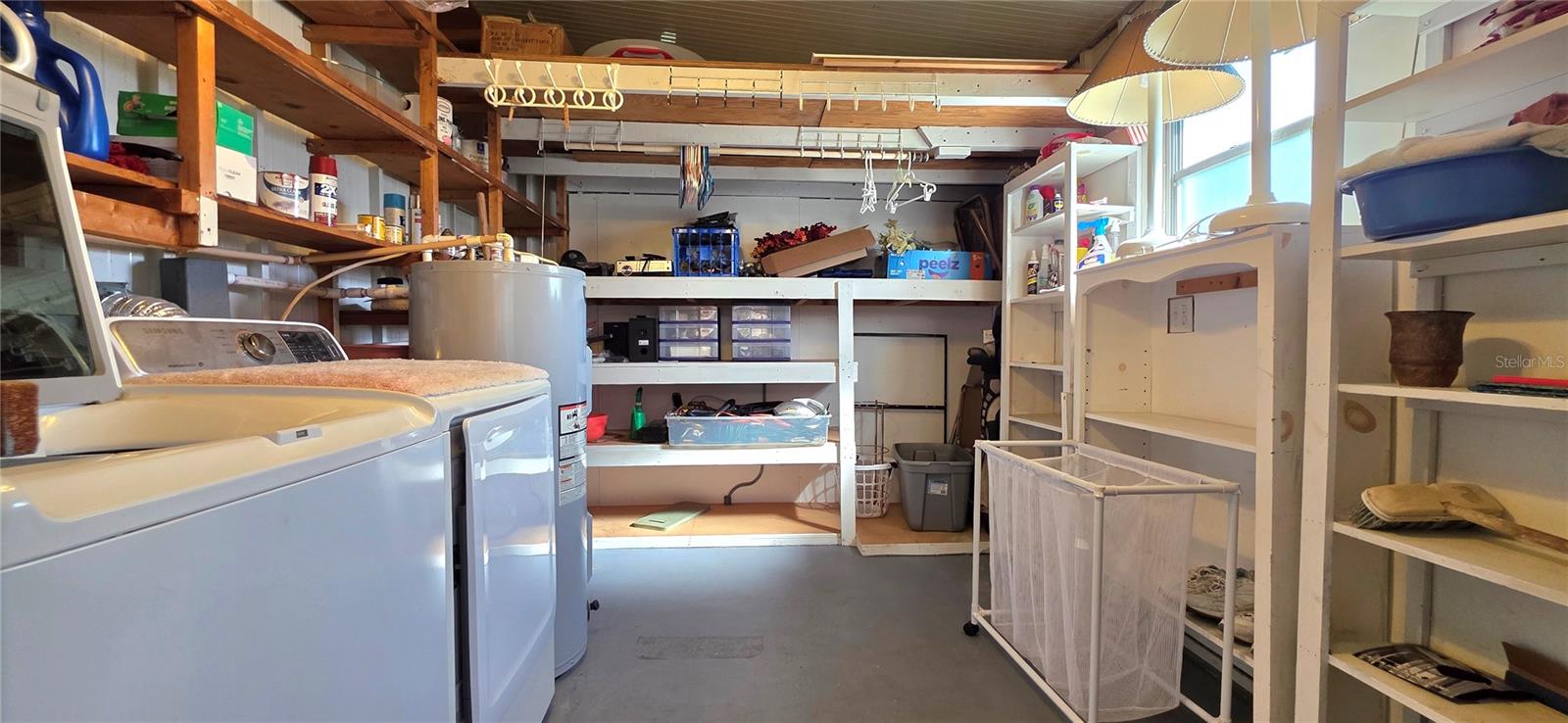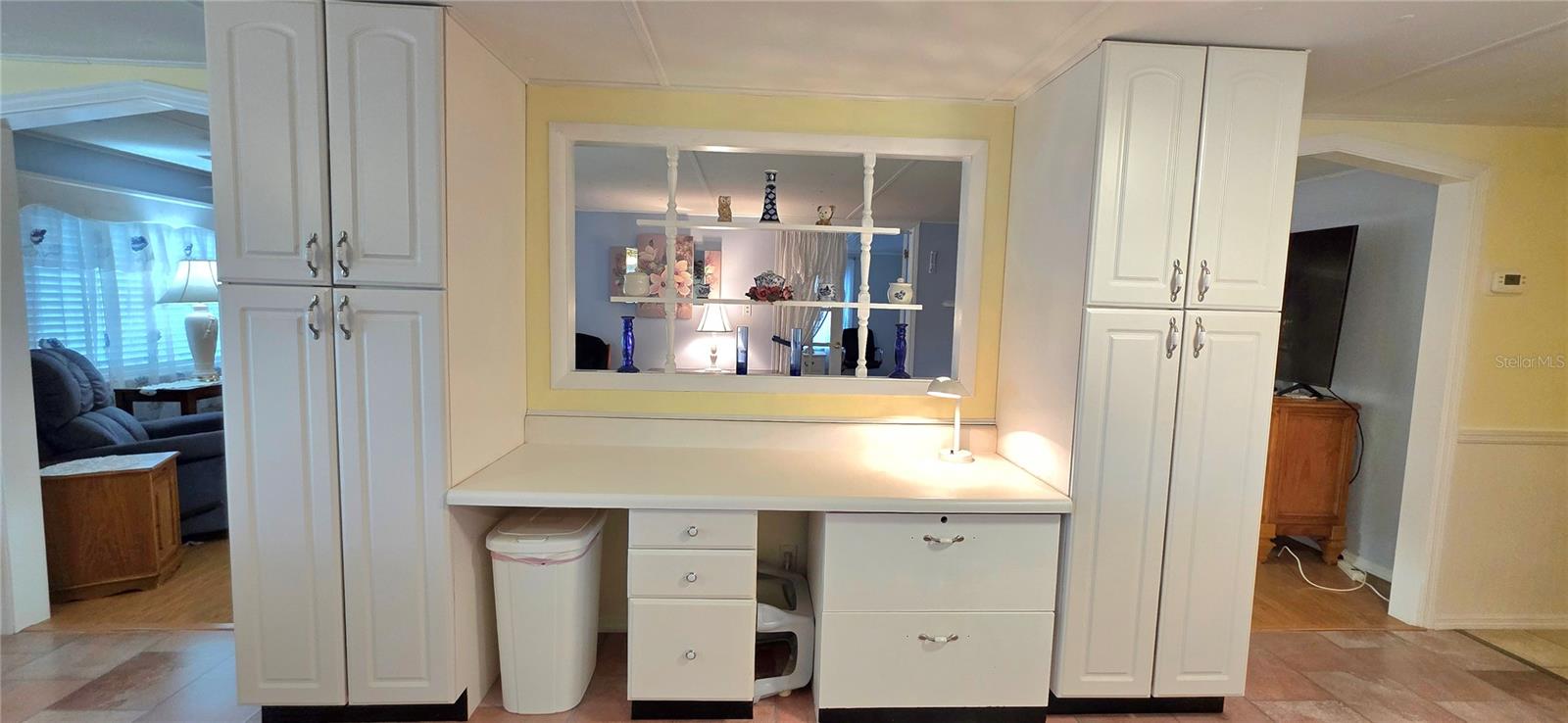 Lovingly maintained and nicely updated Double wide (24'x56') with additions. 2 bedrooms, 2 bathrooms, Air-conditioned street level Florida room with tinted windows, wall mounted flat screen TV, water softener system and attached laundry/utility room with washer/dryer, updated hot water heater (2022), shelving, & ceiling fan. Welcoming entry foyer features built in storage closet with shelving and is directly across from the dedicated den/office space with French doors that could easily be utilized as a third bedroom and has convenient access to the second Jack & Jill style bathroom. Central hallway has 2 additional storage closets and gives access to the main bathroom & bedrooms. Main Jack & Jill style bathroom features updated corner shower, vanity with granite countertop, undermount sink, linen storage cabinet & features access from the hallway and primary bedroom. Primary bedroom has on-suite bathroom, a walk-in closet + standard closet, ceiling fan & laminate flooring. Guest bedroom also has laminate flooring, ceiling fan, walk-in closet & on-suite updated Jack & Jill style bathroom with walk-in shower, pedestal sink & linen storage cabinet. At the front of the home, you will find a spacious eat-in kitchen with updated cabinetry, granite countertops, updated appliances, large built-in desk/prep space bordered by cabinets with pull out drawers & a nice sized dining space overlooking Mohawk Street. Just next to the kitchen is a large living room with built-in electric fireplace, laminate flooring, ceiling fan and double French doors to the addition, The addition features laminate flooring, upgraded front entry door & back sliding glass door with built-in blinds which leads out to the private deck featuring low maintenance composite decking & aluminum railing. Just off the deck is a nice sized paver patio with plenty of room for entertaining & the attached golfcart/workshop with shingle roof, electric roll-up door, work bench with pegboard, wall AC, golf cart (as-is) & charger. Exterior features include decorative paver driveway, nice landscaping with concrete borders, covered front walkway with planter to side entry door, window boxes, rubber roof, oversized gutter & down spouts, paver path to the back yard, paver driveway to the golf cart garage, exterior storage space & double pain windows (main) Central HVAC (2022). Home is turnkey with all furnishings and appliances including washer/dryer conveying with the sale. Located in Betmar Acres—a vibrant, friendly 55+ community where you own your land & the low annual park dues of only $448 make it an appealing choice for those seeking an active & affordable Florida lifestyle. Betmar Acres offers a wide range of activities & amenities to keep you busy, including bingo, dances, indoor shuffleboard, two swimming pools, two hot tubs, organized monthly activities, three nine-hole golf courses, miniature golf, park library, horseshoes, pickleball, tennis, bocci ball, basketball court, gazebos, fenced pet play area & walking paths. This community has it all for your entertainment. Call today to schedule your private tour.