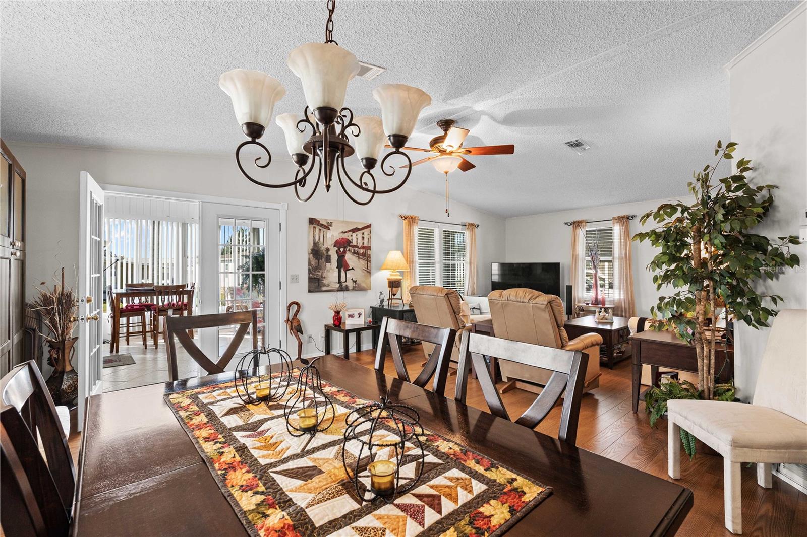 Welcome to Betmar Acres — Active 55+ Golf Community! Discover the perfect blend of comfort, style, and Florida living in this beautifully maintained 2-bedroom, 2-bathroom home located in the highly desirable Betmar Acres, where you own the land and enjoy a host of resort-style amenities. From the moment you arrive, the beautiful curb appeal and extra-wide driveway set the tone for easy entertaining and plenty of guest parking. Step into the front Florida room, featuring ceramic tile flooring, large double-pane windows, and a ceiling fan—all part of the central A/C system for year-round enjoyment. French doors open into the main living area, where laminate flooring flows seamlessly through the open-concept kitchen, dining, and living spaces, creating an inviting layout perfect for gatherings and everyday living. The updated kitchen will delight any home chef with its center island, stone backsplash, abundance of cabinetry, generous counter space, and newer stainless-steel appliances. A skylight adds a touch of natural sunshine, keeping the space bright and cheerful all day long. Your owner’s retreat offers a peaceful sanctuary large enough for a king-size bed and full furniture suite, complete with a walk-in closet and private ensuite bath. The second bedroom is equally spacious and conveniently located near the guest bath—ideal for visiting friends and family. Recent updates include a new hot water tank, 2023 A/C system, double-pane windows, freshly painted driveway, and a metal storage shed with power for your tools, golf cart, or hobby space. Enjoy the Betmar lifestyle—a friendly, active golf community featuring three 9-hole golf courses, heated pools, clubhouses, pickleball, shuffleboard, and endless social activities. Conveniently located near shopping, dining, premier medical facilities, and just a short drive to Florida’s pristine Gulf Coast beaches. Don’t wait—schedule your private showing today and start living your Florida dream!