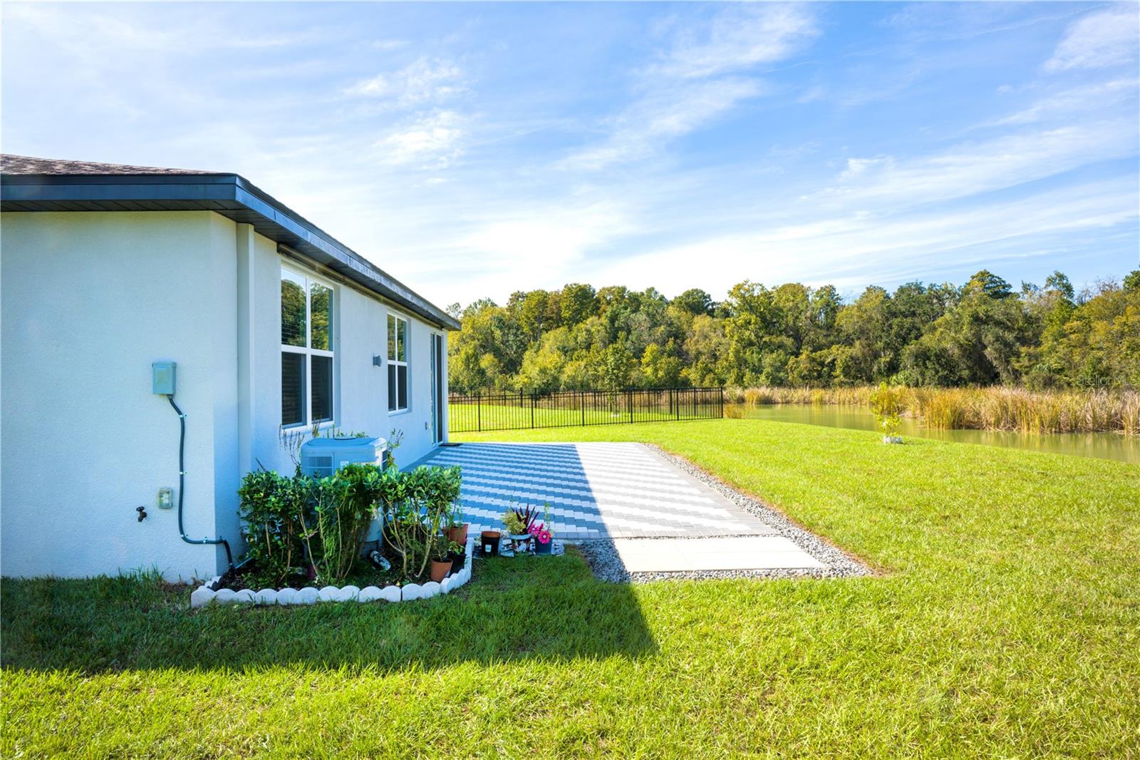 Welcome to this charming, near-new Bristol Meadows home in Zephyrhills. Features include a spacious backyard with pond views, pavers, and fruiting plants; an open, bright floor plan; a modern kitchen with granite countertops and stainless appliances; a private primary suite with walk-in closet, dual vanities, and a spa tub; two additional bedrooms and a flexible front room. Exterior highlights: large backyard for outdoor dining, security doorbell, and mobile monitoring. conveniently located near downtown Zephyrhills, I-4, and 301, with Two Rivers nearby and access to shops and Hillsborough State Park. Ideal for families or first-time buyers.