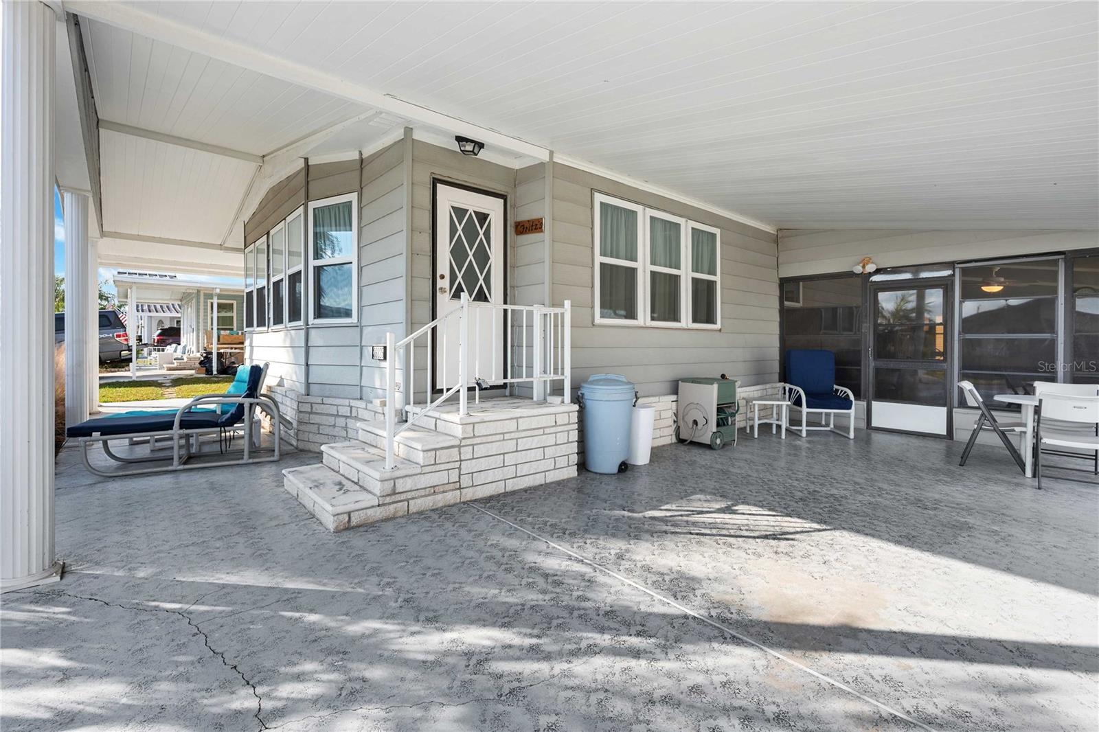 Looking for a winter getaway or the perfect warm-weather retreat for retirement? Welcome to Betmar Acres, an active 55+ golf community where you own the land and enjoy a low annual fee of just $435. This meticulously maintained 2-bedroom, 2-bathroom home has been beautifully updated throughout, including the kitchen, both bathrooms, and all flooring, making it truly move-in ready. Simply bring your suitcase and settle in. Ideally positioned in the heart of the community, the home is just moments from golf, the pool, and a wide array of amenities. Inside, you’ll find a bright, open-concept layout that seamlessly connects the living, dining, and kitchen areas, creating a welcoming and spacious feel. The oversized eat-in kitchen features updated cabinets and fixtures, a tiled backsplash, newer appliances, and plenty of storage with convenient pull-out features. The 14' x 26' Florida room is filled with natural light from its many windows, offering a sunny and relaxing space to unwind or entertain. The owner’s suite is generously sized and includes an updated vanity and a step-in shower. The second bedroom features a built-in closet, newer carpet, and fresh paint. An indoor laundry area is conveniently located just down the hall from the kitchen. Major updates have already been completed, including a new A/C system in 2020, a metal double roof serviced in 2025, a water softener, double-pane windows, new ceiling fans, and luxury vinyl flooring in the main living areas. All windows were upgraded in 2020 to energy-efficient Thermopane double-hung models, giving the home added comfort and efficiency. Outside, the property offers fantastic curb appeal with a deep carport, additional parking space, and a golf cart garage with extra storage. As a resident of Betmar Acres, you’ll enjoy access to 27 holes of golf across three 9-hole courses, two swimming pools, hot tubs, three clubhouses, pickleball, tennis, shuffleboard, bocce, basketball, miniature golf, game rooms, bingo nights, a library, and peaceful walking paths designed to support an active and social lifestyle. This home combines comfort, convenience, and community in one of Florida’s most desirable 55+ settings. If you’re ready to embrace a sunny, active lifestyle, don’t wait — schedule your appointment today and make this Florida gem yours!