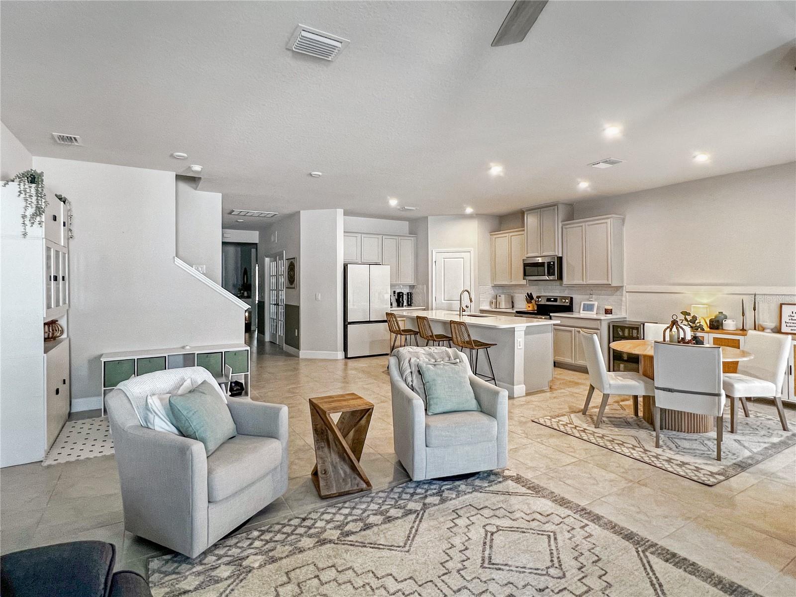 Welcome to a beautifully designed 3 bed, 2 bath, plus office/flex space, and large loft home that perfectly blends style, comfort, and functionality. From the moment you walk in, you’re greeted by elegant built-in shelving and classic wainscoting that set a warm and inviting tone. The guest bath keeps the peace with double sinks and a tiled shower/tub. Just off the main living area, you’ll find a versatile flex room/office/play room with glass French doors. Upstairs, is a large loft that offers even more room to relax, play, or create the perfect media retreat. The open-concept floor plan features a kitchen that overlooks both the dining and living rooms, making everyday living and entertaining effortless. The kitchen also boasts a walk-in pantry and a spacious island perfect for casual meals or hosting friends and family. The primary bedroom is a true retreat, complete with a decorative accent wall and a spacious walk-in closet. The primary bathroom offers double sinks, a walk-in shower, and a private water closet. Outside, you can enjoy the corner lot location and a fully fenced-in backyard, providing privacy, space, and endless possibilities for outdoor enjoyment. Located in Zephyrhills, you’ll enjoy small-town charm with convenient access to local shops, restaurants, parks, and the area’s well-known outdoor recreation. Close to Wesley Chapel’s growing retail and dining options, yet tucked away in a peaceful residential setting, this home offers the best of both worlds. This home truly has it all; style, space, and thoughtful upgrades throughout. Don’t miss your chance to make it yours!