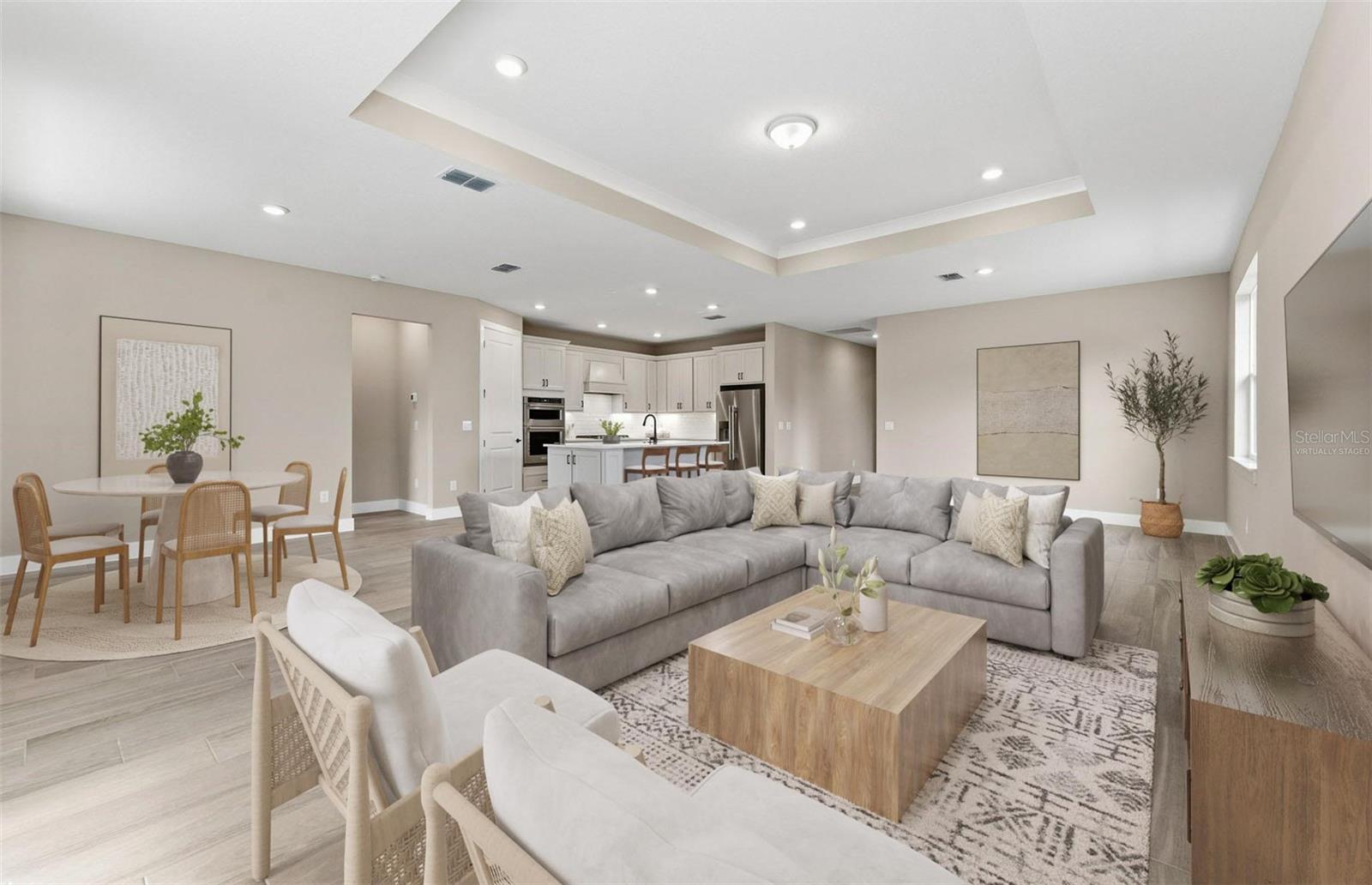One or more photo(s) has been virtually staged. Move in Ready Available NOW!! Pulte Homes is Selling in Riverwood! Enjoy all the benefits of a new construction home in this highly amenitized community, ideally located in Wesley Chapel. This new community will feature a resort-style pool with an open cabana, a clubhouse, a fitness center, nature trails, shared green spaces, pickleball courts, a screened-in game room, and a dog park! Featuring the popular Mystique floor plan with an open-concept home design, this home has all the upgraded finishes you've been looking for. The gourmet kitchen showcases a center island with single bowl stainless steel sink, upgraded faucet, 3cm quartz countertops with 3”x6” subway tiled backsplash, stylish cabinets, a spacious pantry, and KitchenAid stainless steel appliances, built-in oven and microwave, refrigerator, dishwasher, and stovetop with canopy wood hood. The bathrooms have matching cabinets and 3cm quartz countertops, dual sinks in the Owner's bath and walk-in shower. There is 9”x36” tile flooring in the main living areas, bathrooms and laundry room and stain resistant carpet in the bedrooms. This home makes great use of space with an extended gathering room, a versatile flex room, a convenient laundry room with built-in cabinets and Whirlpool washer and dryer, and a 2-car garage with epoxy flooring. Additional upgrades and features LED downlights and floor outlet in the gathering room, glass insert at front door, tray ceiling in gathering room, flex and owner’s suite, 8’ interior doors, two tone paint, upgraded lighting and hardware and a Smart Home technology package with a video doorbell. Enjoy peace of mind with Pulte’s transferable, 10-year Limited Structural Warranty that covers materials and workmanship in the 1st year, workability of plumbing, electrical, HVAC, and other mechanical systems through the 2nd year, various types of water infiltration and internal leaks through the 5th year, and the structural integrity of the home through the 10th year. Plus, we’re currently offering limited-time incentives and below-market rates!