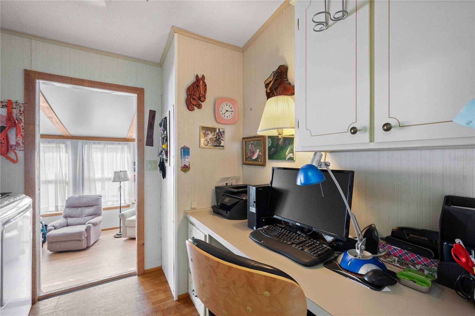 Welcome to your Florida sanctuary—where comfort, style, and easy living come together in one beautifully updated, move-in-ready home. Whether you’re searching for a full-time residence or a sunny escape from northern winters, this inviting retreat lets you unpack and start enjoying life right away. From the moment you step inside, you’ll feel the openness and light created by cathedral ceilings and walls of windows that fill the home with natural sunshine. The spacious living and dining areas flow effortlessly, making everyday living and entertaining feel relaxed and welcoming. The heart of the home is the stunning renovated kitchen, designed with crisp white cabinetry, soft-close drawers, new appliances, elegant tile backsplash, and a skylight that brightens the entire space. It’s as functional as it is beautiful. A charming bonus space currently used as a Florida room offers endless possibilities: a cozy retreat, hobby studio, guest sleeping area, or quiet place to unwind with a book or TV. Thoughtful details like beadboard walls and custom trim give this room a warm, coastal feel. The primary suite is tucked away at the back of the home for privacy and offers generous closet space along with a beautifully updated bathroom featuring a new walk-in shower and new maple vanity with double sinks. The guest bedroom is equally comfortable and spacious, making visitors feel right at home. Throughout the home you will find quality flooring blends including hardwood, tile, and luxury vinyl plank for both beauty and durability. Outside, you’ll appreciate low-maintenance aluminum siding, newer double-pane windows, brick skirting and a shingle roof. Two attached storage sheds—one currently used as a workshop—add exceptional convenience. Enjoy both front and back patios to soak in the Florida sunshine, along with a double driveway for easy parking. The home is being sold furnished (with a few exclusions), making your transition effortless. Located in the highly desirable Betmar Acres 55+ community, residents enjoy an outstanding lifestyle with three nine-hole golf courses, two swimming pools and hot tubs, pickleball and shuffleboard courts, and three clubhouses with a wide variety of activities and social opportunities. This is more than a house—it’s a place to relax, connect, and truly enjoy Florida living. Welcome home to 5750 Pawnee Street, where every day feels like a getaway!