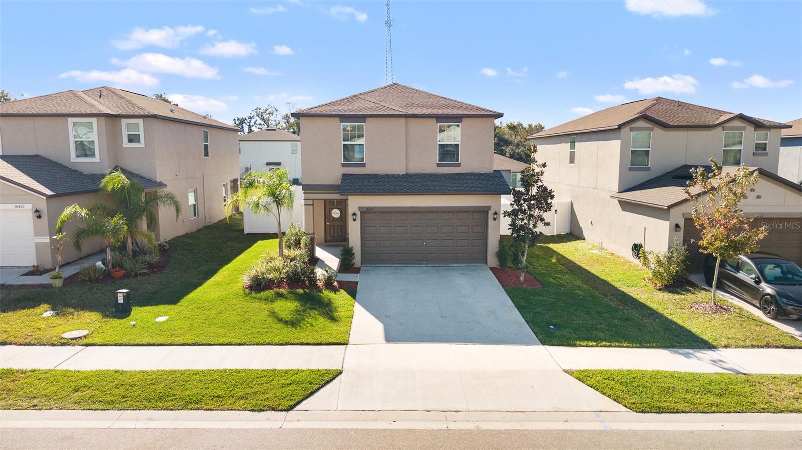 Welcome to Abbott Square, a desirable Lennar-built community in Zephyrhills offering modern homes, sidewalks, and a neighborhood feel with convenient access to SR-54, I-75, shopping, dining, and everyday essentials. Residents enjoy low monthly HOA fees, a community development district that maintains common areas and infrastructure, and zoning for highly regarded local schools. This 2023-built two-story home features 4 bedrooms, 2.5 baths, and a 2-car garage with a thoughtfully designed floor plan. The main level offers an open living and dining space with tile flooring, a kitchen/family room combo, and sliding doors leading to a screened rear porch, perfect for relaxing or entertaining. The kitchen is equipped with modern appliances, ample cabinetry, and an eating space. All bedrooms are located upstairs, including a spacious primary suite with a walk-in closet. Additional bedrooms feature dual closets, offering flexible space for family, guests, or a home office. The home sits on a north-facing lot, is located in Flood Zone X, and offers public utilities.