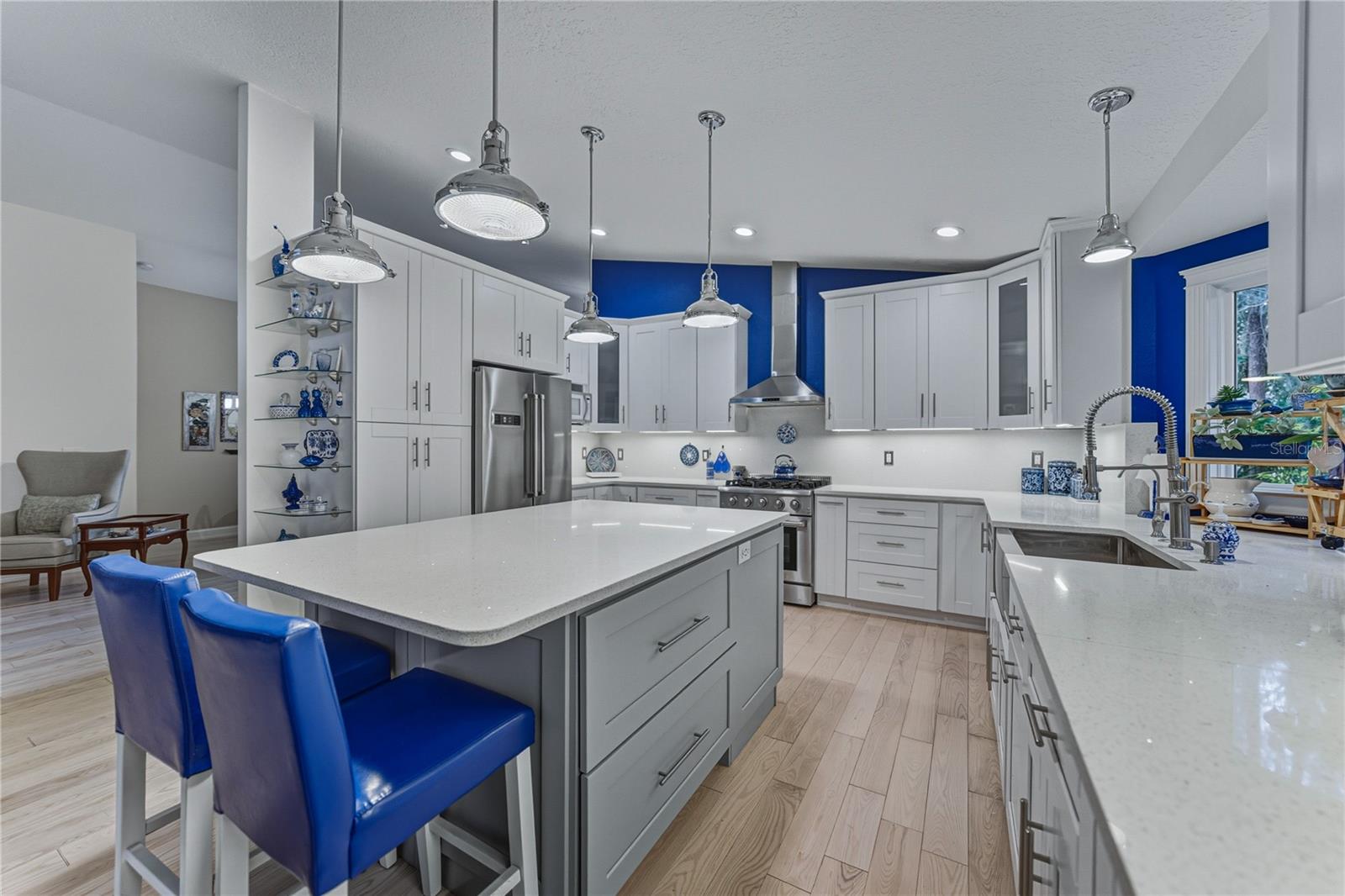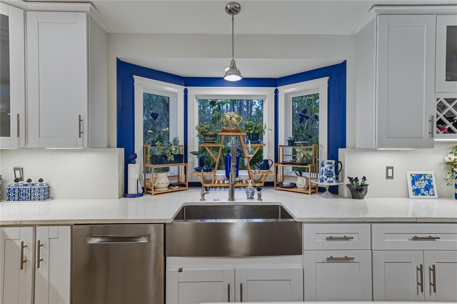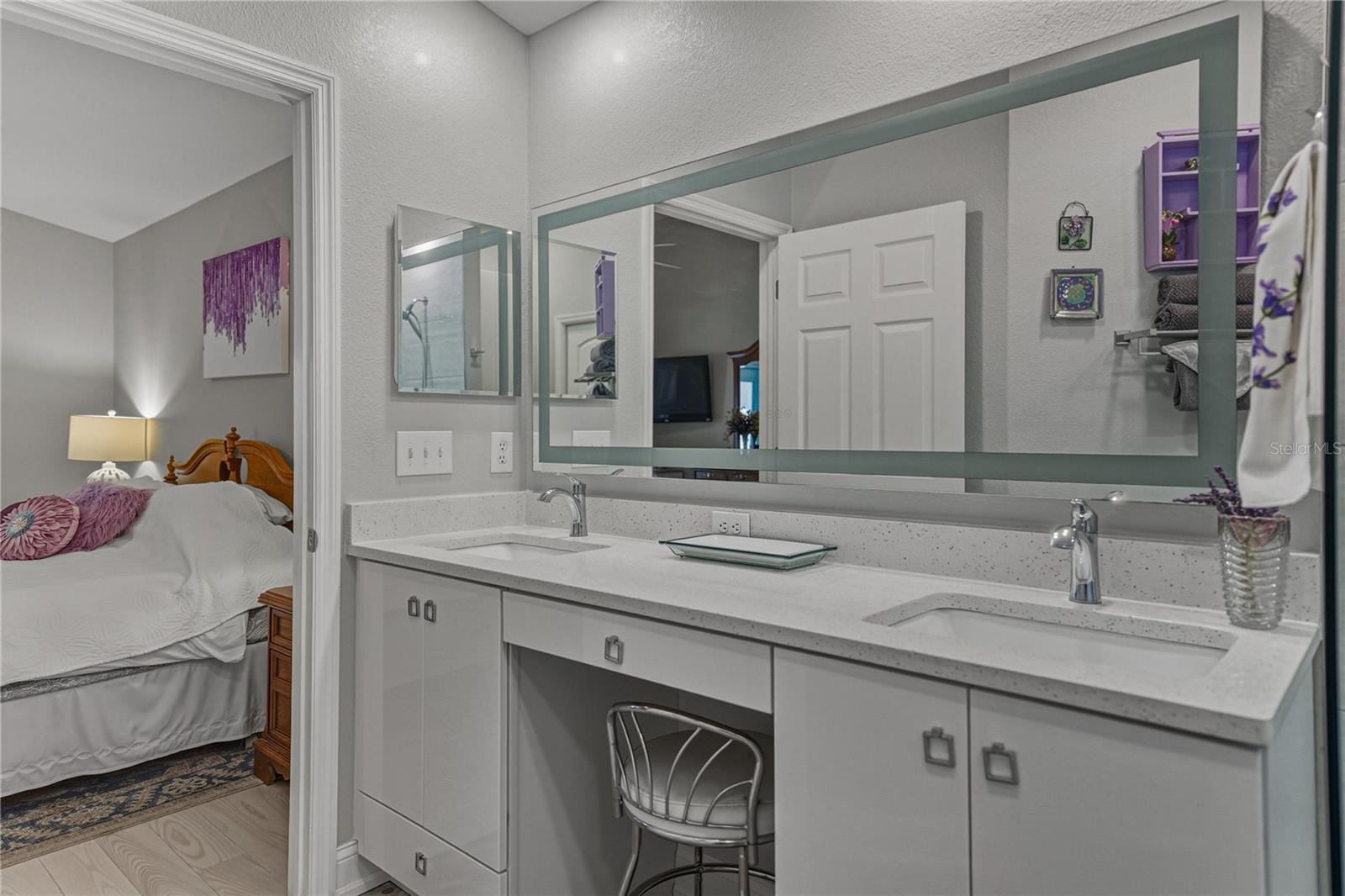Peacefully located along a sidewalk-lined street in the amenity-rich Lake Bernadette community, this inviting 3 bedroom, 2 bath, 2 car garage home makes a warm first impression with lush landscaping and a welcoming covered entry. From the moment you step inside, the layout feels open and comfortable, with vaulted ceilings, abundant natural light, and 2019 hardwood flooring flowing seamlessly through the main living areas. A dedicated dining space and expansive windows frame the living area, while sliding glass doors draw you naturally toward the heart of the home. The 2019 renovated kitchen is a masterpiece and truly needs to be experienced in person. Thoughtfully designed with quartz countertops, a central island with breakfast bar seating, and a built-in KitchenAid cabinet, the space combines beauty with everyday function. Stainless steel appliances include a gas range, paired with a farmhouse-style stainless sink set beneath a charming bay window. Soft-close cabinetry with interior lighting, a quartz slab backsplash, updated lighting, and a sunny eat-in dinette complete the space, with sliding doors leading directly to the enclosed porch for easy indoor-outdoor living. The primary suite is privately positioned away from the secondary bedrooms and offers a tranquil retreat, complete with French doors opening to the lanai, a spacious walk-in closet, and a fully transformed ensuite bath. Designed with spa-like detail, the bathroom features a river rock accented floor, dual sinks with vanity seating, an LED mirror with heat and Bluetooth capability, extra storage, and a striking walk-in shower with a rainfall showerhead featuring color lighting, a magnetic wand showerhead, and built-in bench seating. On the opposite side of the home, two generously sized secondary bedrooms share a well-appointed bathroom with a quartz-topped vanity and tub and shower combination. A convenient laundry room connects directly to the oversized garage, freshly painted in 2026 and packed with functionality. The garage offers abundant storage, a utility sink, a screened garage door, an extra reinforced tornado-rated garage door, a side door replaced in 2019, and even an AC duct for comfort while working on projects. Outdoors, the fully vinyl-fenced backyard is designed for privacy and versatility, featuring tropical landscaping, a screened lanai, an enclosed porch, and an attached storage shed with electric and lighting already in place. Additional highlights include a double gate, extra exterior hose bibs, and 220 wiring on the patio just off the primary bedroom, already set up for a future hot tub with its own breaker. A Generac whole-house generator conveys and automatically powers the home for added peace of mind. Roof 2014, AC 2019, Water Heater 2022. Life in Lake Bernadette offers more than just a beautiful home. Residents enjoy two community pools, including one that is heated, along with a recreation center, fitness center, basketball and tennis courts, a playground, and miles of sidewalks throughout the neighborhood, even along the main boulevard. Conveniently positioned between Eiland Boulevard and State Road 54, this location provides easy access to all that Zephyrhills provides, with Wesley Chapel, New Tampa, and the interstate just a short drive away. Homes with this level of care, thoughtful upgrades, and community amenities are hard to find. Call today to schedule your private showing and experience it for yourself.