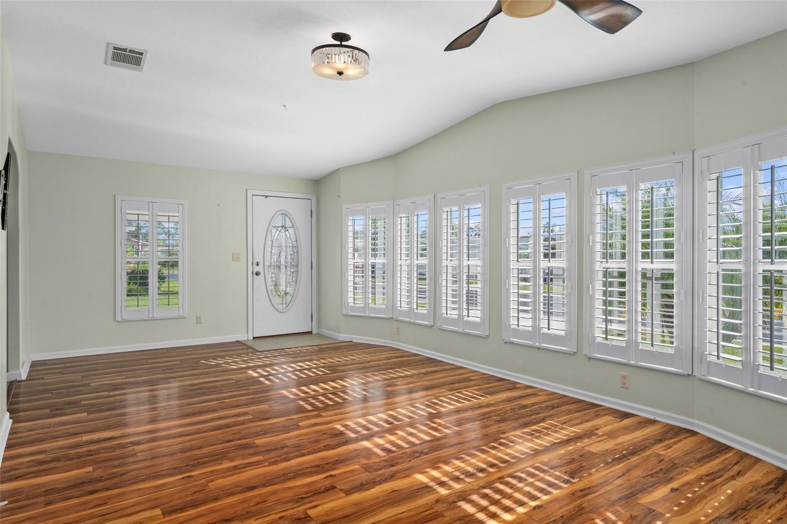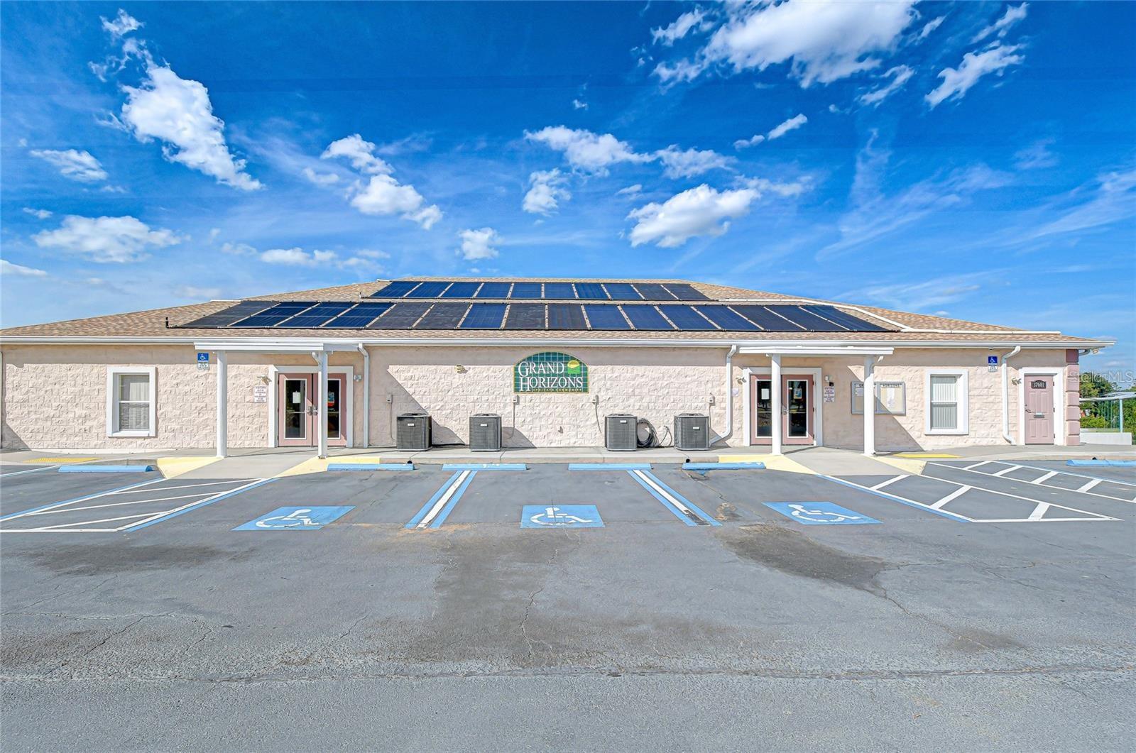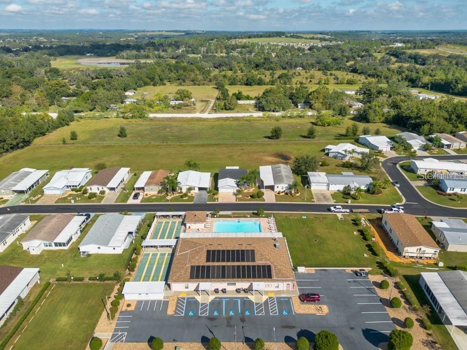 Experience Premier 55+ Gated Community Living at Grand Horizons, where residents own their land! This impressive Jacobsen custom home offers an ideal balance of modern upgrades and thoughtful details. Recent enhancements include a durable Metal Roof (2021) and a 3.5-ton AC Unit (2022) - providing reliability and energy efficiency. Located on a high and dry lot within the hospital grid, the property benefits from minimal power outages. The home is beautifully landscaped, enhancing its curb appeal. The entryway features an oval Leaded Glass Front Door, and a bank of windows framed by Plantation Shutters and bathing the Living Area in beautiful Florida Sunshine! The Open-Concept Floorplan connects the Great Room, Kitchen, and Dining area - creating a spacious atmosphere. Solar tubes bring Natural Daylight inside generating a warm and inviting feel to the space. The Kitchen includes Granite countertops, a bi-level Center Island with Pendant lighting, a versatile Coffee Bar, large Pantry and newer Stainless Appliances. Ceramic tile in wet areas and updated Laminate Flooring throughout the common spaces combine durability and style. The owner’s suite provides a large Walk-in Closet and an ensuite Bath with a sizable shower with built-in seating. The Secondary Bedroom and Bathroom afford convenience and privacy for Guests. Step outdoors into a welcoming sheltered Screen Lanai enhanced with outdoor Carpeting - ideal for morning coffee or friendly visits with neighbors! Flow into the spacious attached Workshop which houses the washer, dryer, utility sink, storage shelves and workbenches and offers convenient access to the Composite Back Deck – a space perfect for grilling that is shaded by a Sunsetter Retractable Awning. Additional outdoor features include a Paver Driveway and Walkway, a backyard Patio and ample space for parking your future Golf Cart! Grand Horizons provides resident-owned amenities such as a Heated Swimming Pool, Hot Tub, Shuffleboard, Billiards, Craft Room, Library, a Clubhouse and a variety of Planned Activities and Excursions. Conveniently located minutes from vibrant Retail and Dining, top Medical Facilities and numerous Commercial Entities in addition to countless Activity and Entertainment Venues as well as Parks and Nature Preserves! Discover why Grand Horizons is the preferred choice for 55+ living.