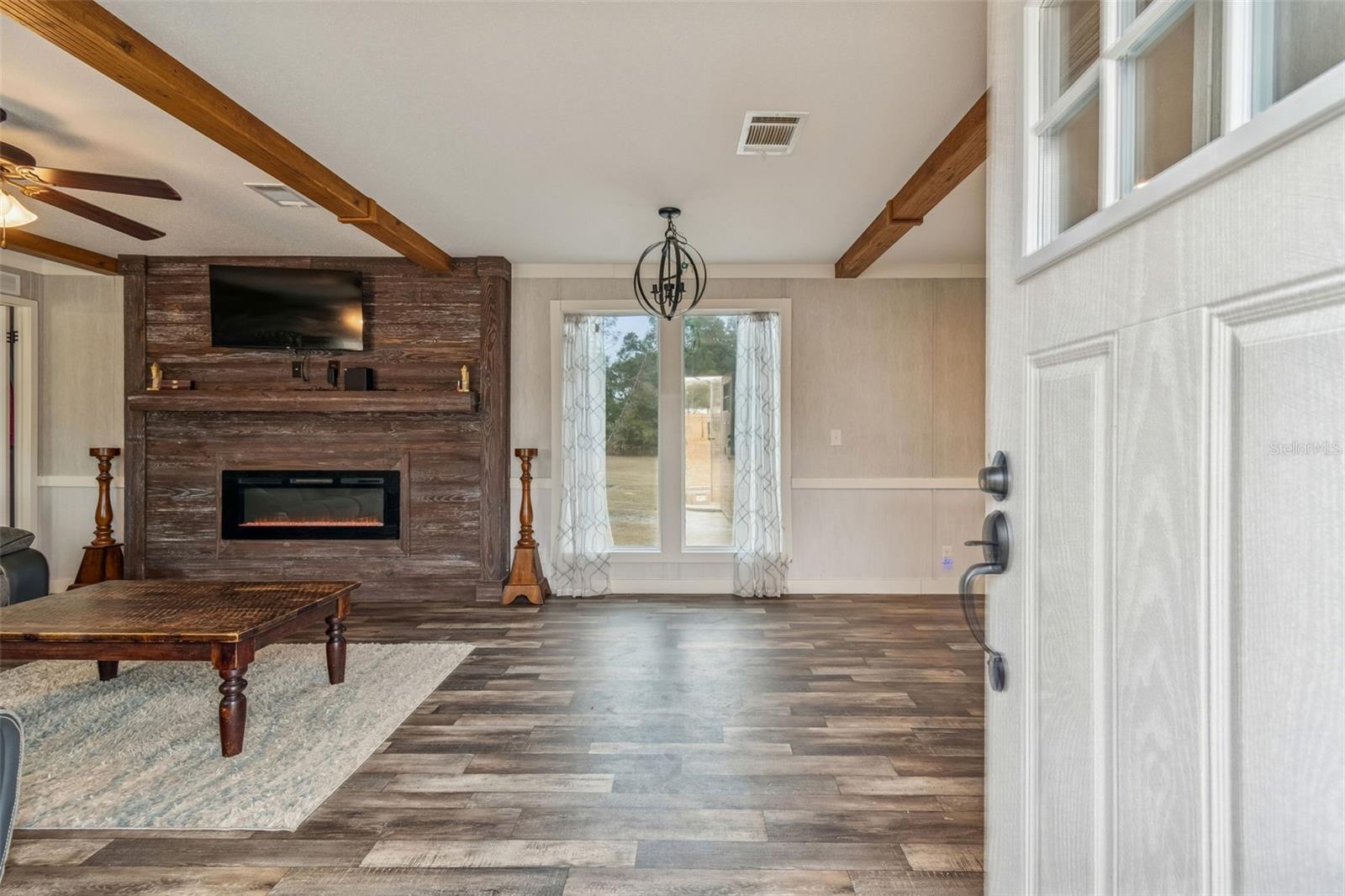 Want to wake up to see your horses in your backyard but don't have millions to spend? Think country living comes with being miles away from amenities? Well think again! This affordable, clean, well built home and thoughtfully laid out equestrian property allows you to buy your dream and stay close to town. Welcome to this 2024-built, move-in-ready 2 Bedroom 2 bath home set on approximately 2.5 acres of Agricultural Commercial–zoned land, offering endless possibilities for rural living, hobbies, or small agricultural pursuits. With no HOA or CDD, this property provides the freedom and flexibility to truly make it your own. The home features a desirable split-bedroom layout with 2 bedrooms and 2 full baths and an inviting main living area complete with a decorative electric fireplace that also emits warmth for those rare cold Florida days! Durable wood-look vinyl flooring runs throughout the main spaces, while both bedrooms offer cozy carpeting. The kitchen is equipped with granite and formica countertops, abundant cabinetry, and functional workspace for everyday living. Plus the farmhouse sink overlooks the horse pasture! The spacious primary suite includes a walk-in closet and an en-suite bath with a soaking tub and separate shower, while the secondary bedroom also features its own walk-in closet. Front and rear porches provide the perfect spots to relax and enjoy the peaceful surroundings. Designed with agricultural and equestrian use in mind, the fully fenced and cross-fenced property includes three horse stalls, three paddocks, a run-in shelter that serves 2 of the paddocks, and a combination of wood, electric, and wire fencing. Additional improvements include the massive garage attached to the stalls which serves as a feed room, tack room, hay storage, and more. There is a wash/grooming rack, fans in the stalls, horse trailer parking, and more. The attached garage is 22x35 and is an insulated workshop with underground electric and a 100-amp panel offers excellent space for projects, storage, or equipment. Camper hookups are also available, including two 30-amp and one 50-amp connections and has its own septic tank, separate from the one for the home. The home features vinyl siding and a durable metal roof. Located off the busy road yet only 2 miles to Publix, Tractor Supply, Chic-fil-A, Longhorn, Sonic, Planet Fitness, UPS Store, several banks, Walmart, Dollar Tree, and more! All right around the corner! Take a quick 14 min drive to historic downtown Dade City for fine dining and entertainment. Come see this clean, neat, well laid out equestrian "farmette" and make your dreams come true! (USE GOOGLE MAPS - or be sure to follow these directions: When you turn onto 23rd street the road goes from paved to dirt. You will make the first right hand turn once it becomes dirt (about 100 ft). There is a Real Estate sign there. Turn right and drive all the way to the back where you will see another sign. Road dead ends into property