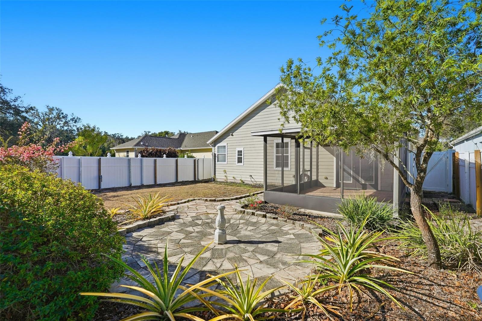 One or more photo(s) has been virtually staged. Welcome to this beautifully maintained home in the desirable Silver Oaks Village, where pride of ownership, smart updates, and everyday comfort come together. Situated in a well-kept, peaceful neighborhood, this 3-bedroom, 2-bath residence with a 2-car garage offers a thoughtful layout, generous storage, and timeless design features throughout. Inside, you’ll immediately notice the high vaulted ceilings, elegant curved architectural edges, and abundant natural light that create an open, airy feel. The split floor plan provides privacy, with the primary suite tucked away as a true retreat. The ensuite bath features a large garden tub, separate walk-in shower, double vanity, and a spacious walk-in closet. The kitchen is both functional and inviting, offering large upper cabinets, ample counter space, and bar seating, along with a cozy kitchenette for casual meals and a separate dining area ideal for hosting. Ceiling fans are installed in every room, enhancing comfort year-round, and storage is plentiful throughout the home—including heavy-duty built-in shelving in the garage. Recent updates add peace of mind, including a roof and HVAC system replaced in 2016 and a new water heater in 2023. The upgraded glass storm door at the front entry allows you to enjoy fresh air with the option to convert to a screened door. Step outside through French doors with built-in shades to a screened, pavered lanai overlooking a fully fenced backyard with a vinyl privacy fence and gates on both sides—perfect for relaxing, entertaining, or pets. Ideally located near shopping, dining, and major conveniences, this home is also ease of access to the YMCA (offering a pool, gym, and classes) and minutes from St. Leo University. The property is located in a USDA-eligible area, which may allow qualified buyers to explore zero-down financing options (buyer to verify eligibility and loan requirements). A wonderful opportunity to own a move-in-ready home in a growing area with a strong sense of community.