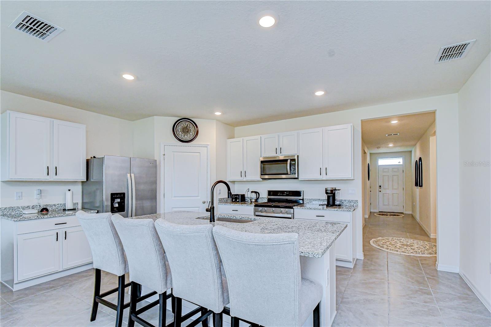 Built in 2024, this like-new 4 bedroom / 2 full bathroom home offers a smart, functional layout and a beautiful water view, with many upgrades completed by the current owner after purchase. From the moment you arrive, the curb appeal stands out—brand-new sod, a refreshed front garden with fresh flowers, and newly added palm trees create a clean and welcoming first impression.Inside, the floor plan is designed for everyday comfort and privacy. The home features a spacious primary suite, plus three additional bedrooms, including a Jack-and-Jill layout where two bedrooms share a full bathroom—perfect for families, guests, or a home office setup.The seller has also made several tasteful interior upgrades, including: New cabinet handles throughout the home.New kitchen faucet.Upgraded fancy shower heads in both bathrooms.Bidet installed in the primary bathroom. Remote controls in the living room and primary bedroom.Blinds installed on the sliding glass door Step outside and enjoy the peaceful backyard setting with water views. The seller also received approval to plant palm trees and fruit trees, adding even more value and charm to the outdoor space. Additional improvements include a newly installed exterior garage light and new LED lighting in the garage for extra brightness and convenience.This home is move-in ready, thoughtfully improved, and located near major roads, shopping, dining, and entertainment. Schedule your showing today!