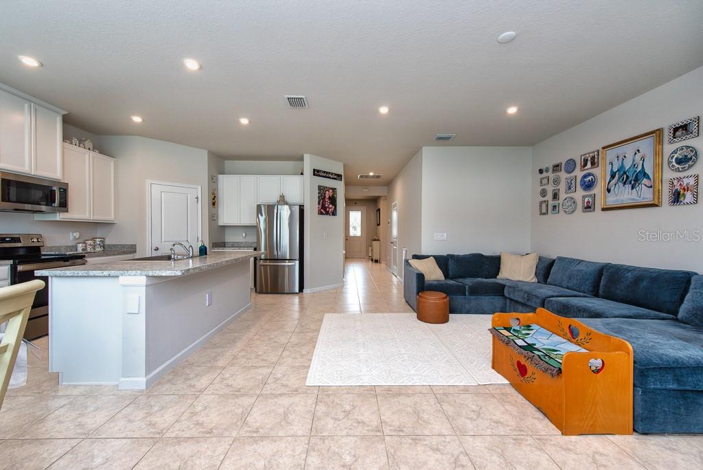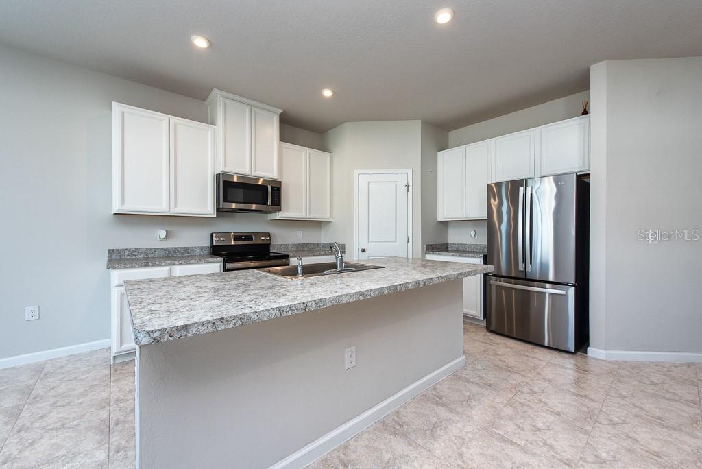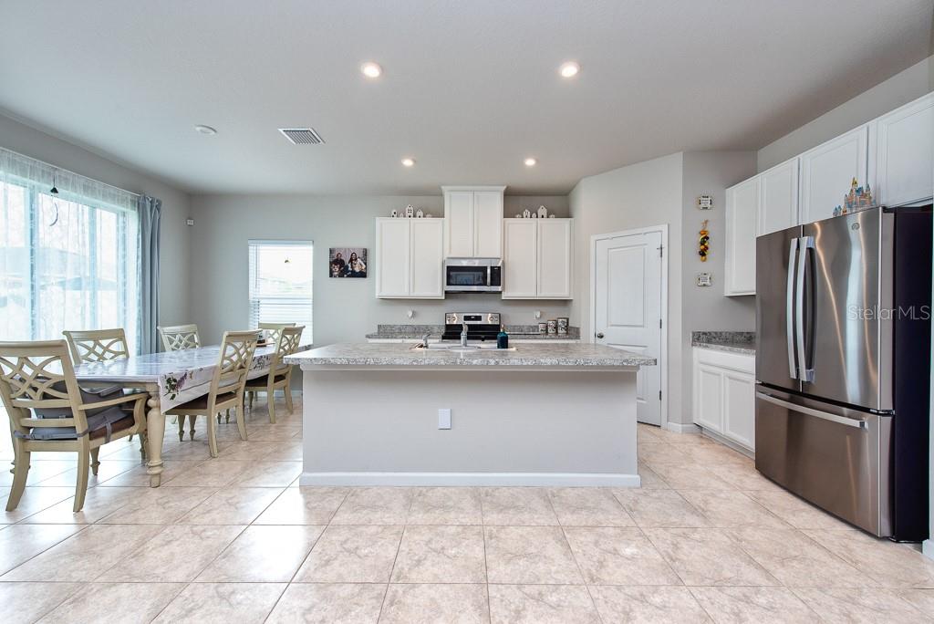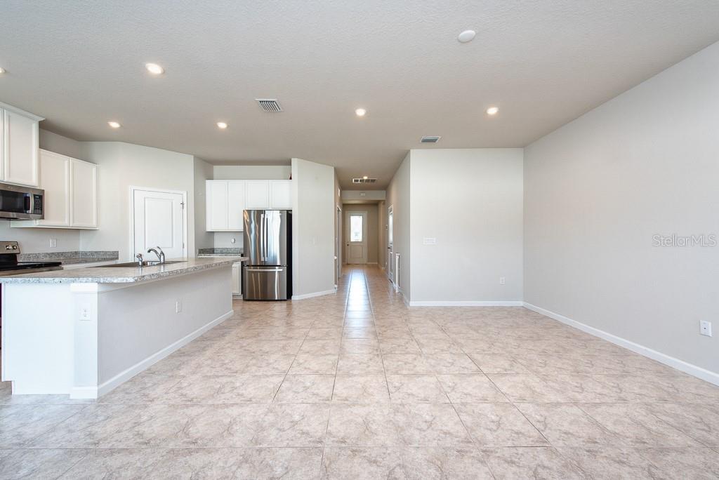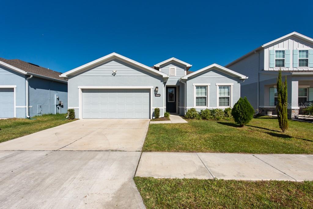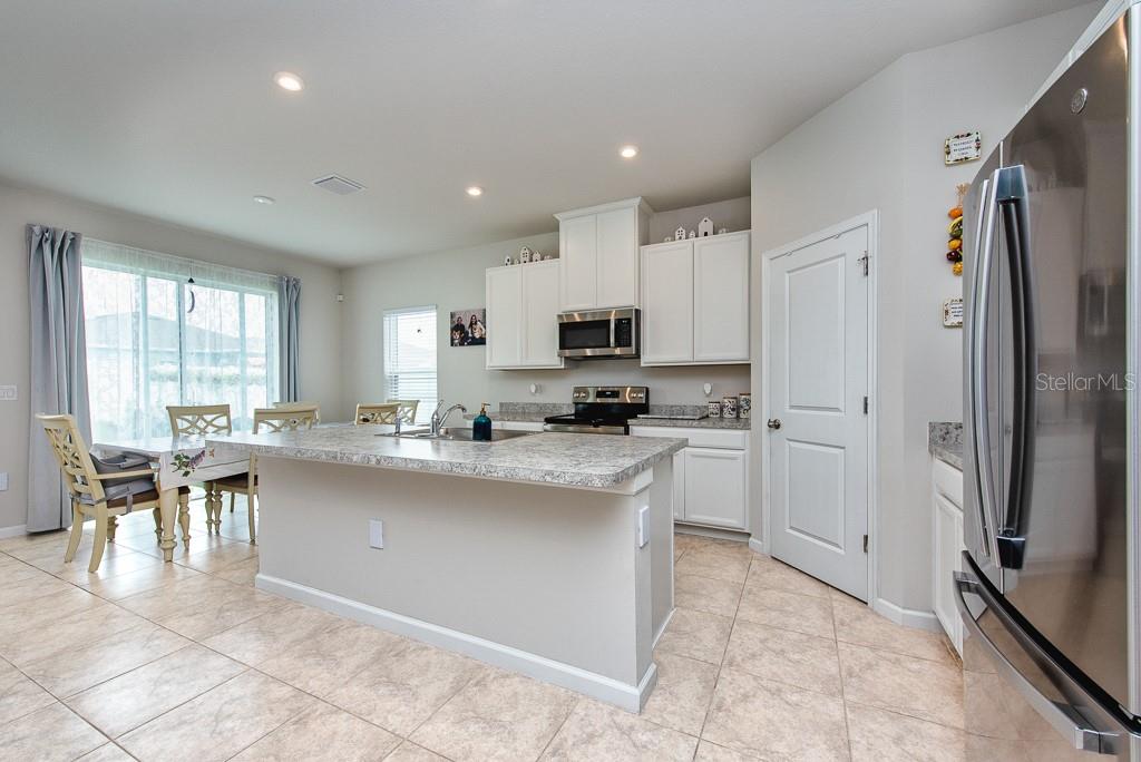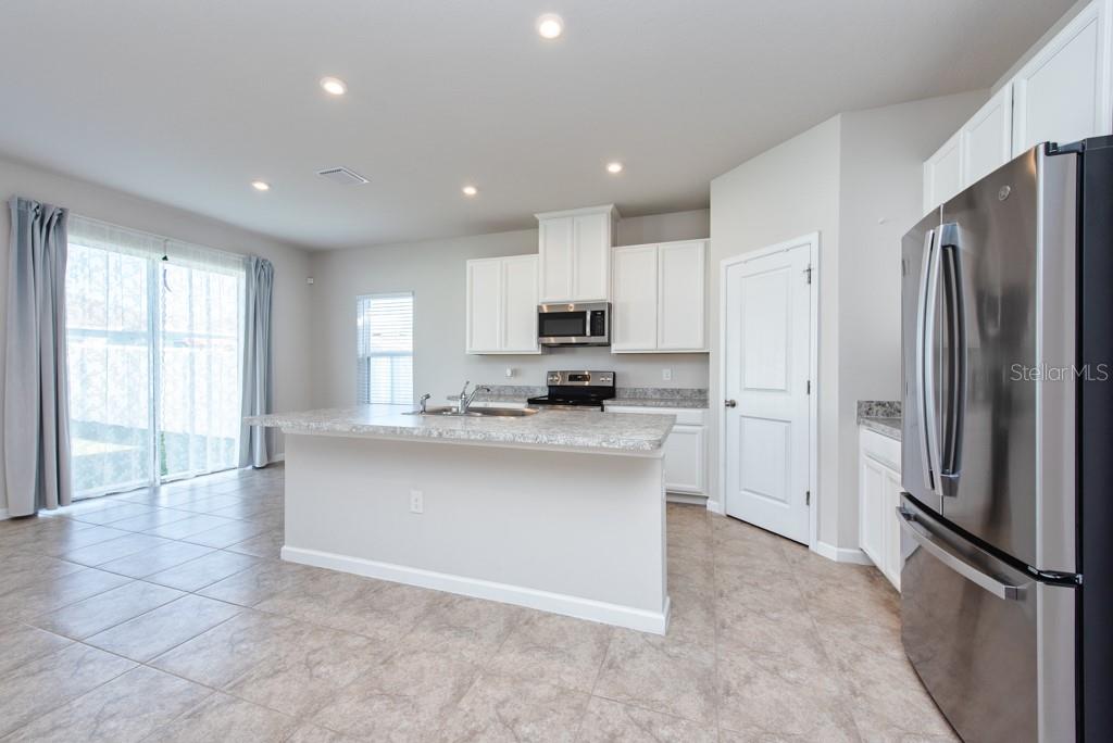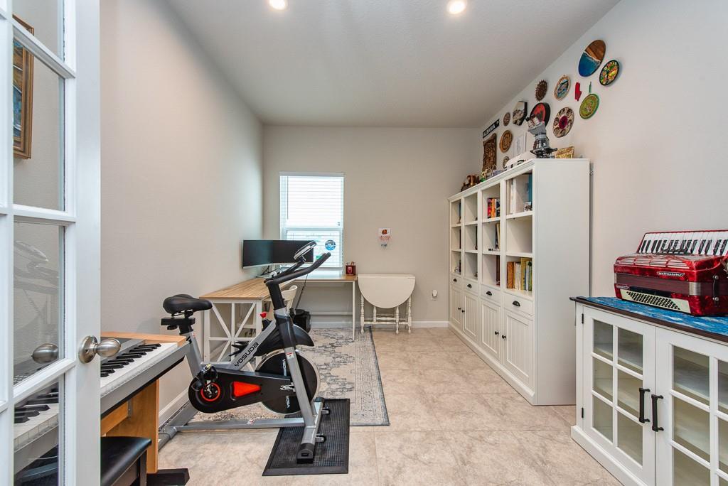 This home is bright, modern, and thoughtfully designed, built in 2023, offering 3 bedrooms, 2 bathrooms, plus a versatile office space—all within 1,823 sq. ft. of open living. Step inside to soaring 10-foot ceilings, elegant French doors, and builder upgrades that include tile flooring throughout (no carpet) for a clean, timeless look. The open-concept layout fills with natural light, creating a seamless flow between the spacious living area, dining nook, and kitchen. At the heart of the home, the kitchen features a large island with breakfast bar seating, a walk-in pantry, and plenty of counter space—perfect for gatherings or everyday living. The true split plan provides privacy with a generous primary suite tucked at the back of the home, complete with a double vanity and walk-in shower. Two additional bedrooms and a full bath sit at the front of the house, making it ideal for family or guests. A dedicated laundry room is conveniently located inside, with a washer and dryer included. Outside, enjoy a fully fenced backyard with crisp white vinyl fencing and room to relax, garden, or entertain. The 2-car garage adds extra storage and convenience. Move-in ready and set in a growing area, this home blends comfort, function, and style in one beautiful package. ***FREE 1/0 Rate Buydown when using the seller's preferred lender!***