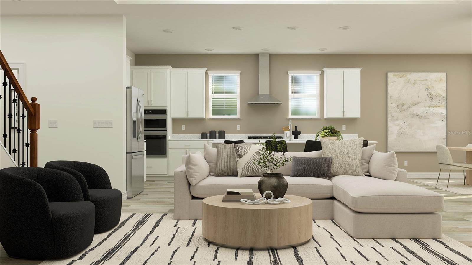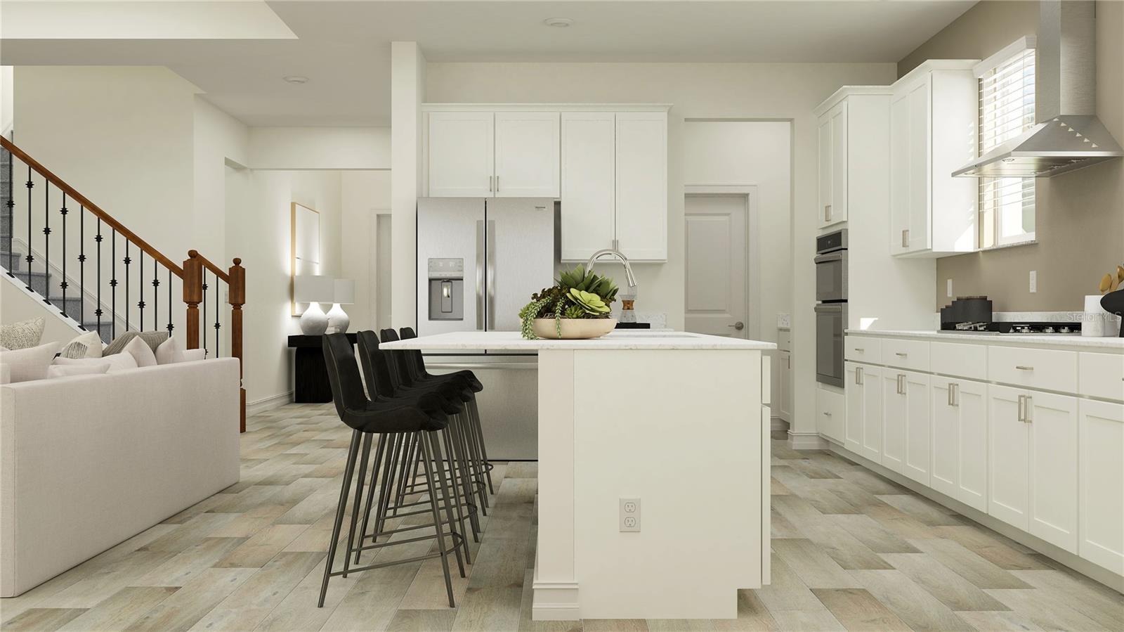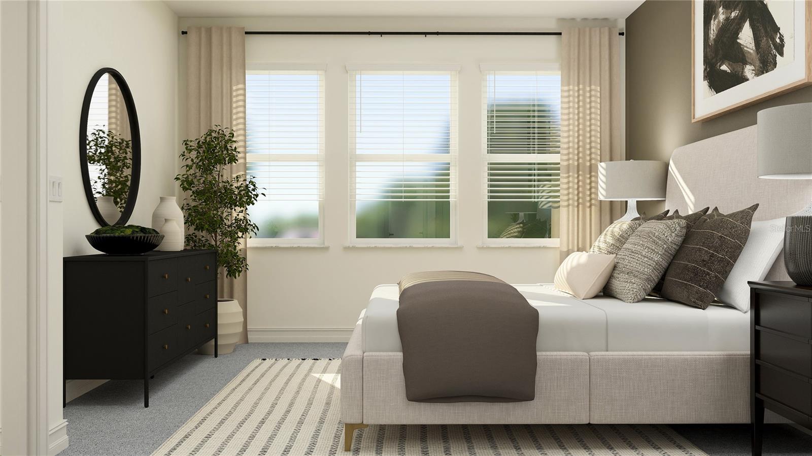 One or more photo(s) has been virtually staged. This two-story home is the largest plan in this collection featuring an open kitchen, family room and patio ready for entertaining. A bedroom with a private bathroom adds flexibility for overnight guests and the owner’s suite is convenient on the same floor. Upstairs, three bedrooms join a spacious loft for a bonus common space. Prices, dimensions and features may vary and are subject to change. Photos are for illustrative purposes only.