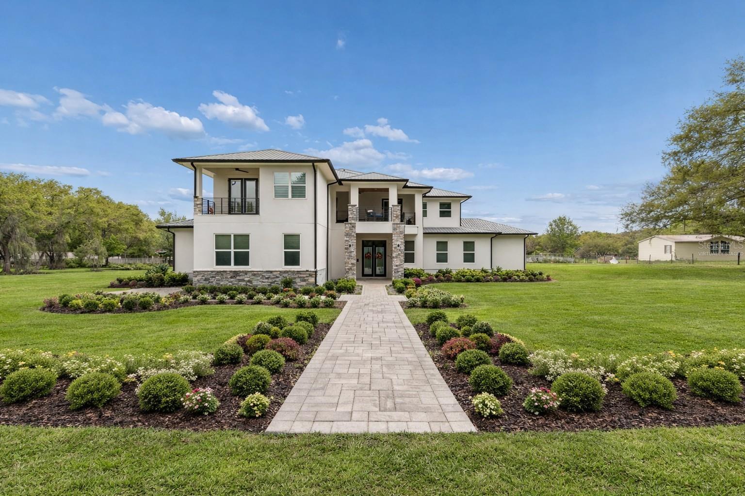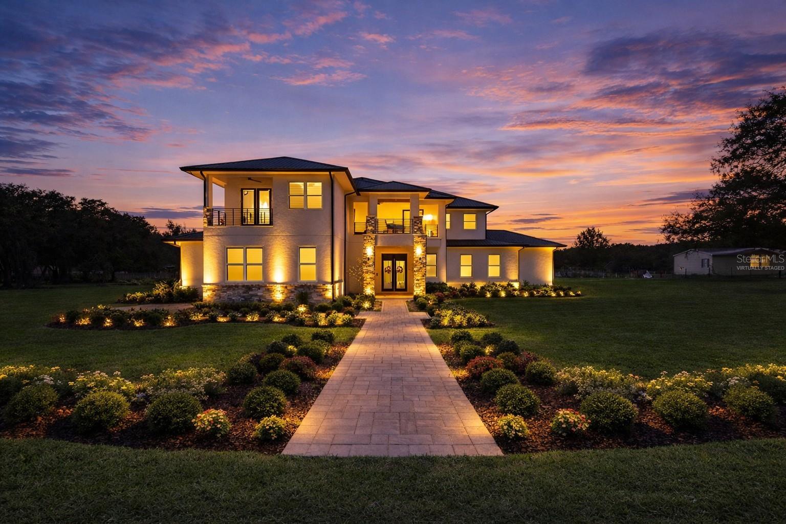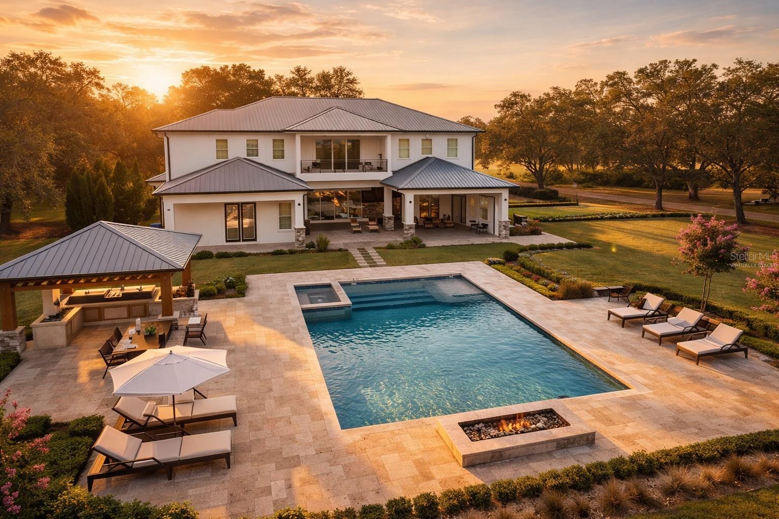 One or more photo(s) has been virtually staged. Imagine waking up on your own ELEVATED HILLTOP, coffee in hand, stepping onto a private balcony where the sun rises over nearly five acres of your own Florida countryside. That evening, you watch it set from the back balcony. And after the little ones are tucked in, the stars come out — and out here, there are MORE stars than you ever thought possible. Welcome to 8241 Cass Road. A CUSTOM 2020 LUXURY ESTATE built by a builder for his own family — 5 bedrooms, 4 full and 3 half baths, and 7,521 square feet of living space that was designed from the ground up to HOST, GATHER, AND GROW. This is a home for the family that wants ROOM TO BREATHE. Room for 100+ guests at your next celebration, thanks to pocket sliders that disappear into the walls and let the entire first floor flow into the outdoors. Room for the little ones to run — there's a HALF BASKETBALL COURT waiting for after-school shootarounds and weekend pickup games. Room for a HOME THEATER experience you'd expect at a luxury resort, with a FIBER-OPTIC STARLIGHT CEILING that transforms every movie night into something your little ones will remember forever. Room for an executive who works from home and finally has the private office they've been dreaming about. Room for the home chef who's been waiting for a SUB-ZERO and a WOLF RANGE. Room for horses, cows, or a working homestead on your own AGRICULTURALLY ZONED LAND — no HOA telling you what you can and can't do with your own property. Every bedroom has its own walk-in closet and en-suite access. The first-floor primary suite is its own spa retreat. Smart home automation runs the whole house from your phone. Whole-home speaker system. All-call intercom. FLOOD ZONE X. Metal roof. Foam insulation. This home was BUILT TO LAST GENERATIONS. And here's what you won't find in Wesley Chapel, Wiregrass, or Two Rivers: FOUR-POINT-NINE-FOUR PRIVATE ACRES. No shared walls. No architectural review board. No drive-by traffic through your front yard. Just YOUR land, YOUR sky, and the peace of mind that comes from finally owning something no one can take away. ALSO AVAILABLE — THE ADJACENT 4.89 ACRES: The parcel next door at 8236/8302 Wire Road is also for sale — SEPARATELY OR AS A COMBINED 9.83-ACRE FAMILY COMPOUND. Ask the listing agent about the rare opportunity to lock down both. Multi-generational families and equestrian buyers take note. Ten minutes to Two Rivers. Twenty minutes to Wiregrass, Tampa Premium Outlets, and AdventHealth Wesley Chapel. Under an hour to downtown Tampa and the airport.