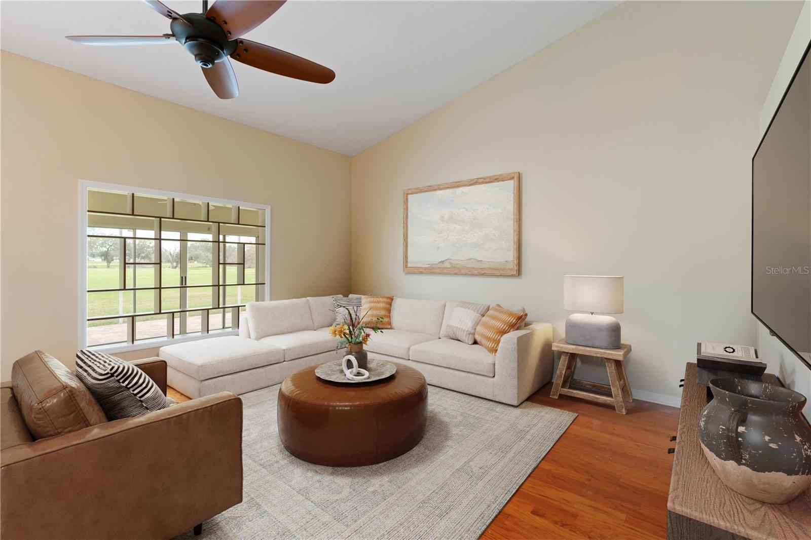 One or more photo(s) has been virtually staged. Move-in-ready gem offers long-term value with a newly installed AC and roof, plus peace of mind knowing it sustained no flooding during the recent hurricane season. Inside, you’ll find beautiful wood floors and cathedral ceilings that create a warm, inviting atmosphere. Two spacious living areas make it perfect for both relaxation and entertaining, while the large, air-conditioned sunroom provides a comfortable year-round retreat to enjoy Florida’s sunshine in style. The paver driveway and screened-in paver patio add to the curb appeal and outdoor living experience. From your private backyard, unwind as you take in serene fairway views—a picture-perfect backdrop for everyday living. Additional highlights include: Professionally landscaped yard for beauty and privacy, Gutters with French drain system for protection, Termite bait stations with transferable warranty, Spacious screened-in paver patio in the private backyard!! Located close to shopping, dining, and everyday conveniences, this Silver Oaks home perfectly blends charm, comfort, and convenience. Don’t miss your chance to make it yours!