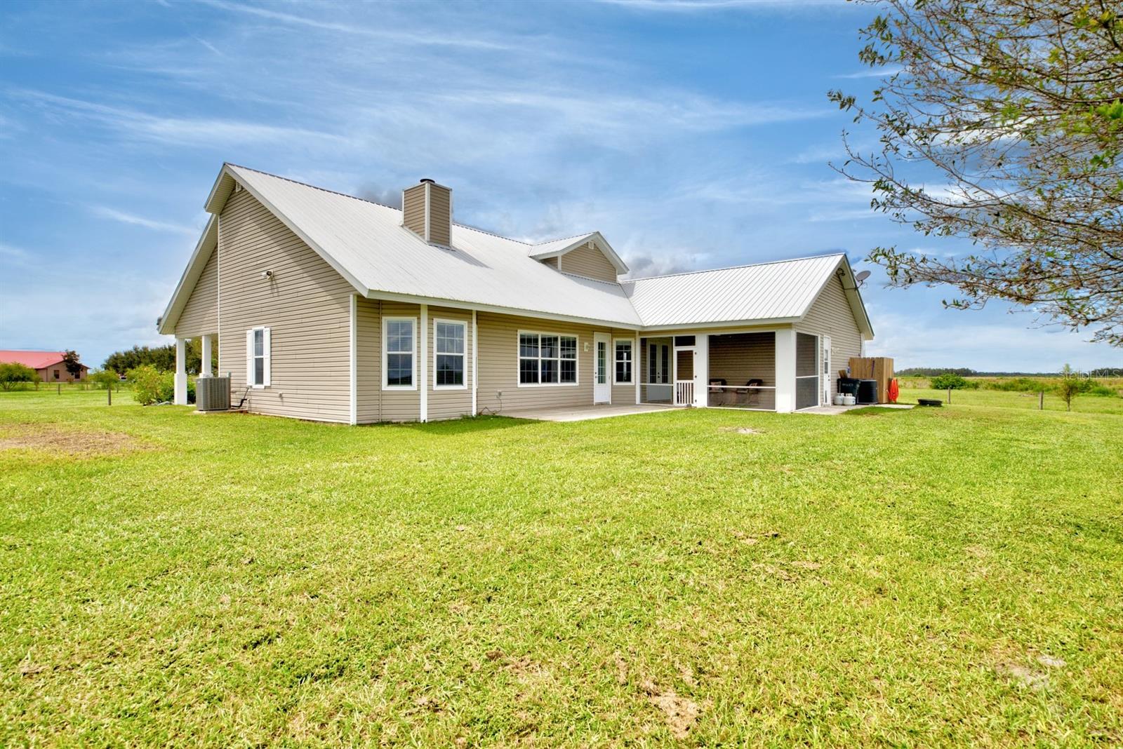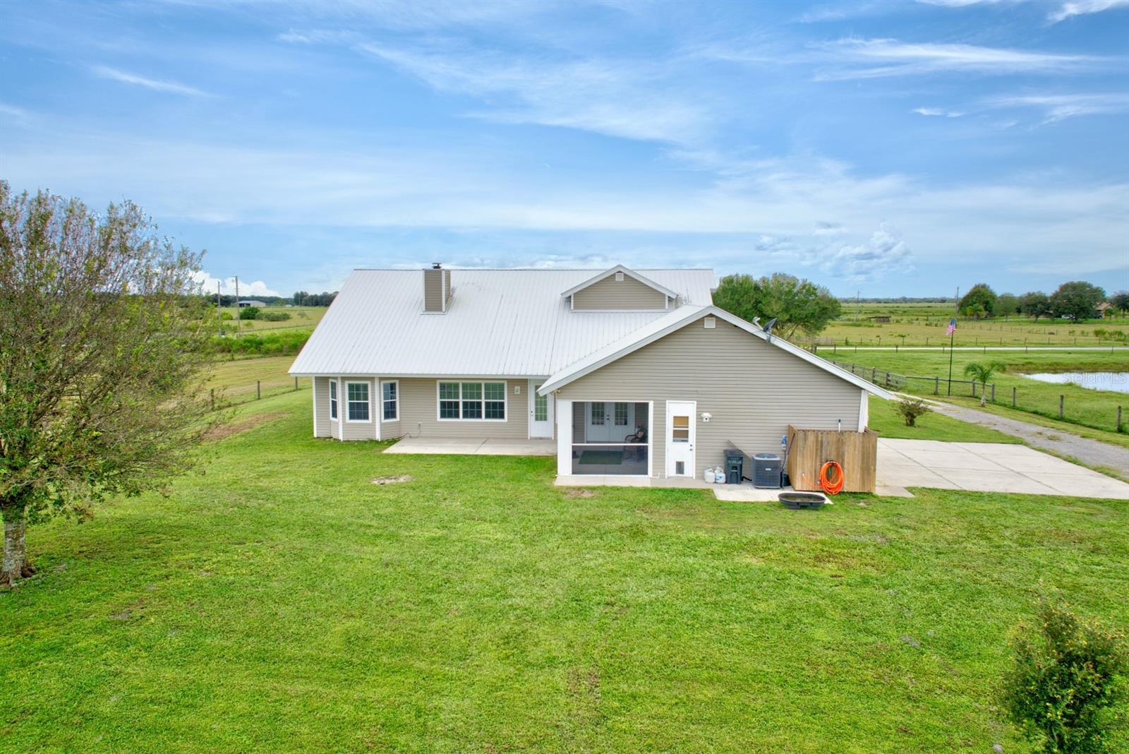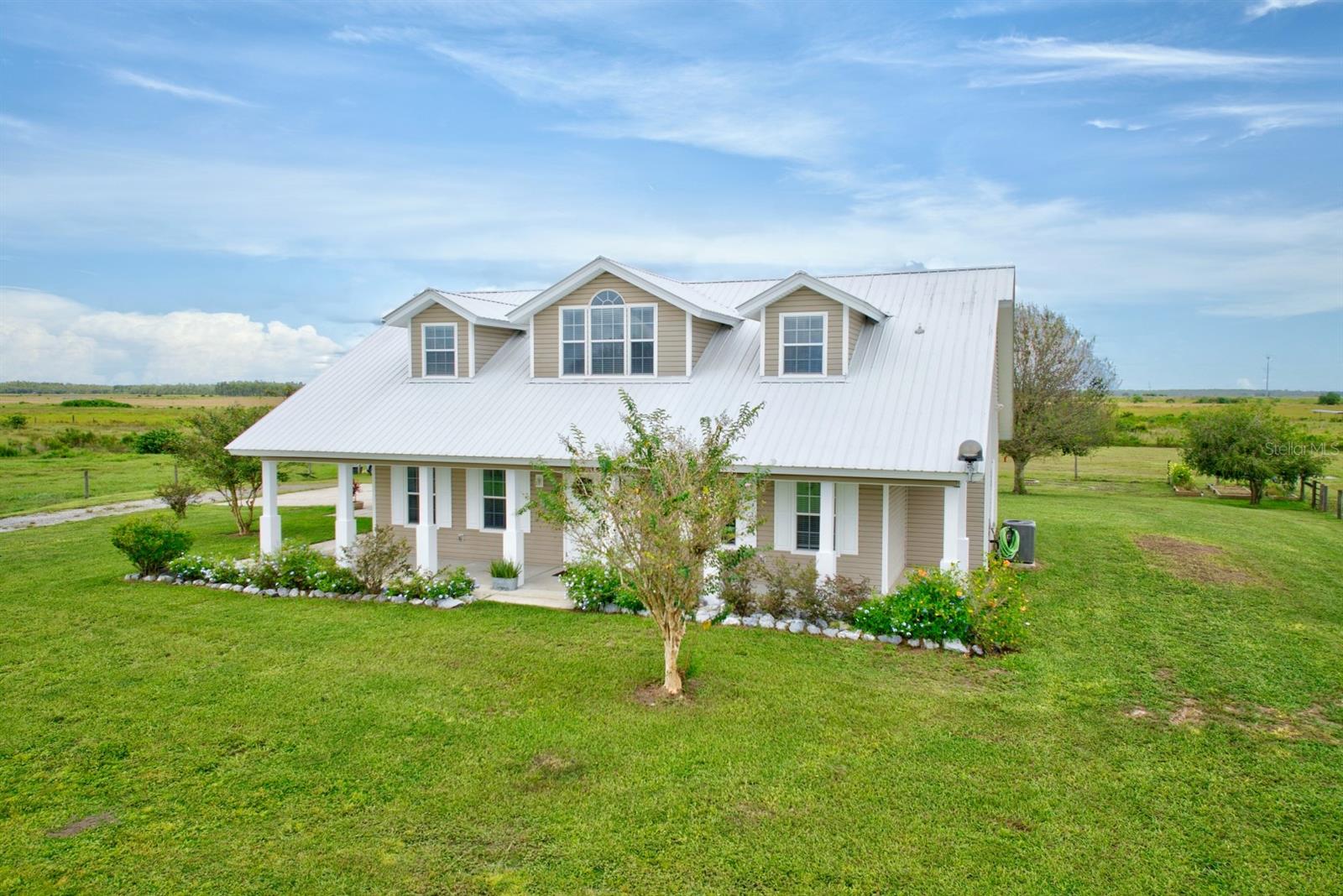 Welcome Home to this picturesque two-story farmhouse, perfectly placed on 5 fully fenced in acres of land offering serene pasture views in every direction! Located in the peaceful neighborhood of Zolfo Springs, FL and built in 2009 with a combination of frame/concrete block construction - this home gives timeless charm with thoughtful details throughout. This beauty welcomes you with a spacious wrap-around front porch and double doorway entry. Walking in, you will immediately feel ‘safe and at home’. The formal dining room is immediately to your left adjacent to the kitchen. The gourmet kitchen is a showstopper equipped with granite countertops, white shaker-style cabinetry, high-end stainless-steel appliances, and a center island. Next to the kitchen is a super convenient large indoor utility room with an additional entryway into the home, plenty of cabinetry, a utility sink, as well as access to the attached oversized two-car garage. The main living areas feature soaring cathedral ceilings, a striking wood-burning stone fireplace, breakfast nook, and a convenient powder room for guests. The downstairs primary suite offers a spacious walk-in closet and a luxurious en-suite bath with dual vanities, a jetted tub, a fully tiled walk-in shower, and a solid-surface counter vanity. Upstairs, you’ll find two additional bedrooms, a full bathroom with a shower/tub combo, plus a centrally located versatile bonus room ideal for a home office, hobby space, or playroom! The metal roof was replaced in 2018, 2 new HVAC systems have been installed, both offering peace of mind for years to come. Outside, the property is designed for country living at its finest. The separate back porch invites you to relax and enjoy the peaceful surroundings. The land is cross-fenced with wire pastures and an inner perimeter of post-and-board fencing around the home. A gated driveway leads you in, and a picturesque pond sits within the pasture—perfect for raising certain animals within county allowances or simply enjoying the view. With its rustic charm, modern conveniences, and idyllic surroundings, this property is a rare opportunity for anyone seeking peaceful country living with room to grow - it is one that shouldn’t be passed up!