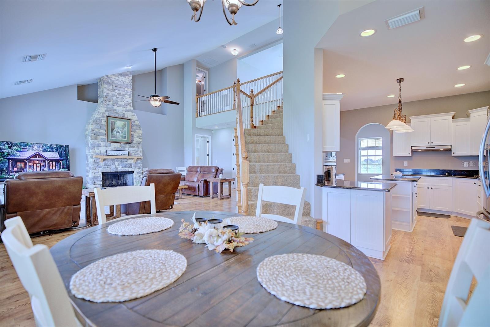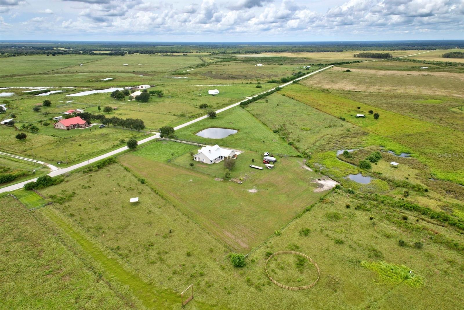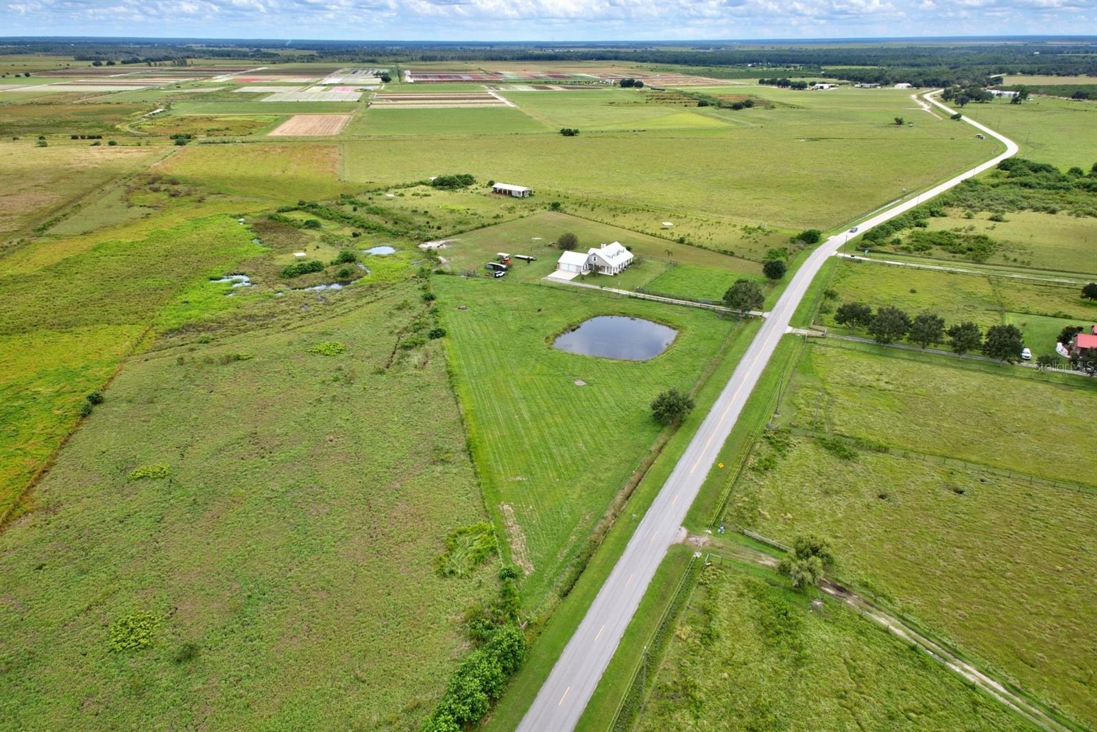 Welcome Home to this picturesque two-story farmhouse, perfectly placed on 5 fully fenced in acres of land offering serene pasture views in every direction! Located in the peaceful neighborhood of Zolfo Springs, FL and built in 2009 with a combination of frame/concrete block construction - this home gives timeless charm with thoughtful details throughout. This beauty welcomes you with a spacious wrap-around front porch and double doorway entry. Walking in, you will immediately feel ‘safe and at home’. The formal dining room is immediately to your left adjacent to the kitchen. The gourmet kitchen is a showstopper equipped with granite countertops, white shaker-style cabinetry, high-end stainless-steel appliances, and a center island. Next to the kitchen is a super convenient large indoor utility room with an additional entryway into the home, plenty of cabinetry, a utility sink, as well as access to the attached oversized two-car garage. The main living areas feature soaring cathedral ceilings, a striking wood-burning stone fireplace, breakfast nook, and a convenient powder room for guests. The downstairs primary suite offers a spacious walk-in closet and a luxurious en-suite bath with dual vanities, a jetted tub, a fully tiled walk-in shower, and a solid-surface counter vanity. Upstairs, you’ll find two additional bedrooms, a full bathroom with a shower/tub combo, plus a centrally located versatile bonus room ideal for a home office, hobby space, or playroom! The metal roof was replaced in 2018, 2 new HVAC systems have been installed, both offering peace of mind for years to come. Outside, the property is designed for country living at its finest. The separate back porch invites you to relax and enjoy the peaceful surroundings. The land is cross-fenced with wire pastures and an inner perimeter of post-and-board fencing around the home. A gated driveway leads you in, and a picturesque pond sits within the pasture—perfect for raising certain animals within county allowances or simply enjoying the view. With its rustic charm, modern conveniences, and idyllic surroundings, this property is a rare opportunity for anyone seeking peaceful country living with room to grow - it is one that shouldn’t be passed up!
